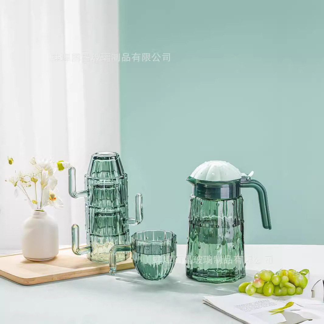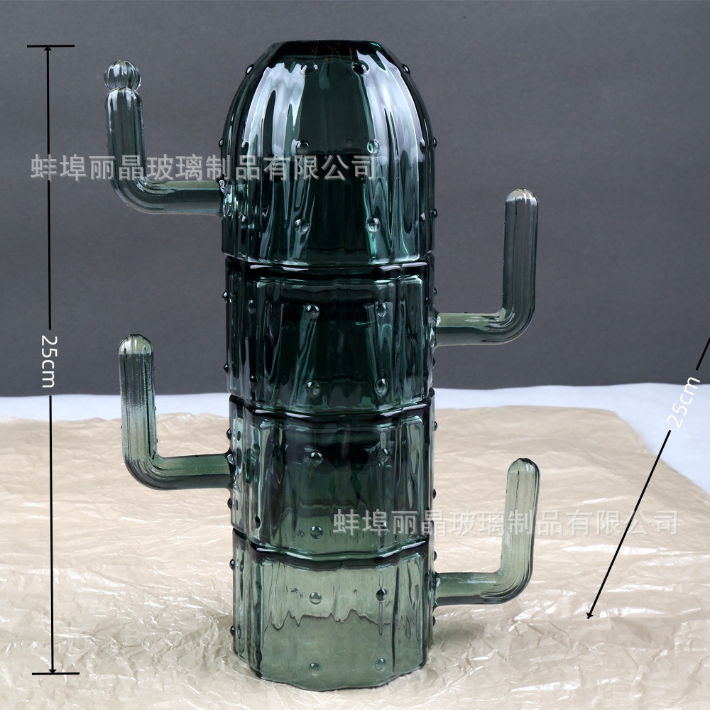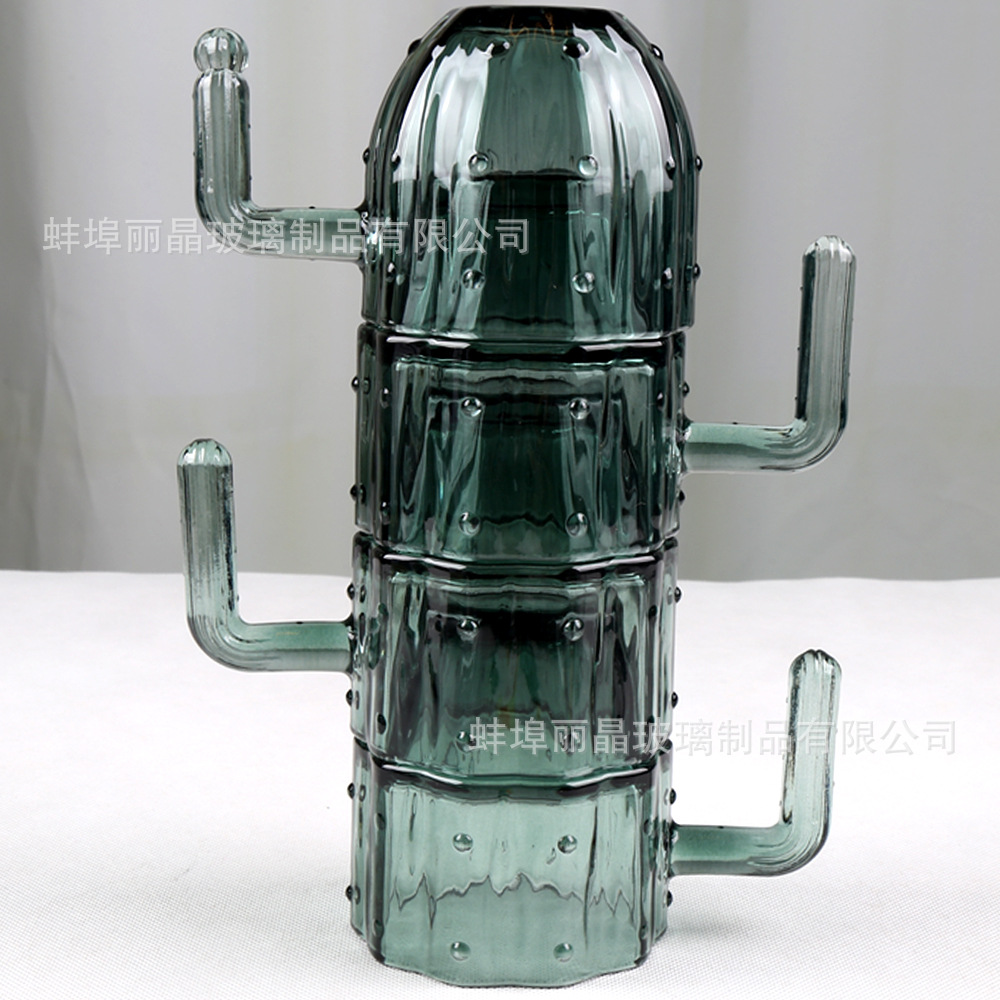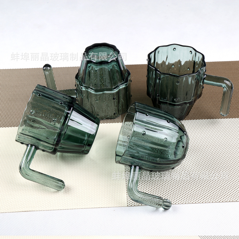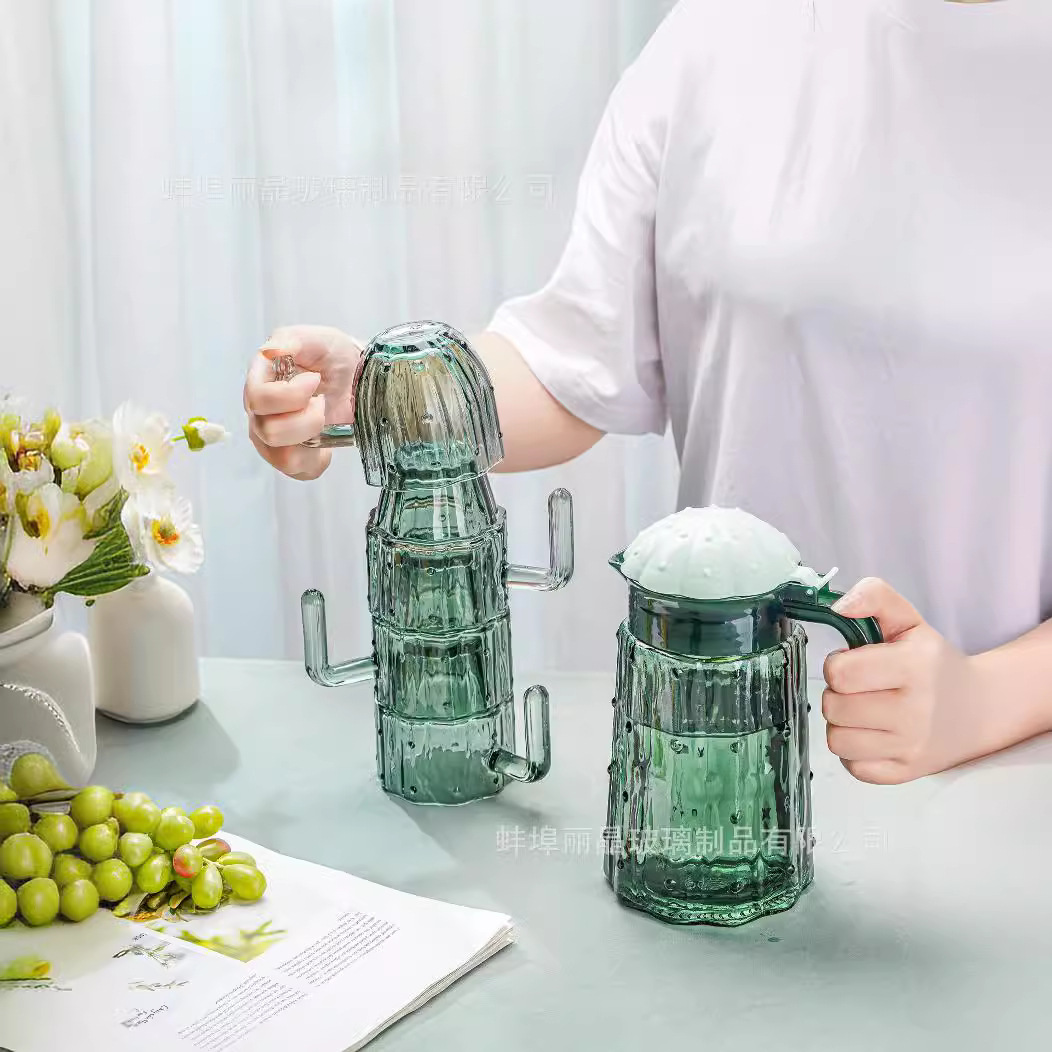 짙은 녹색 선인장 컵 세트 유리 물컵 고급스러운 가정용 식기 선물 상자 오프닝 선물 선물