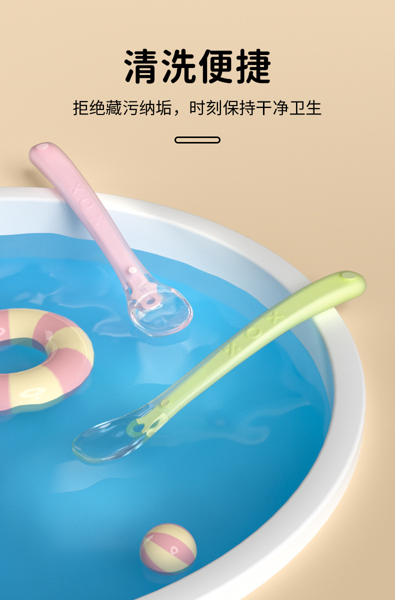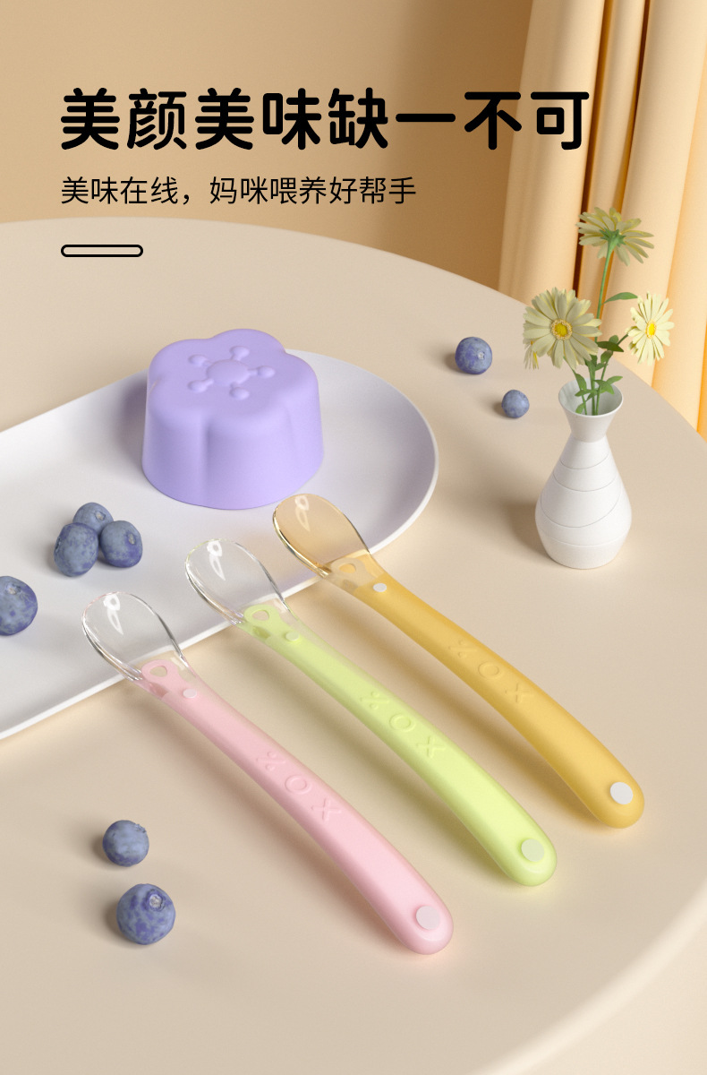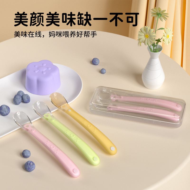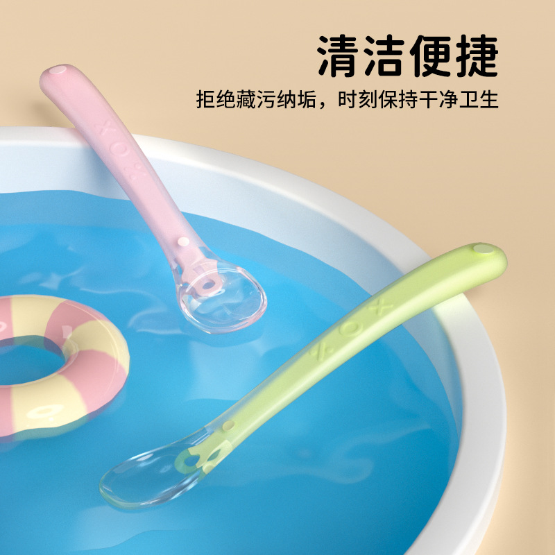 신생아 실리콘 소프트 스푼 어린이 보완 식품 수유 식기 아기 수유 쌀 페이스트 퓌레 온도에 민감한 부드러운 머리 보완 스푼