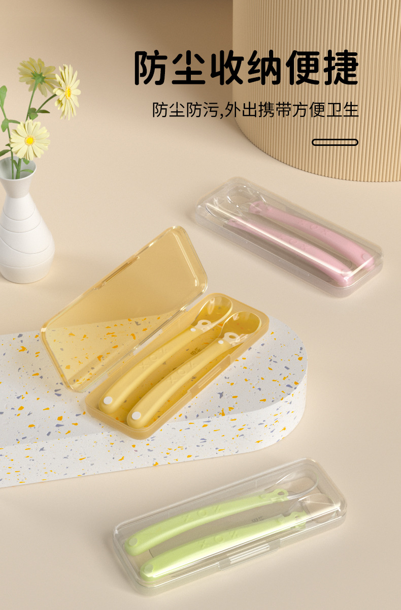 레몬 그린 소프트 헤드 스푼 + 보관 상자가있는 보조 스푼
