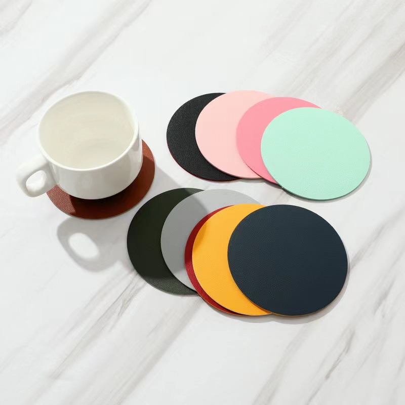 라운드 가죽 양면 코스터 가정 단열 매트 재떨이 매트 테이블 매트 재고 사용자 정의 로고 컬러 인쇄