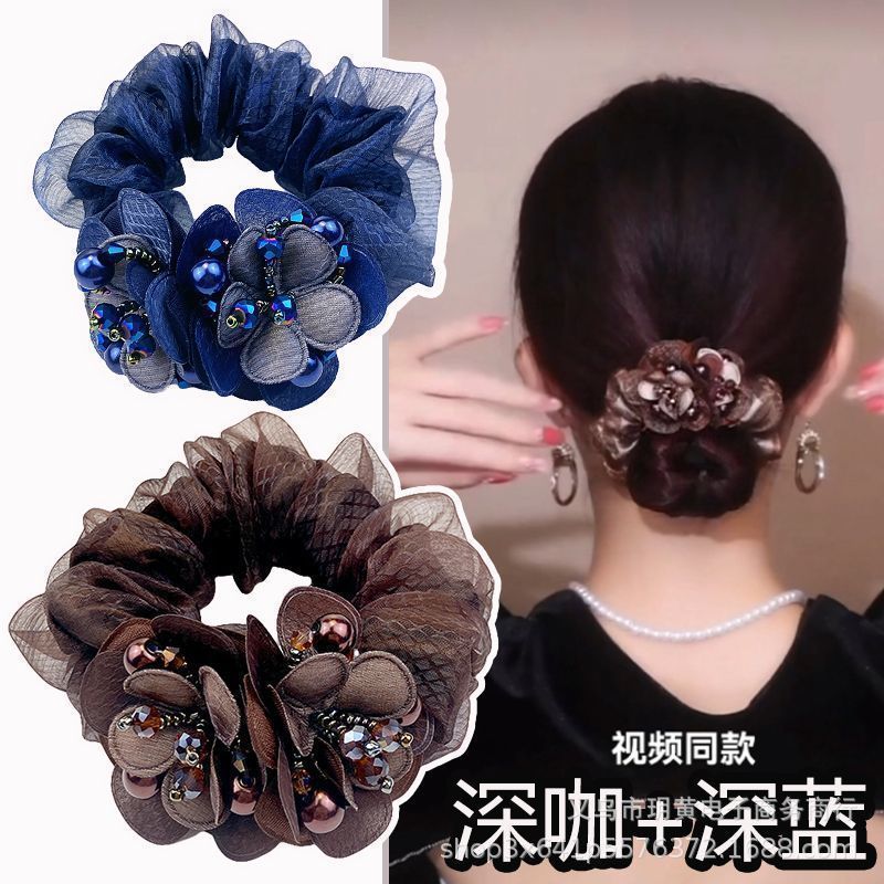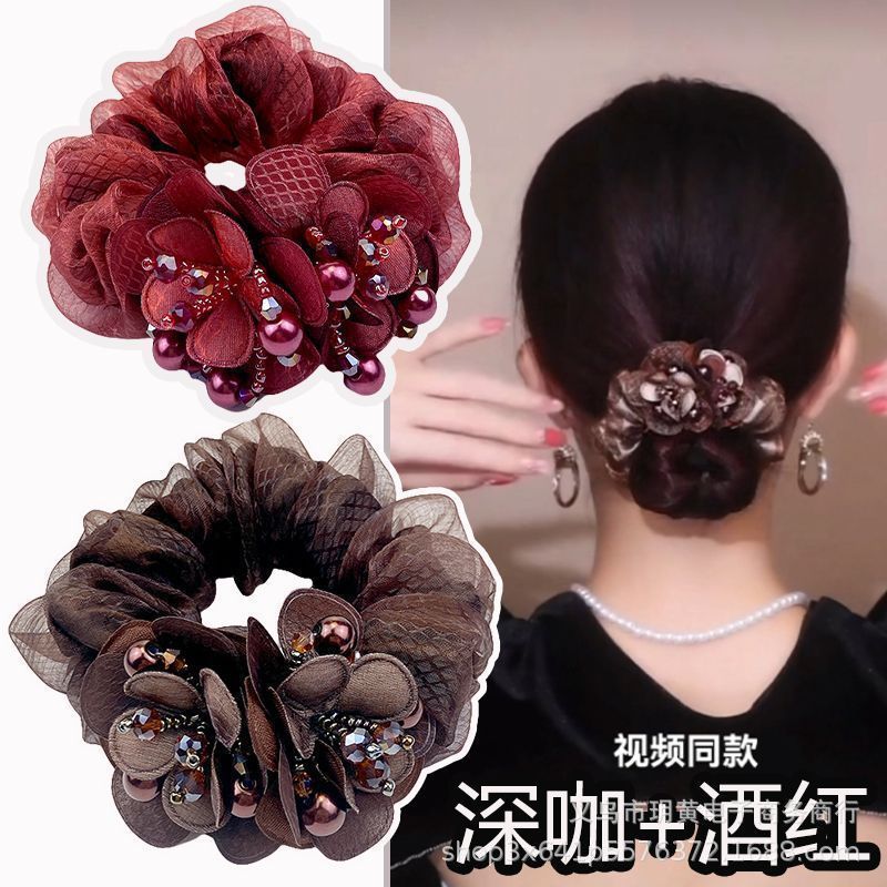 중년 어머니의 머리띠 꽃 소녀 메쉬 더블 꽃 머리 고무 밴드 대장 머리 넥타이 머리 하이 엔드 헤어 로프