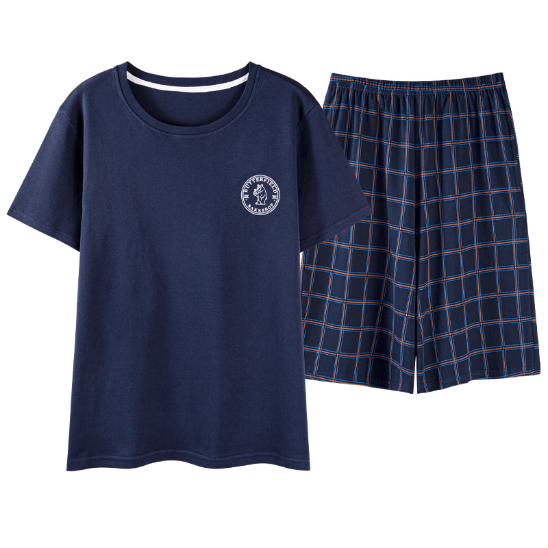 2023 차세대 머리 여름 중년 남성 면 잠옷 반팔 반바지 남성 플러스 사이즈 여름 가정 옷