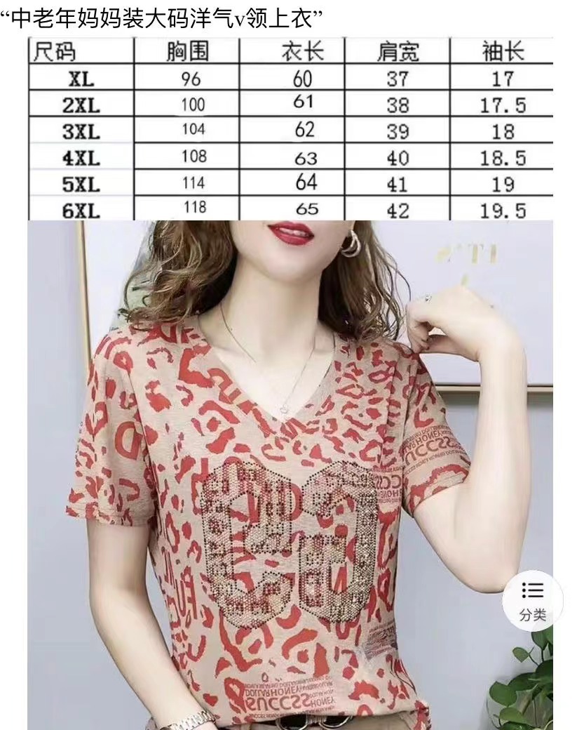 2023 여름 새로운 반팔 티셔츠 여성용 중년 및 노인 어머니 옷 플러스 사이즈 세련된 V-넥 탑 에이지 감소 배꼽 커버 스몰 셔츠