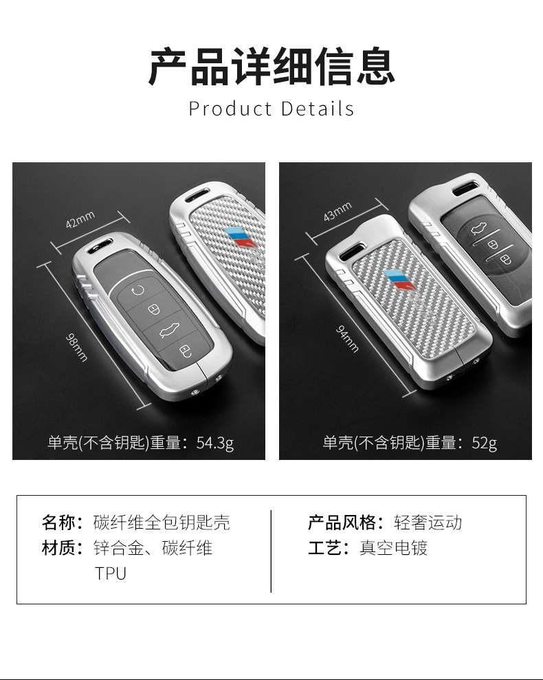크로스 보더 자동차 키 체리 Erez 8 Tiggo 7 8 플러스 Ou Mengda 5 키 세트를위한 쉘 실제 탄소 섬유