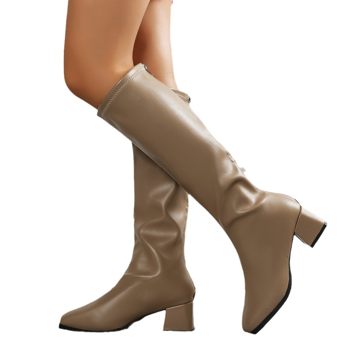 여성용 롱부츠 2025 한국 패션 부츠 신축성 부츠 하이탑 부츠 굵은 굽 큰 사이즈 42 트렌디 굵은 굽 슬림 효과