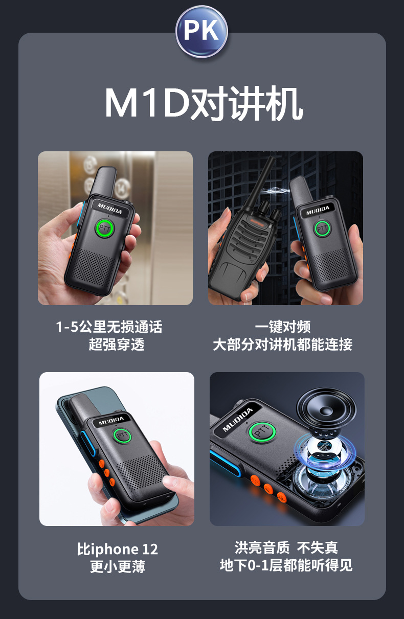 [자동 주파수 매칭] mu Qida 미니 라이트 초박형 긴 대기 장거리 호텔 무선 워키