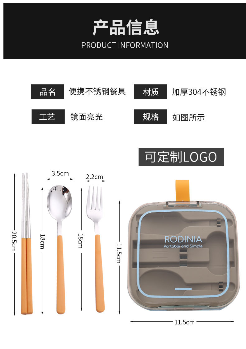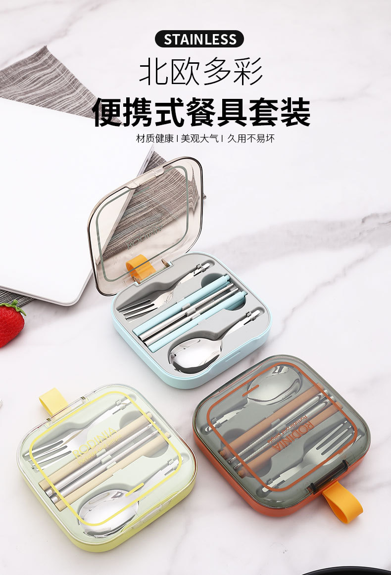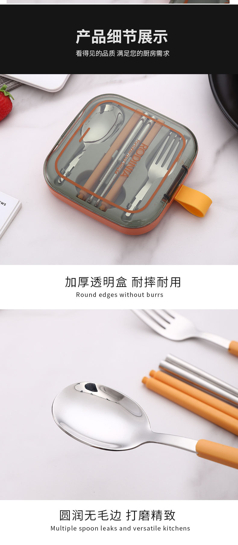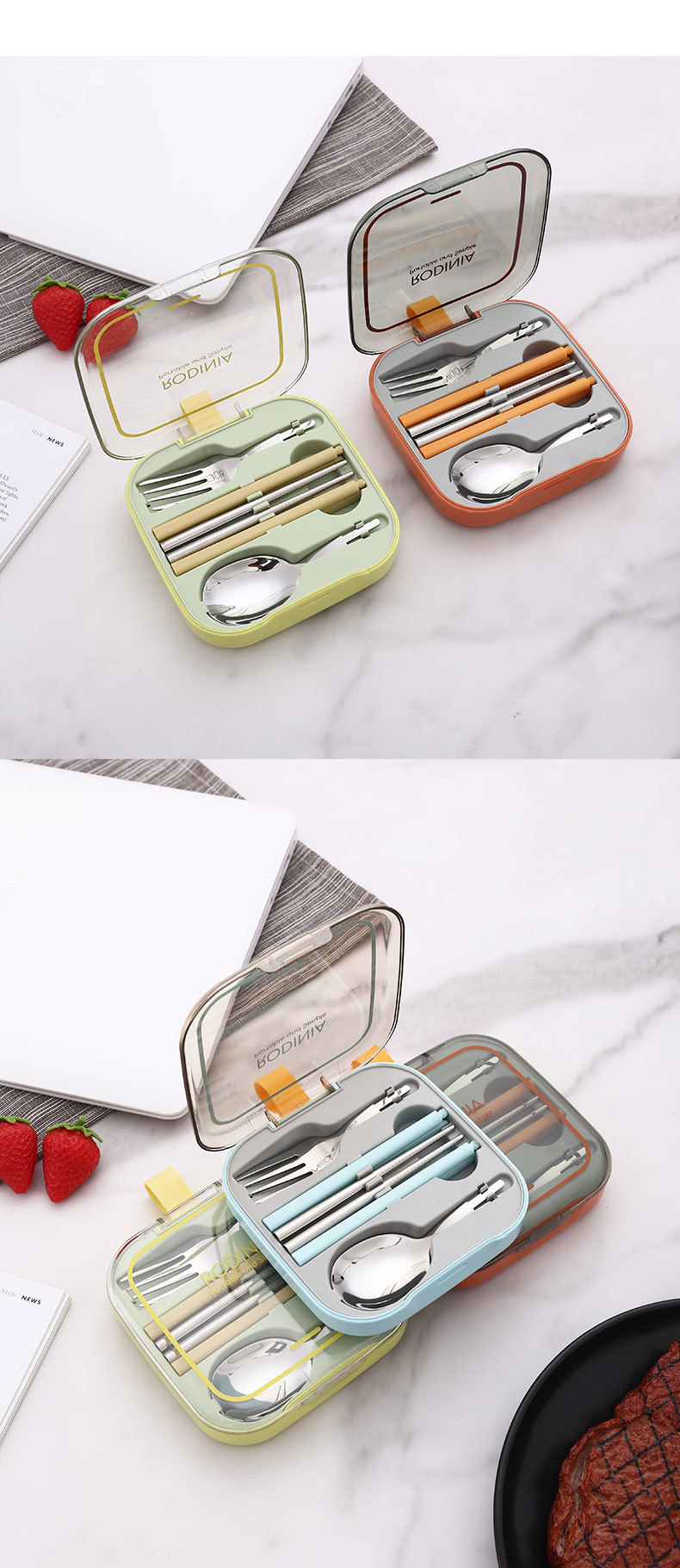 304 스테인레스 스틸 접이식 휴대용 식기 세트 야외 학생 분리 가능한 스푼 포크 젓가락 3 종 세트