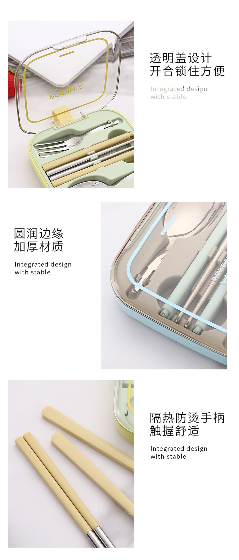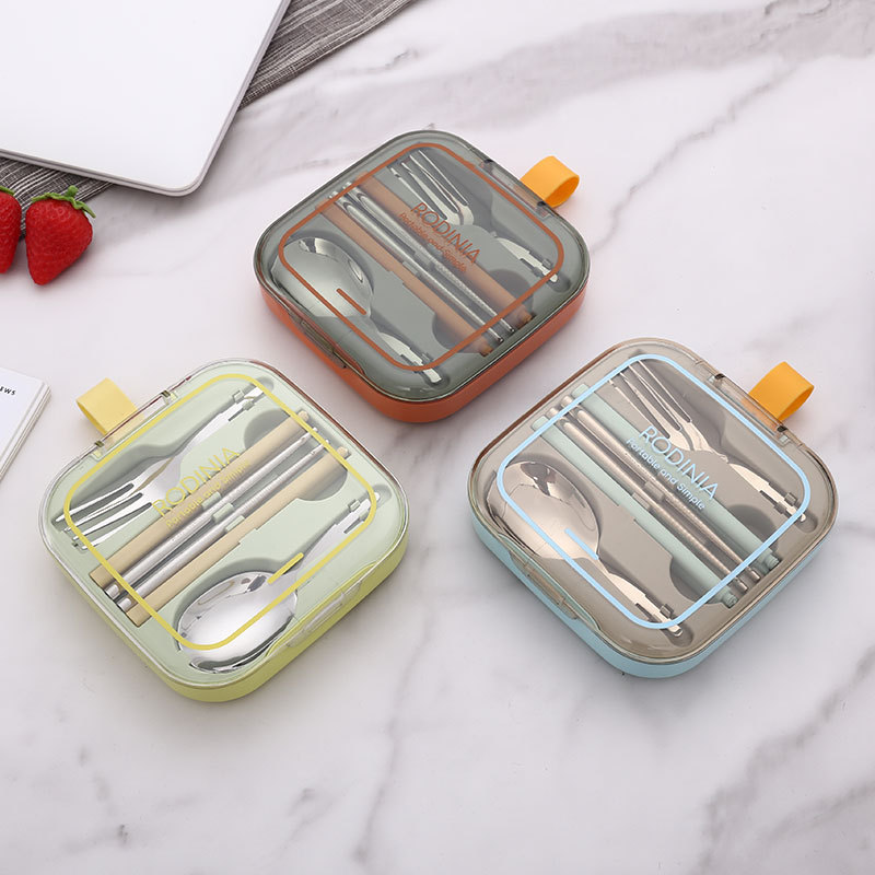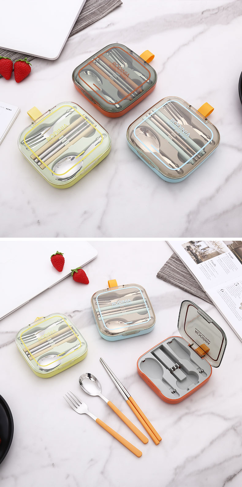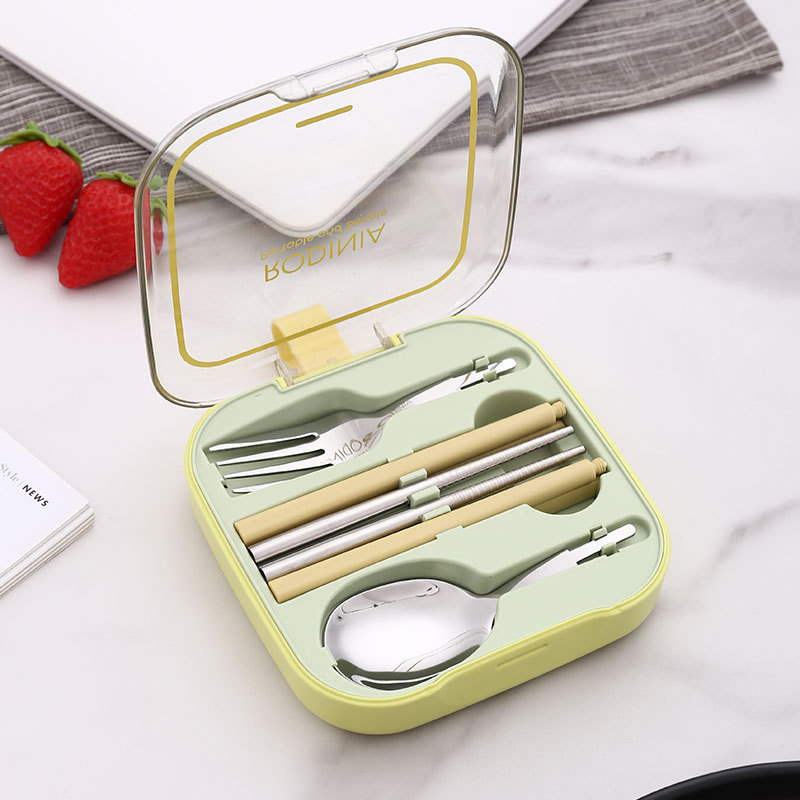 304 스테인레스 스틸 접이식 휴대용 식기 세트 야외 학생 분리 가능한 스푼 포크 젓가락 3 종 세트