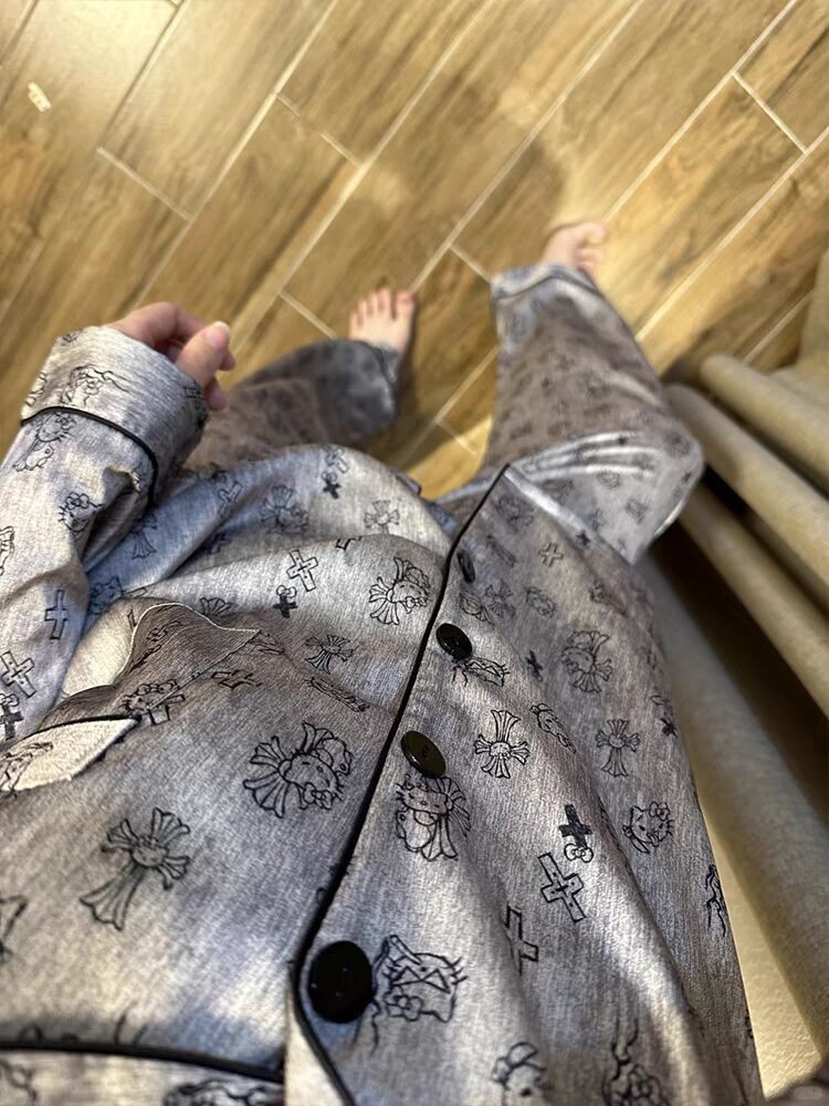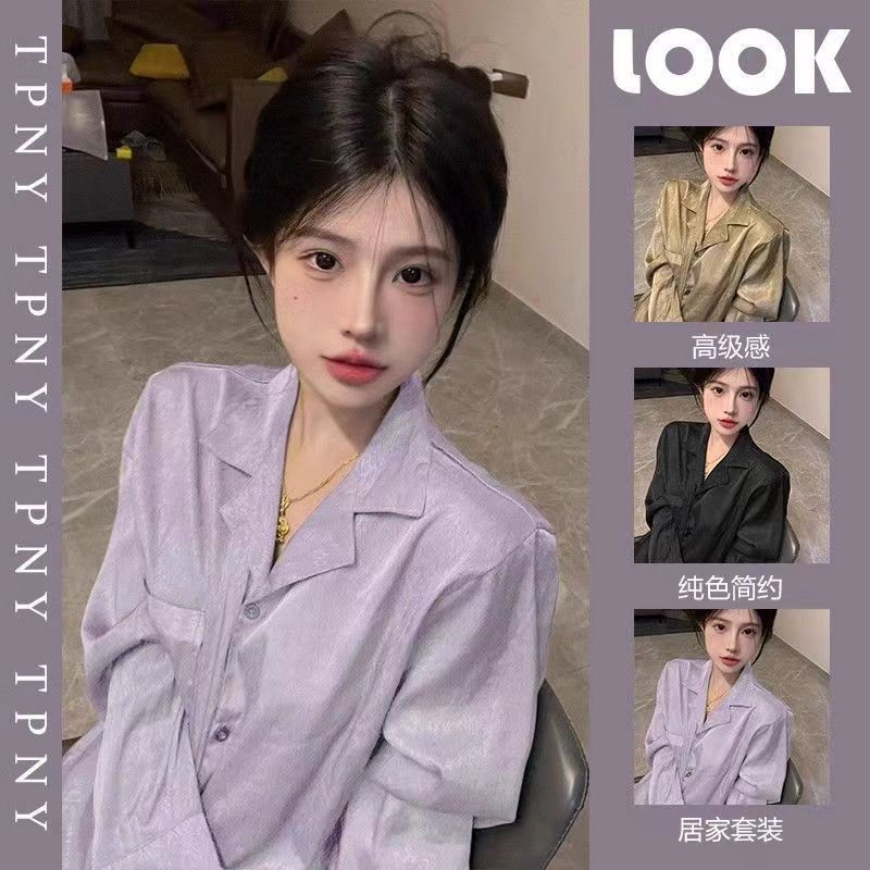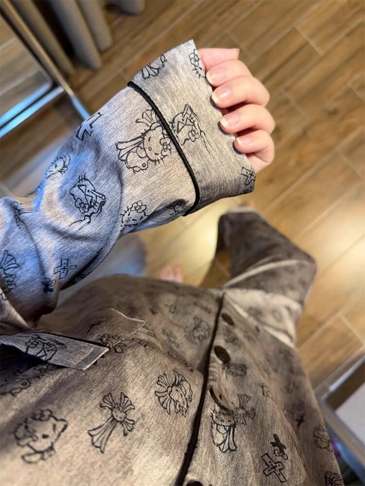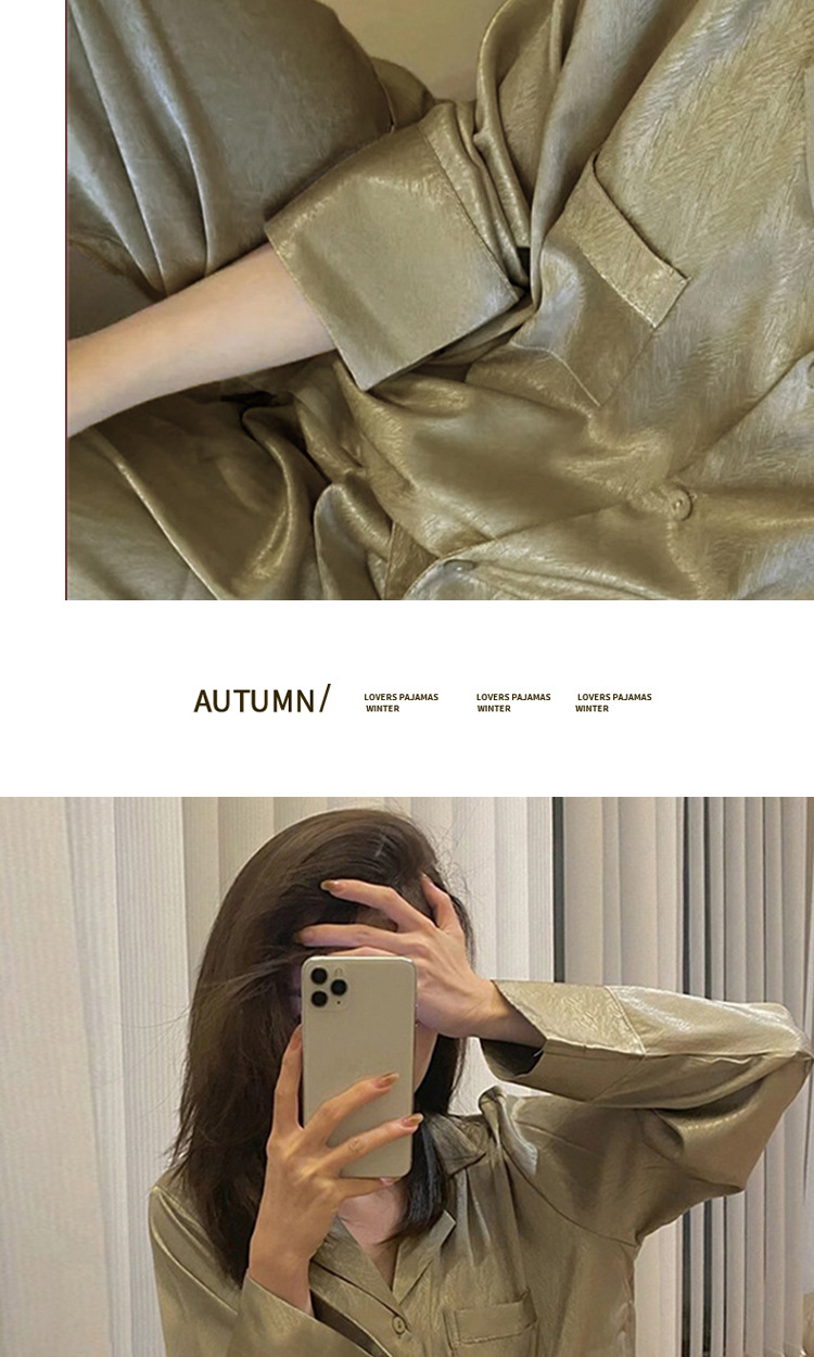 아이스 실크 잠옷 여성의 봄과 가을 긴 소매 귀여운 새 스타일 얇은 실크 여름 여성 Ins 스타일 세트 홈 옷