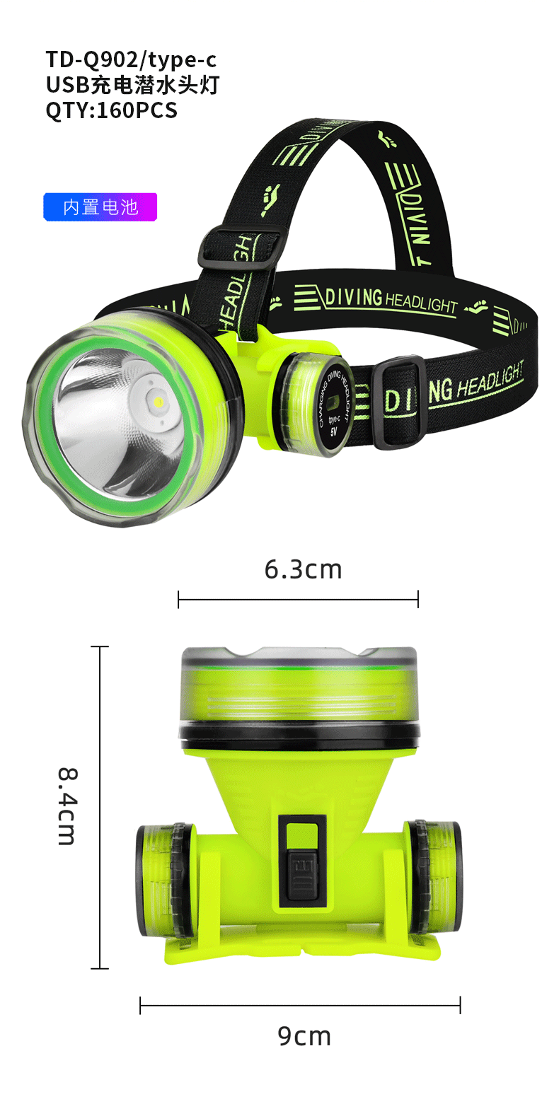 야외용 신형 고정초점 다이빙 헤드라이트, 헤드 장착형 조명, 강력한 조명, 긴 배터리 수명, 헤드 장착형 장비, LED 라이트