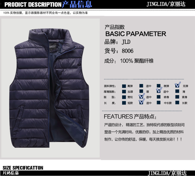 남자 가을 겨울 조끼 칼라 코튼 패딩 재킷 아마존 국경 대외 무역 대형 조끼 재킷 다운 코튼 조끼 웨이스트 코트