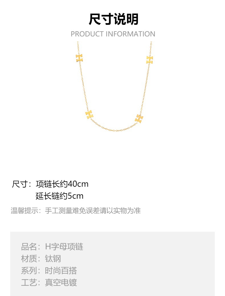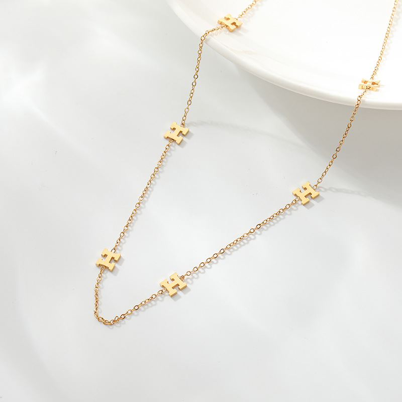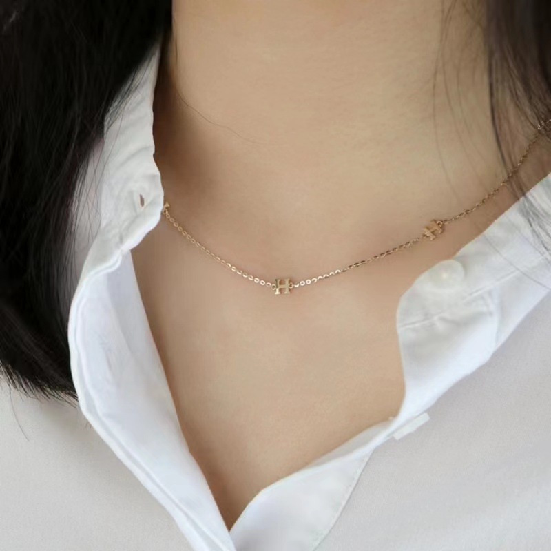 2023 새로운 H-편지 목걸이 여성의 가벼운 럭셔리 틈새 고급 디자인 감각 티타늄 스틸 비 페이딩 쇄골 체인 쥬얼리