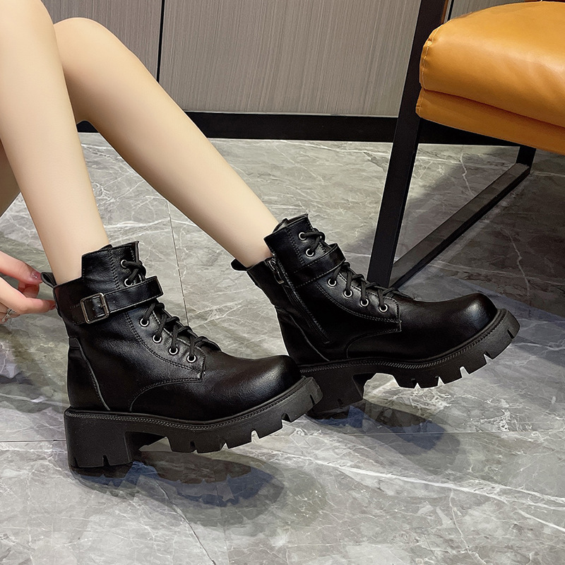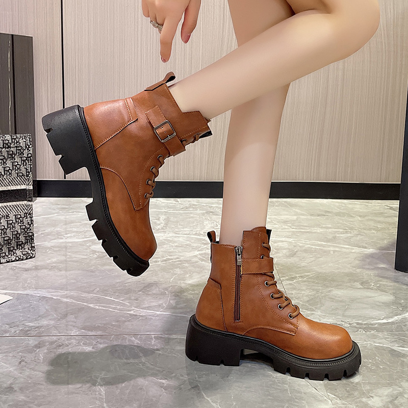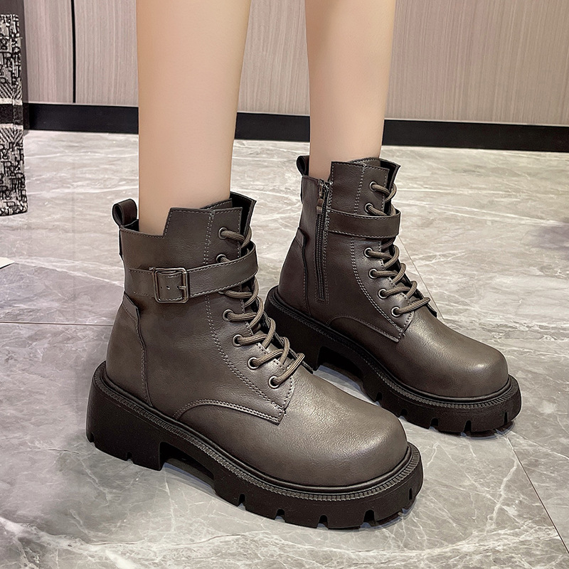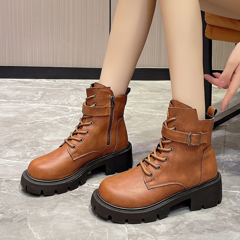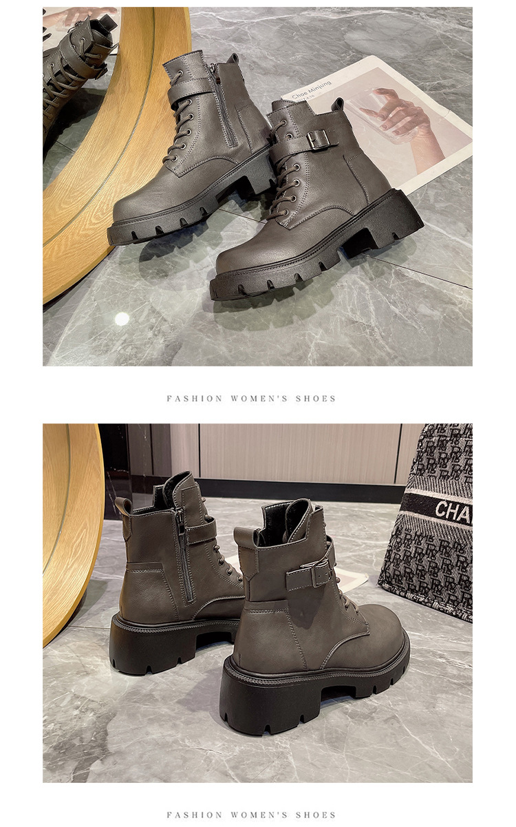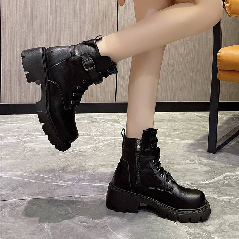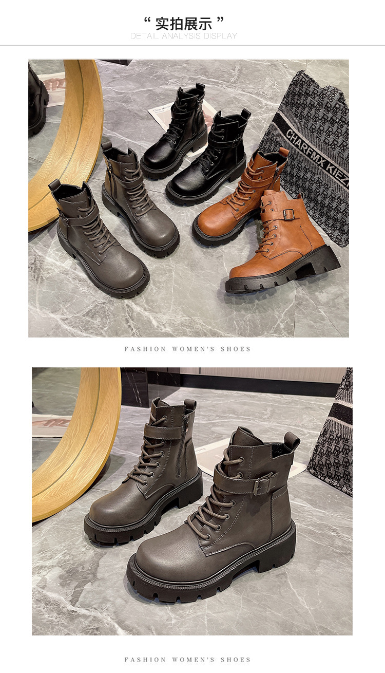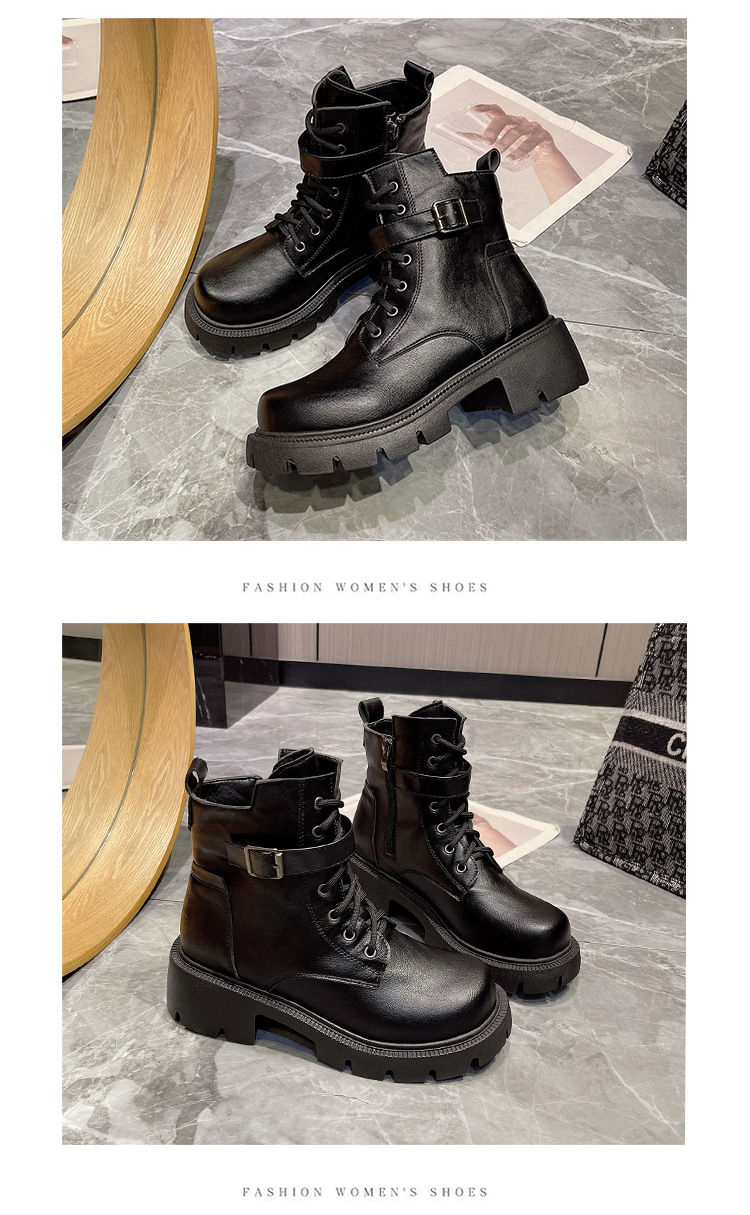 마틴 부츠 여자의 2023 새로운 가을과 겨울 영국 스타일 오토바이 부츠 두꺼운 바닥 벨트 버클 복고풍 짧은 부츠 플러스 사이즈 부츠