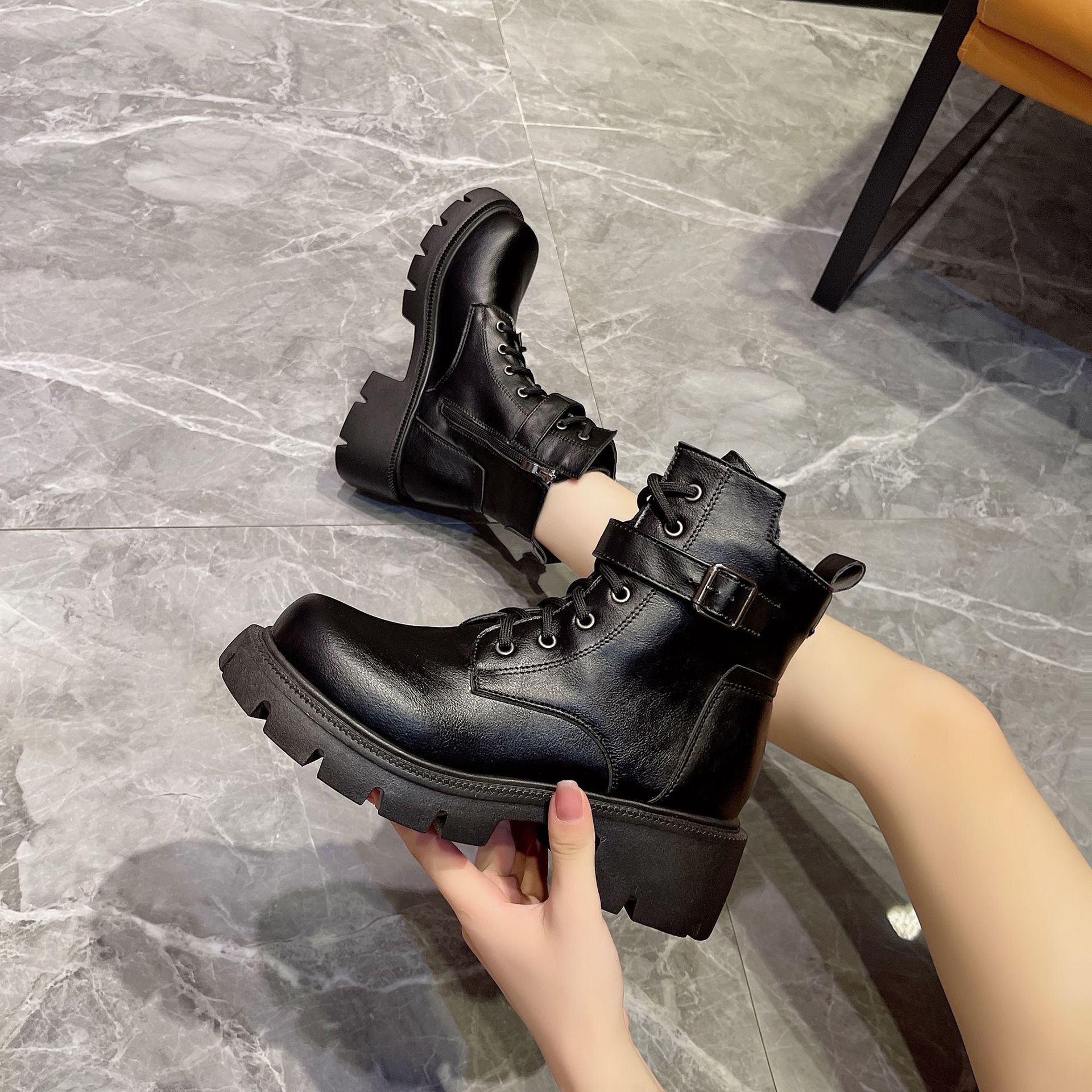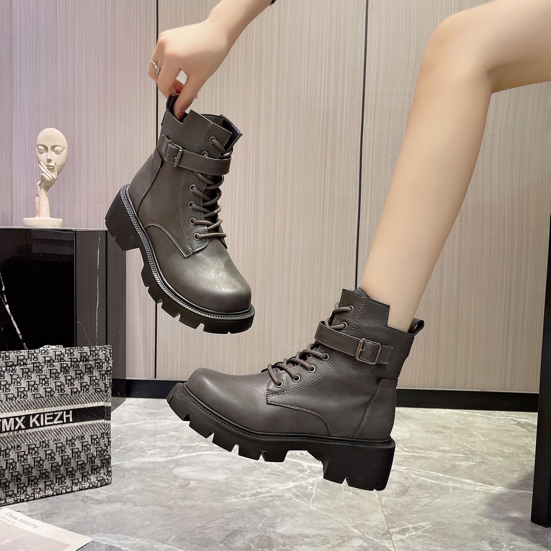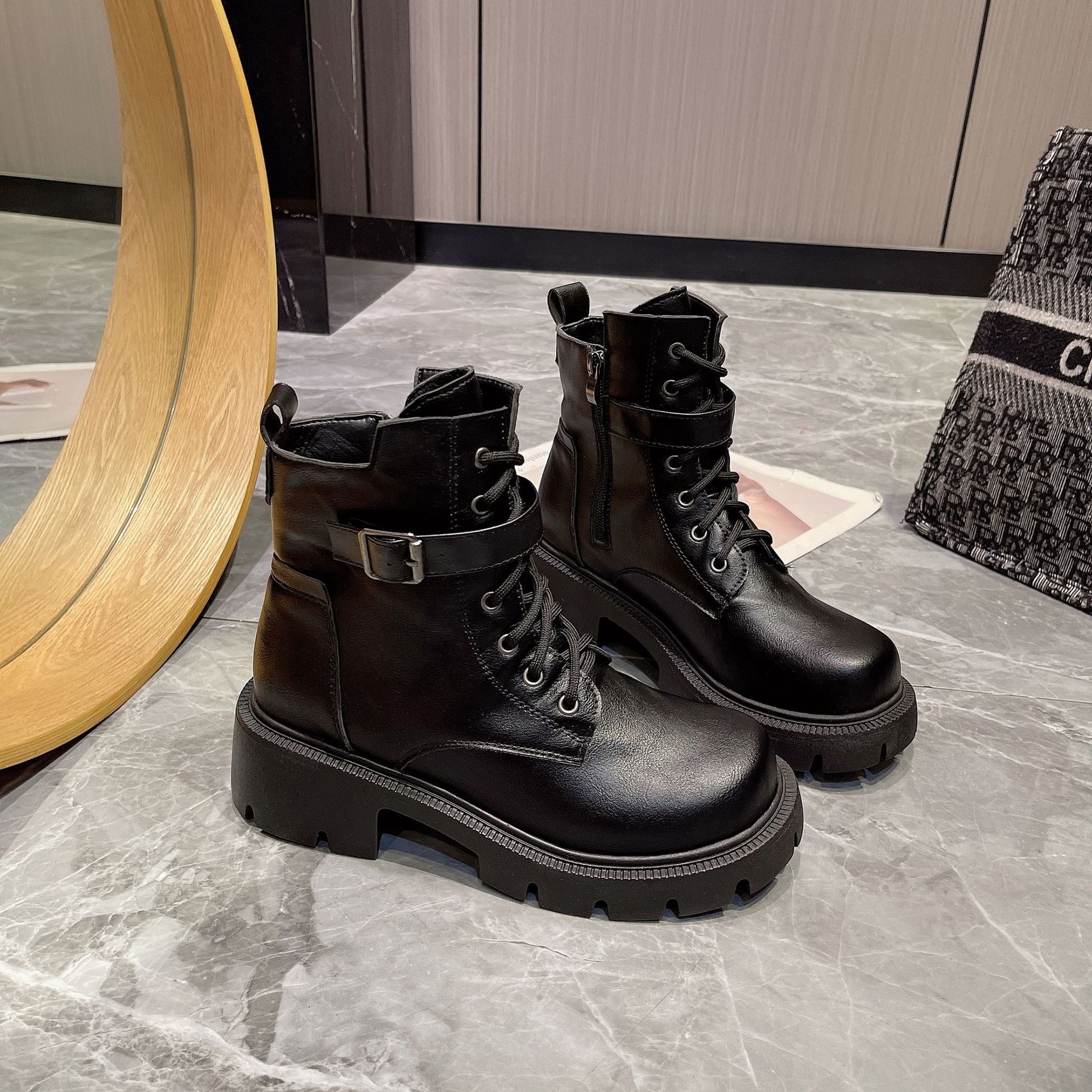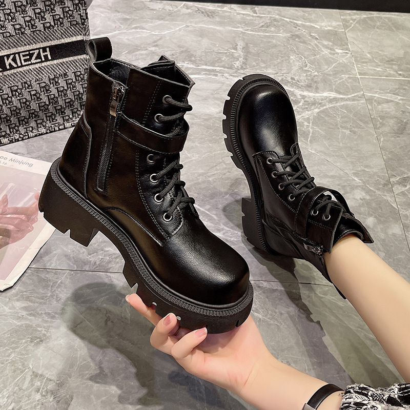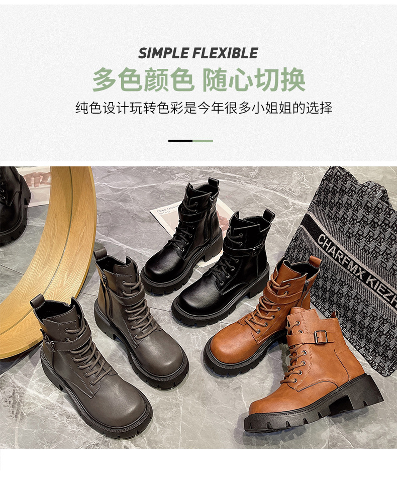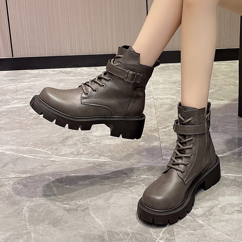 마틴 부츠 여자의 2023 새로운 가을과 겨울 영국 스타일 오토바이 부츠 두꺼운 바닥 벨트 버클 복고풍 짧은 부츠 플러스 사이즈 부츠