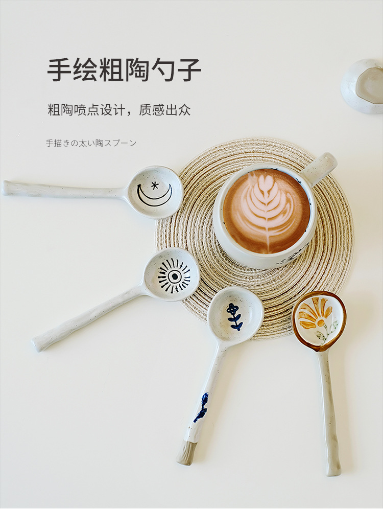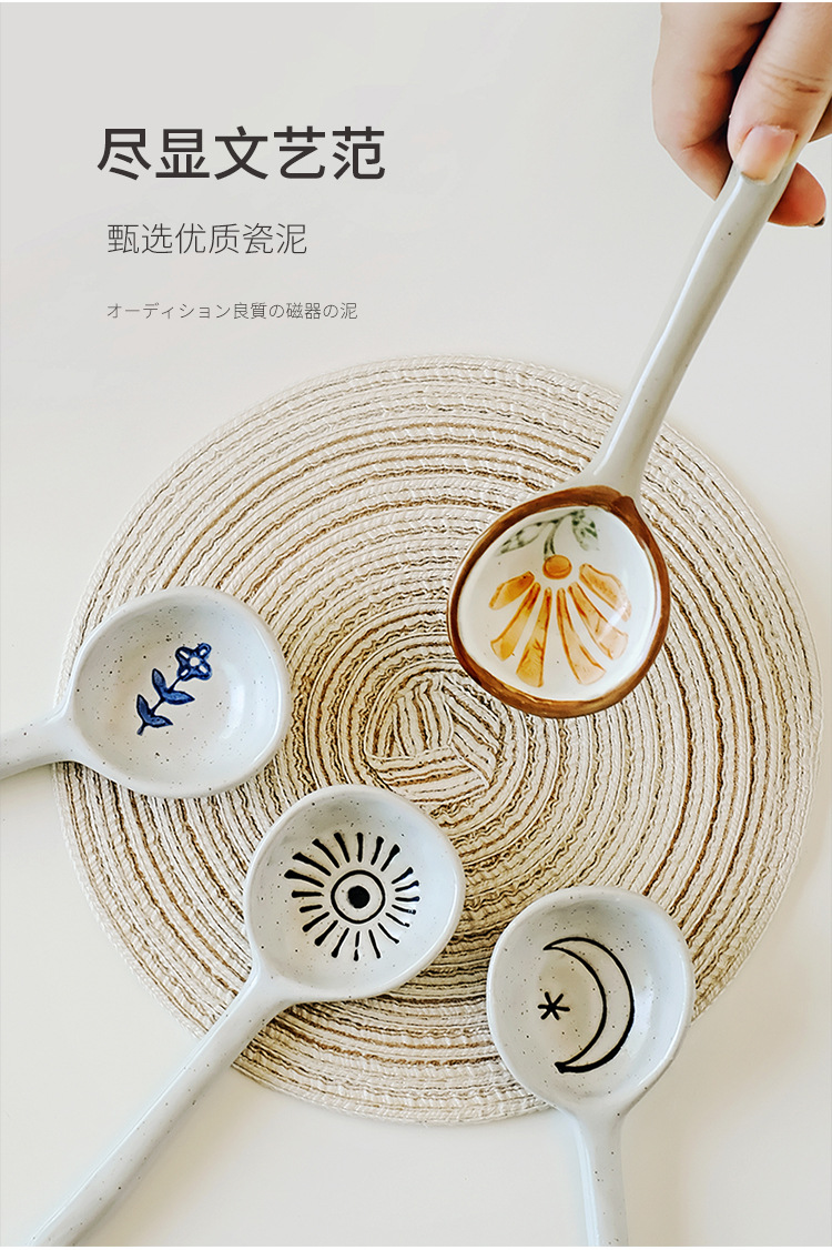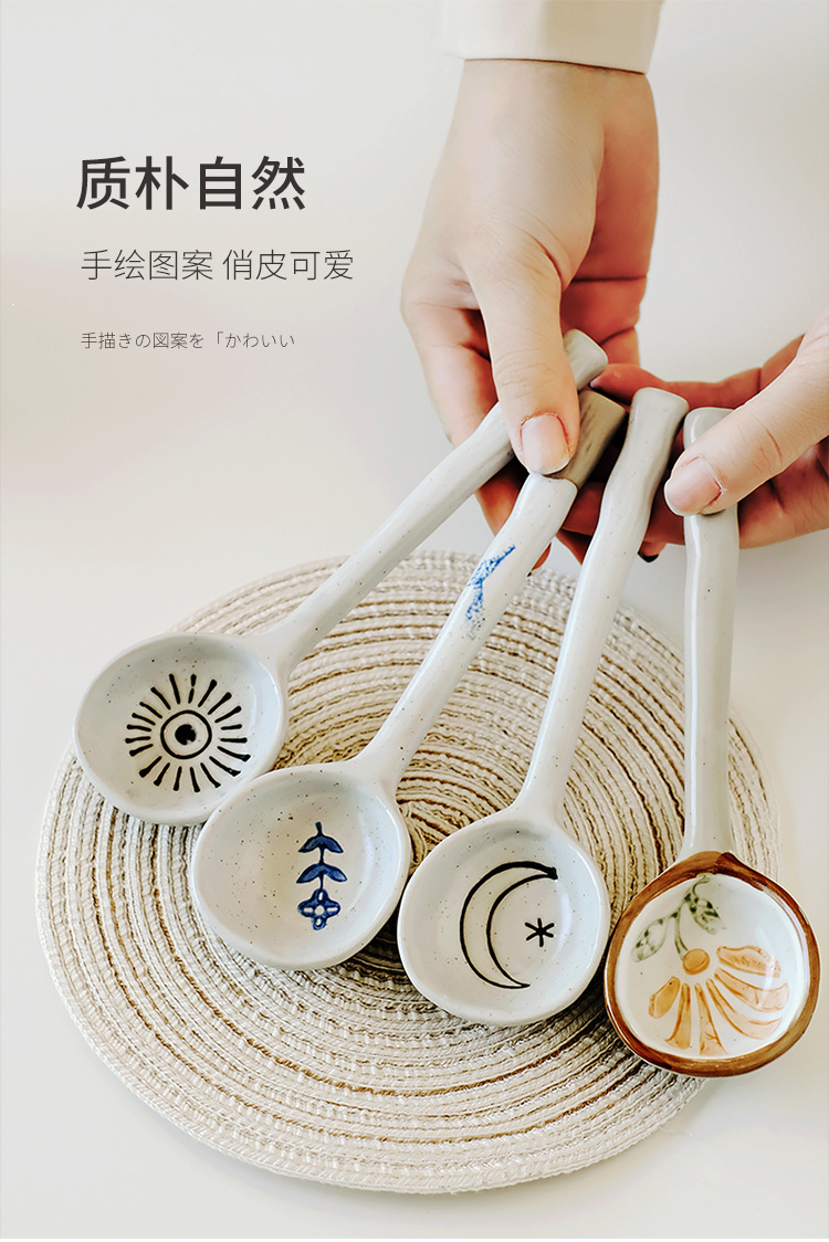 세라믹 스푼 가정용 높은 색상 가치 긴 손잡이 일본식 수프 작은 숟가락 창조적 인 숟가락 밥 숟가락 식당 숟가락 숟가락