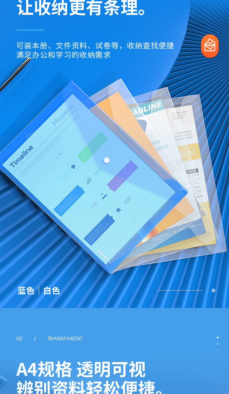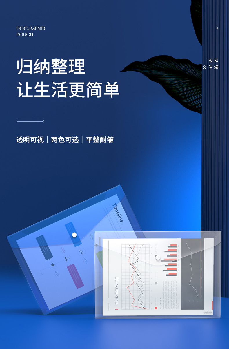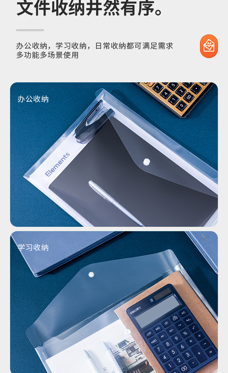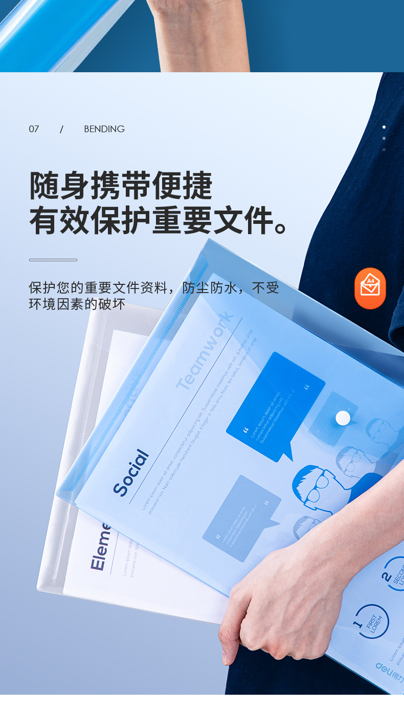 델리 문서 가방 A4 투명 문서 보관 가방 사무용품 도매 방수 문구 문서 스냅 백