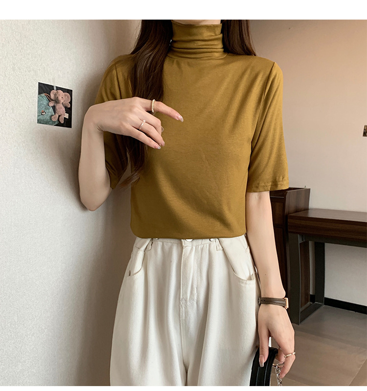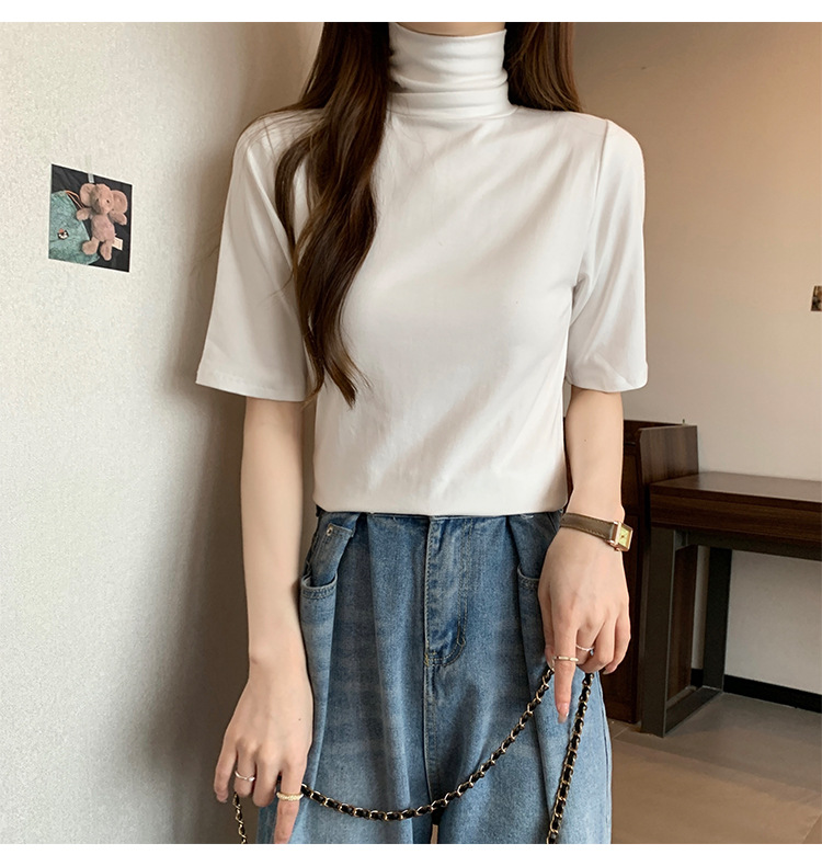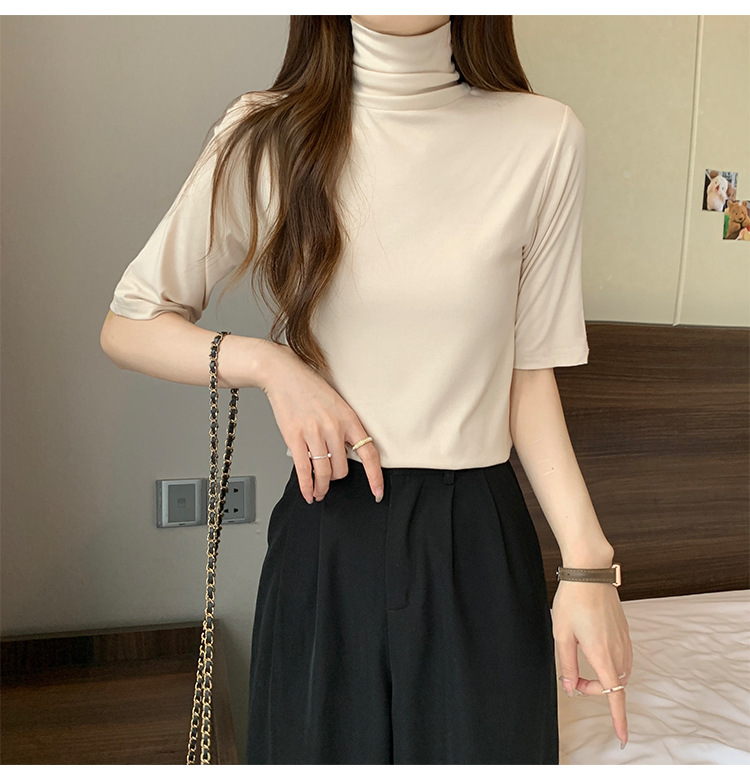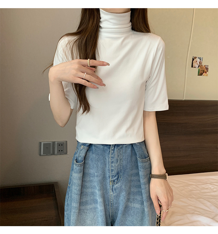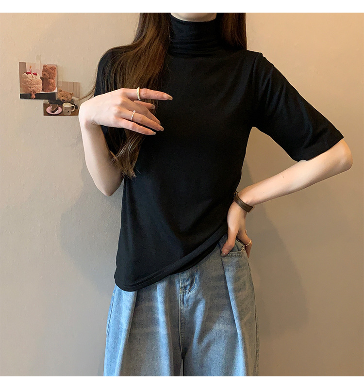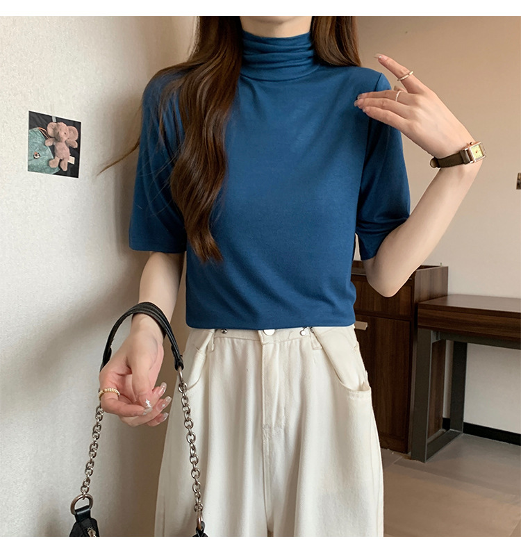 유럽식 터틀넥 바텀 셔츠 여성용 인테리어 새로운 스타일 미드 슬리브 탑 여성용 반팔 티셔츠