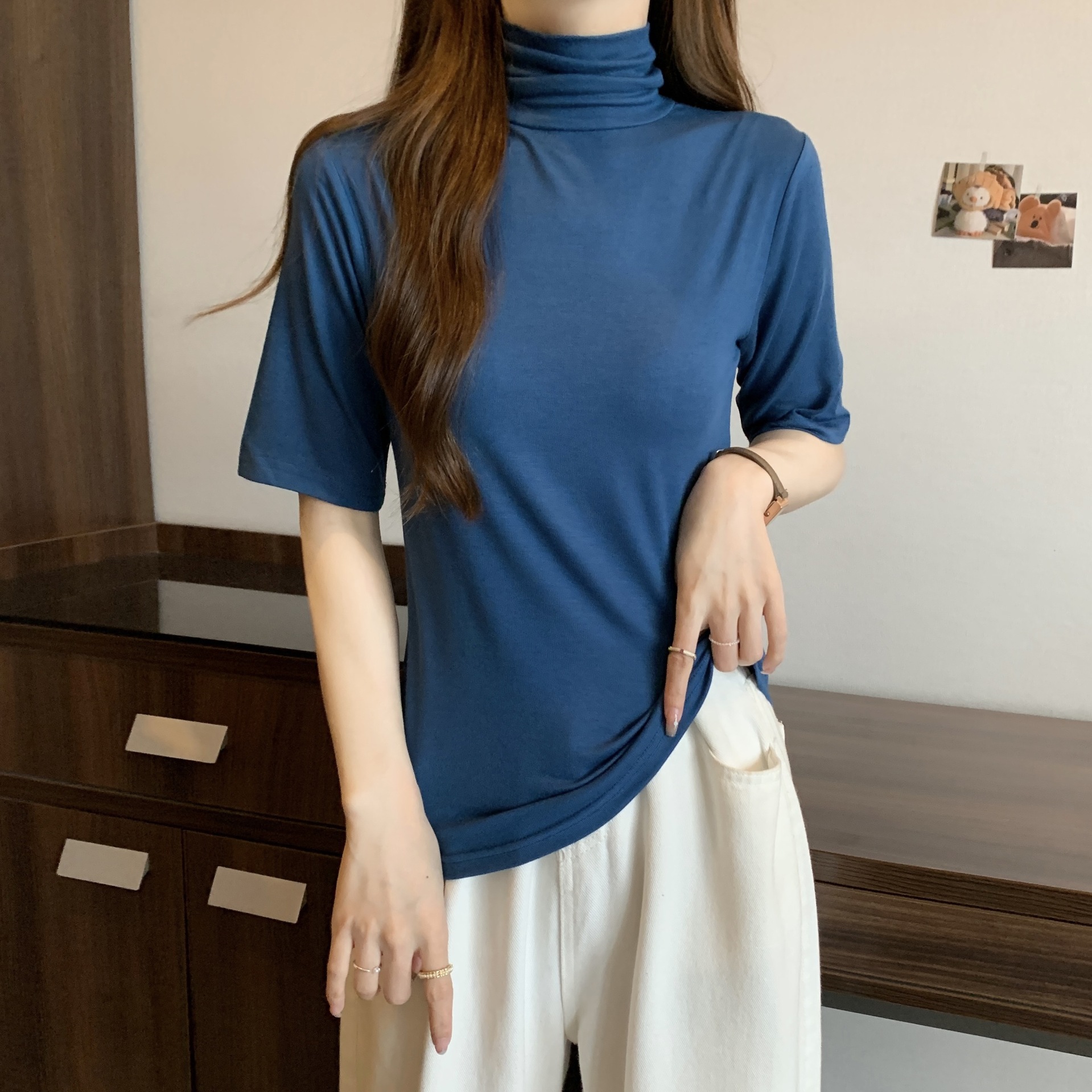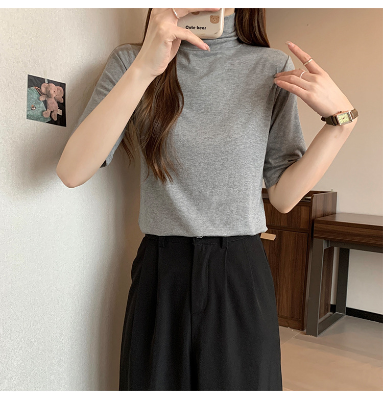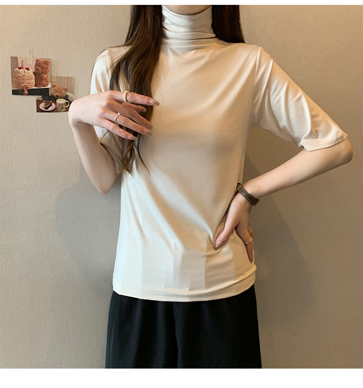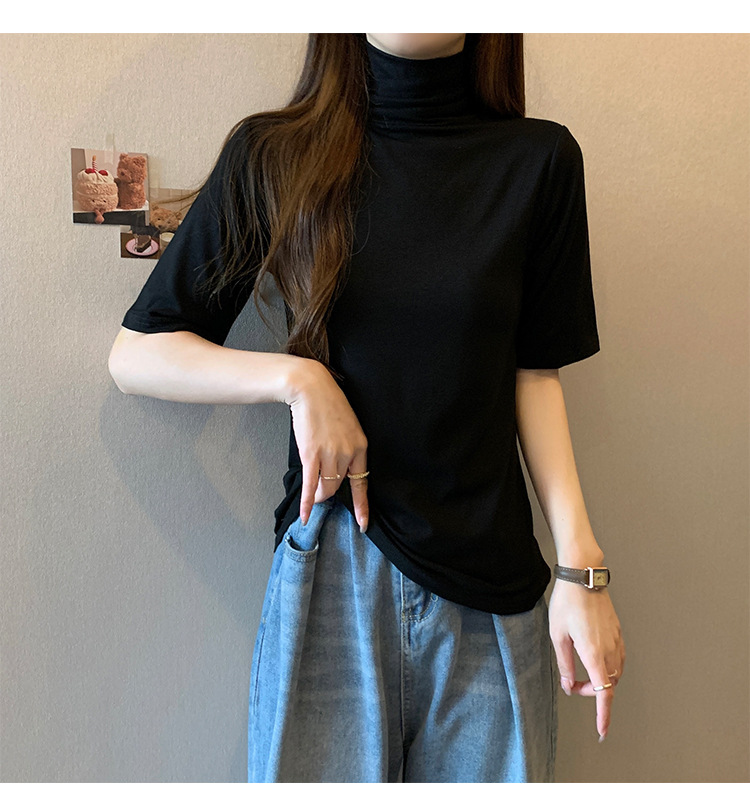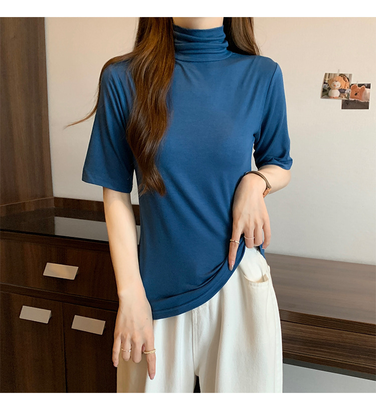 유럽식 터틀넥 바텀 셔츠 여성용 인테리어 새로운 스타일 미드 슬리브 탑 여성용 반팔 티셔츠