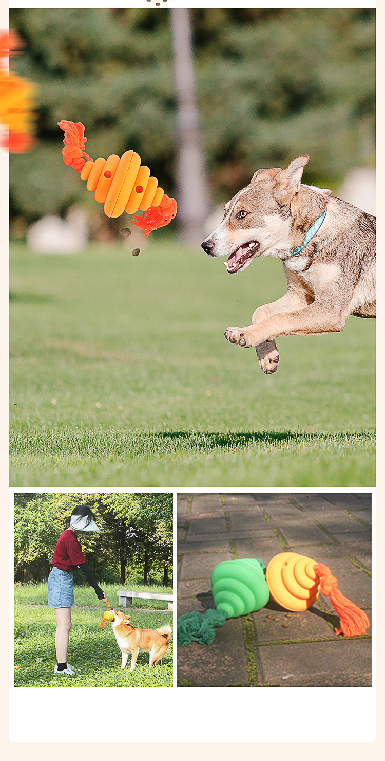 새로운 애완 동물 제품 장난감 개 먹이 공 벌집 모양 물린 방지 로프 대화 형 장거리 야외 장난감