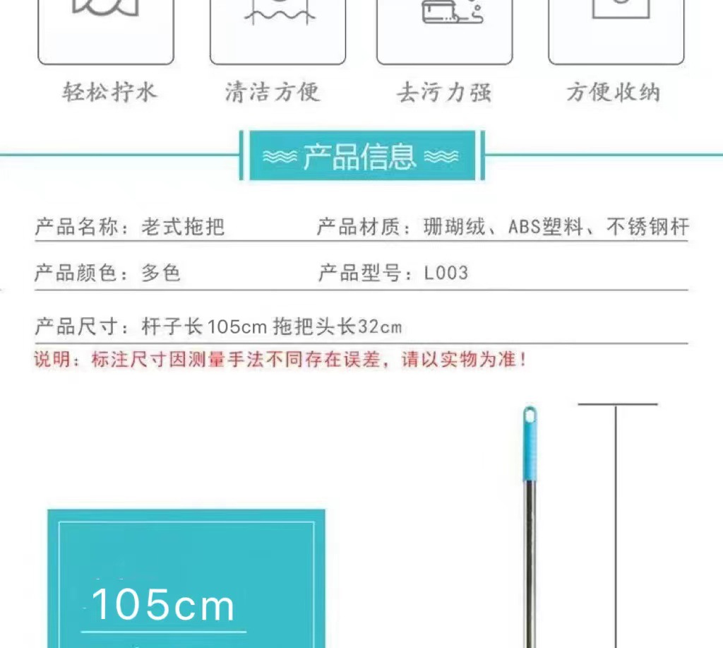 직경 25 스테인레스 스틸 튜브, 걸레 헤드 색상 랜덤