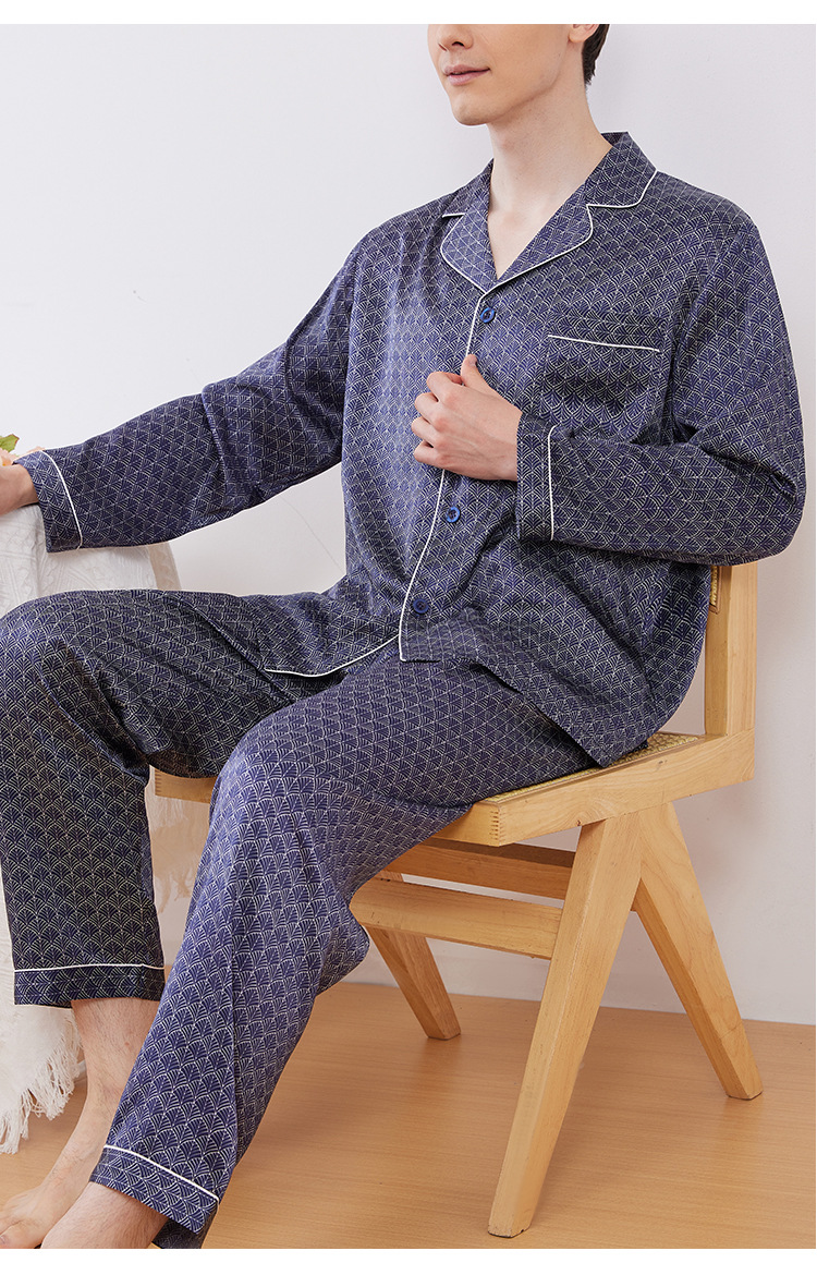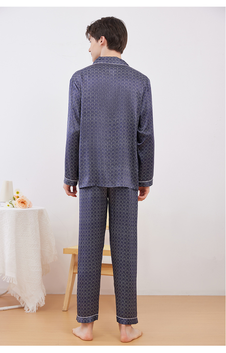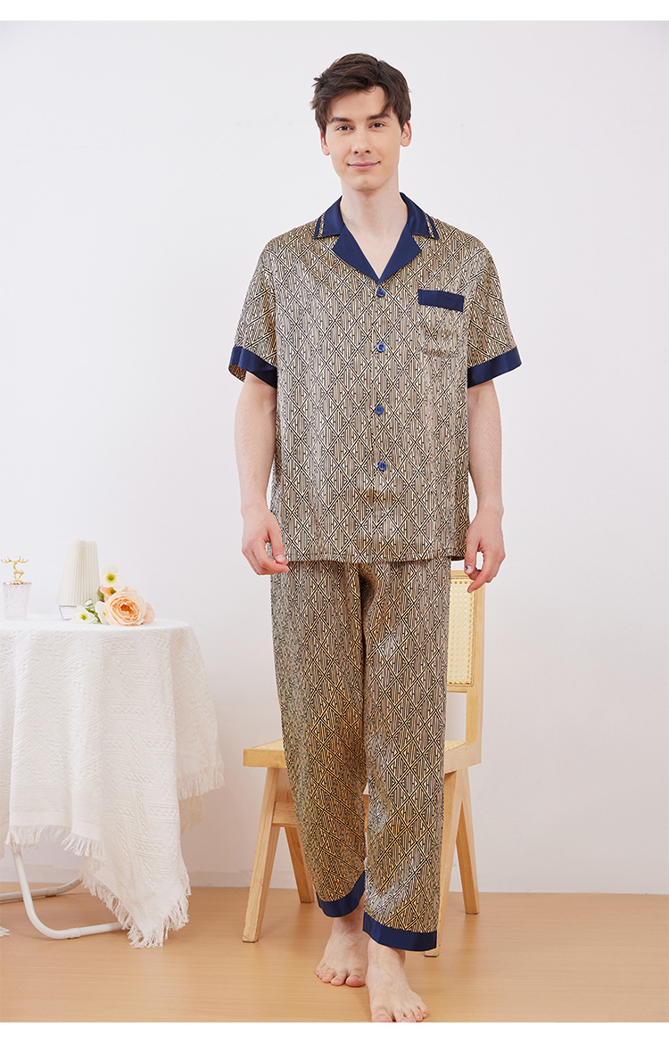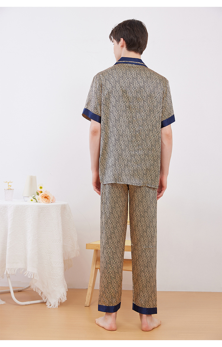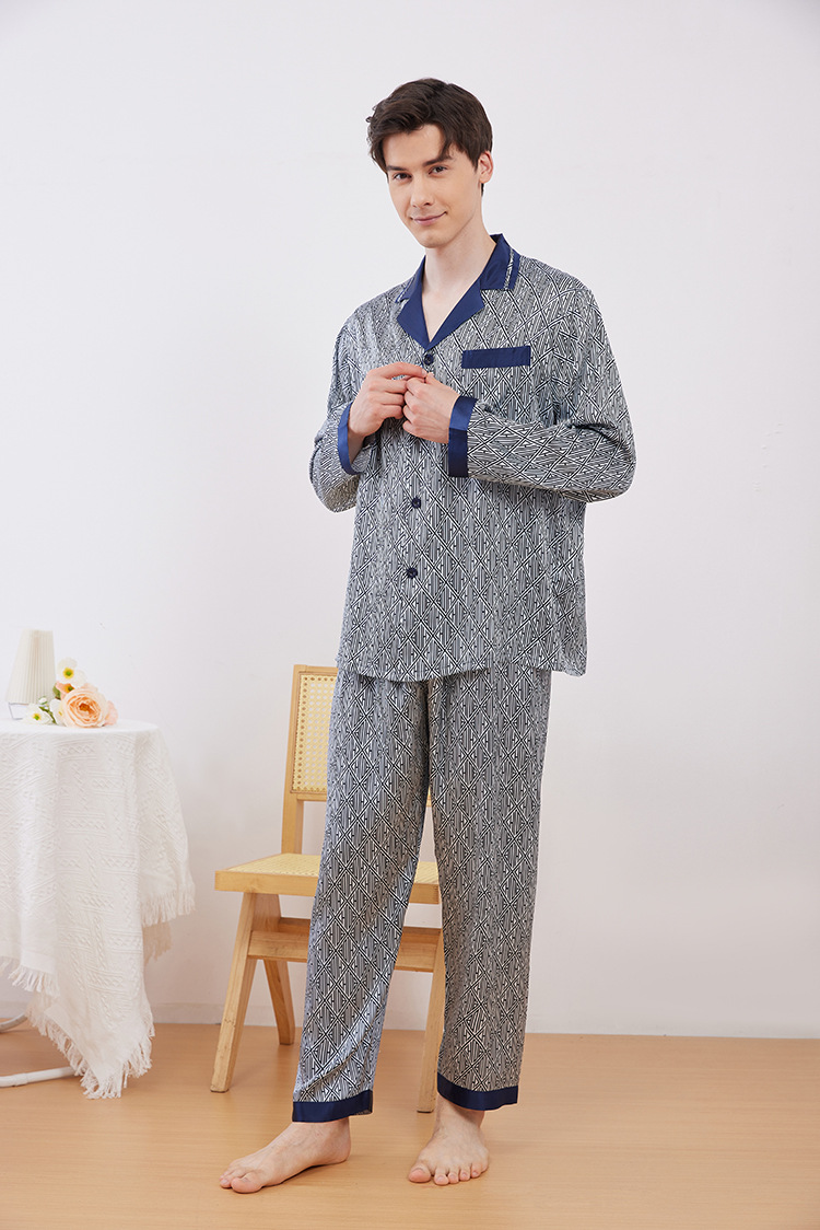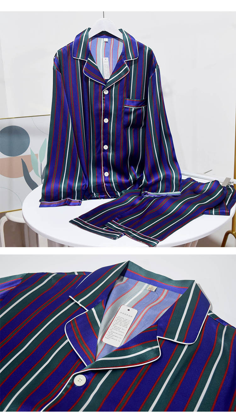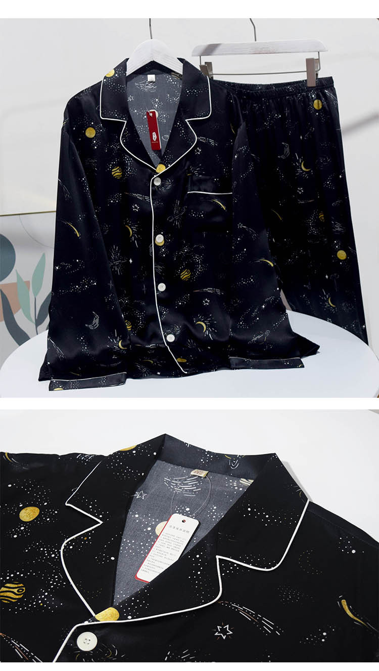 男士喷绘印花重磅真丝睡衣套装100%桑蚕丝家居服时尚绅士长袖长裤两件套装春秋季起居服多款花色可选4XL加大码胖子跨境直播一件代发