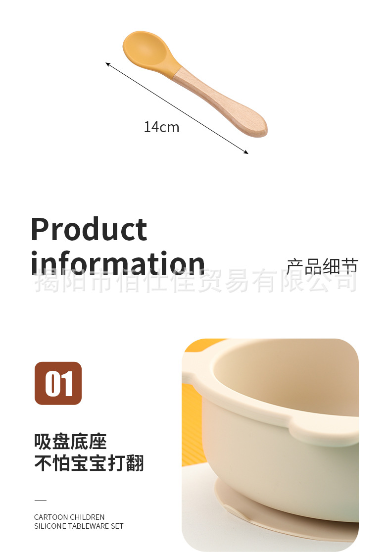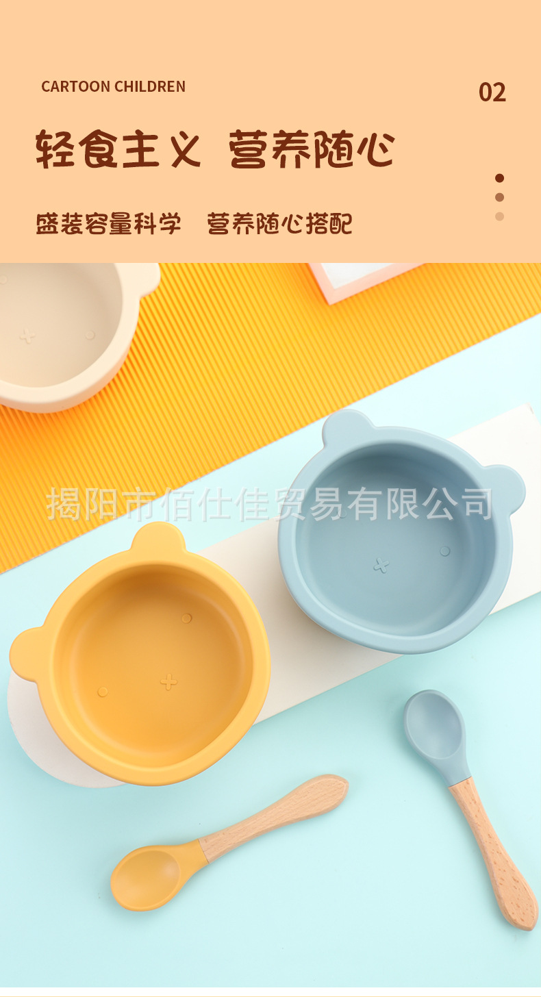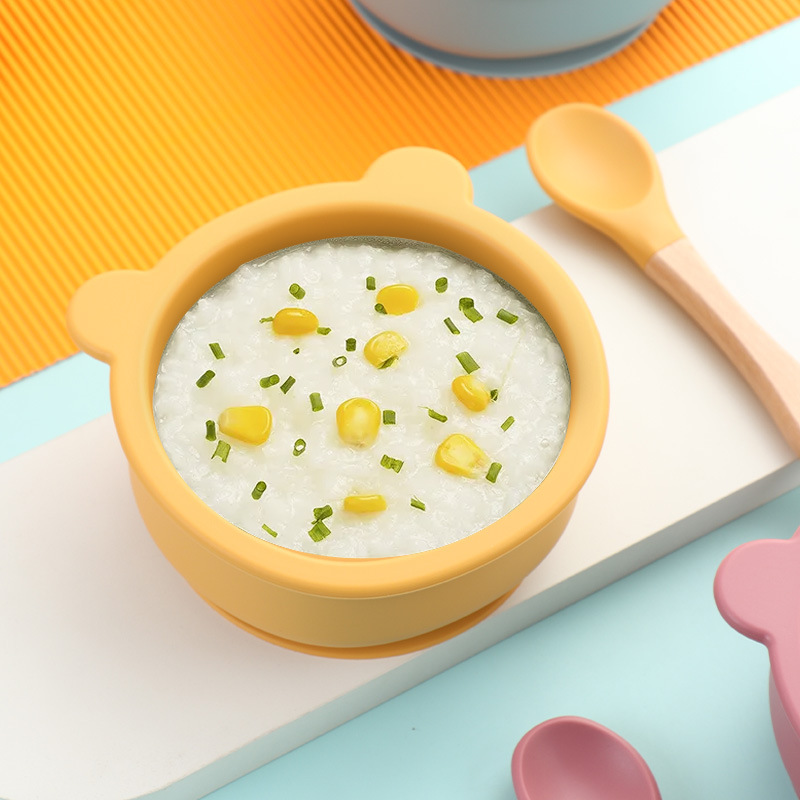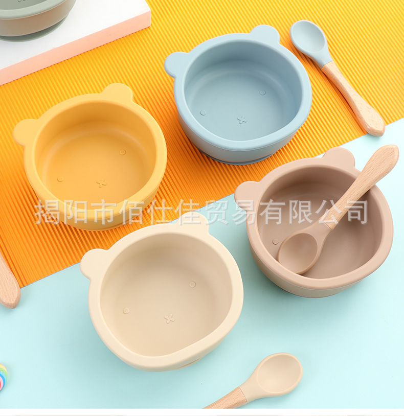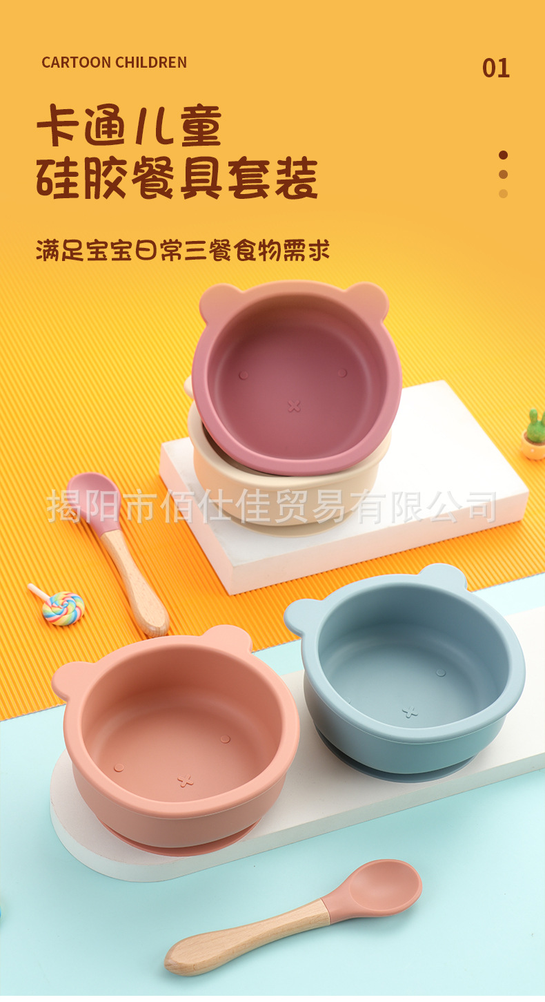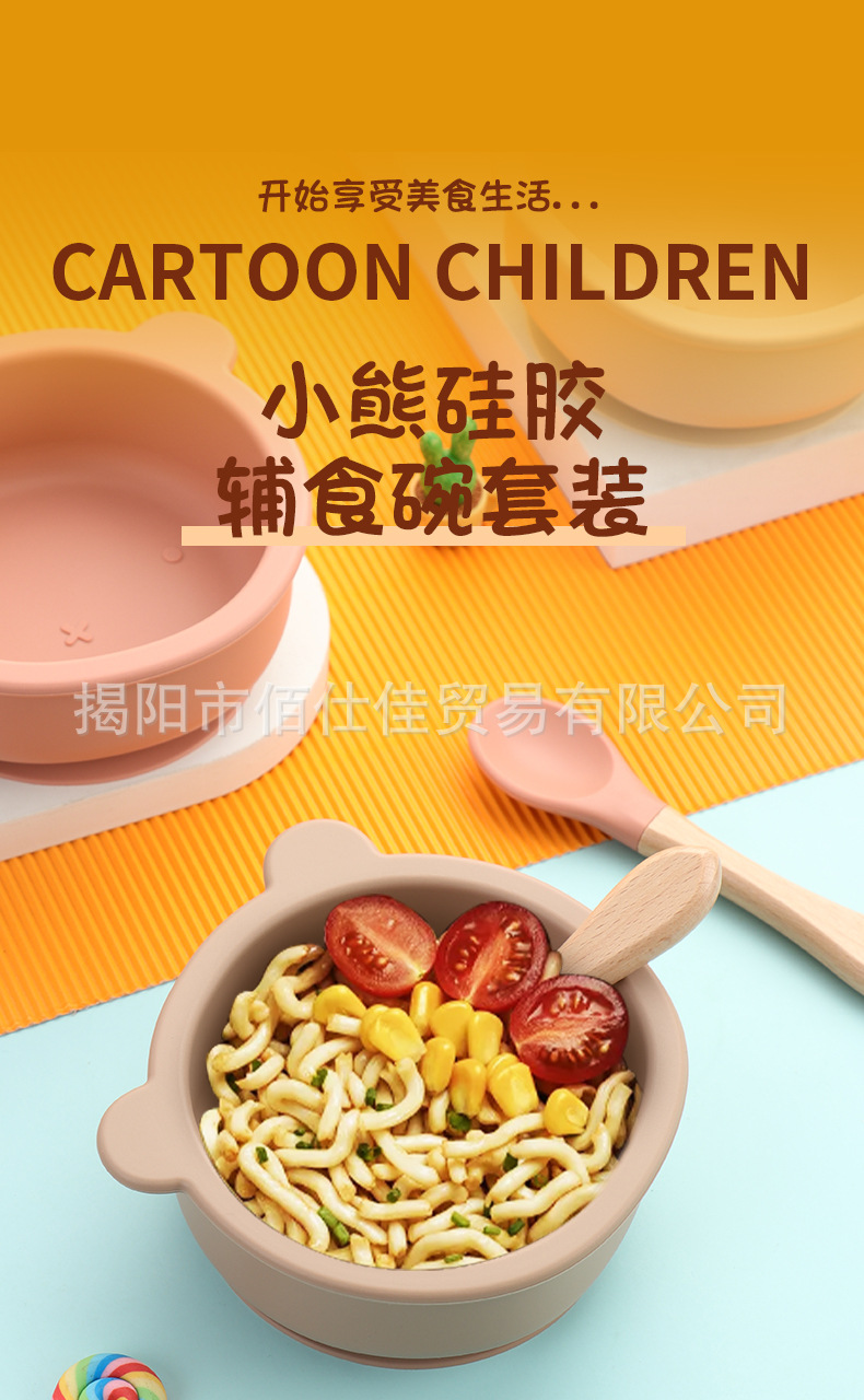 만화 곰돌이 실리콘 식기 세트 아기 이유식 포크 숟가락 식기 세트 식품 등급 엄마와 아기 용품 귀여운 수유 용품