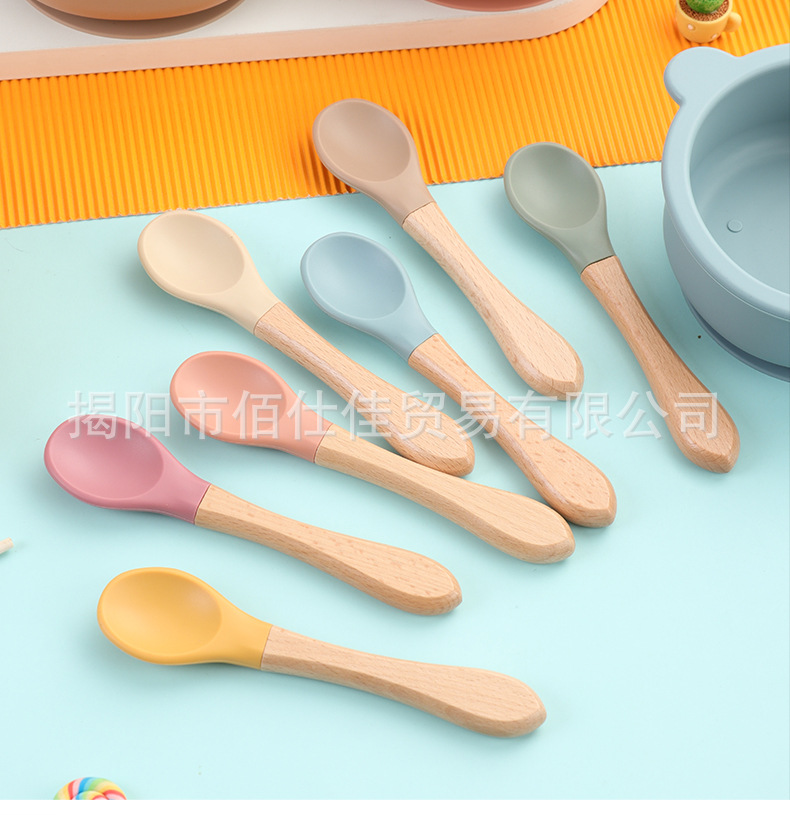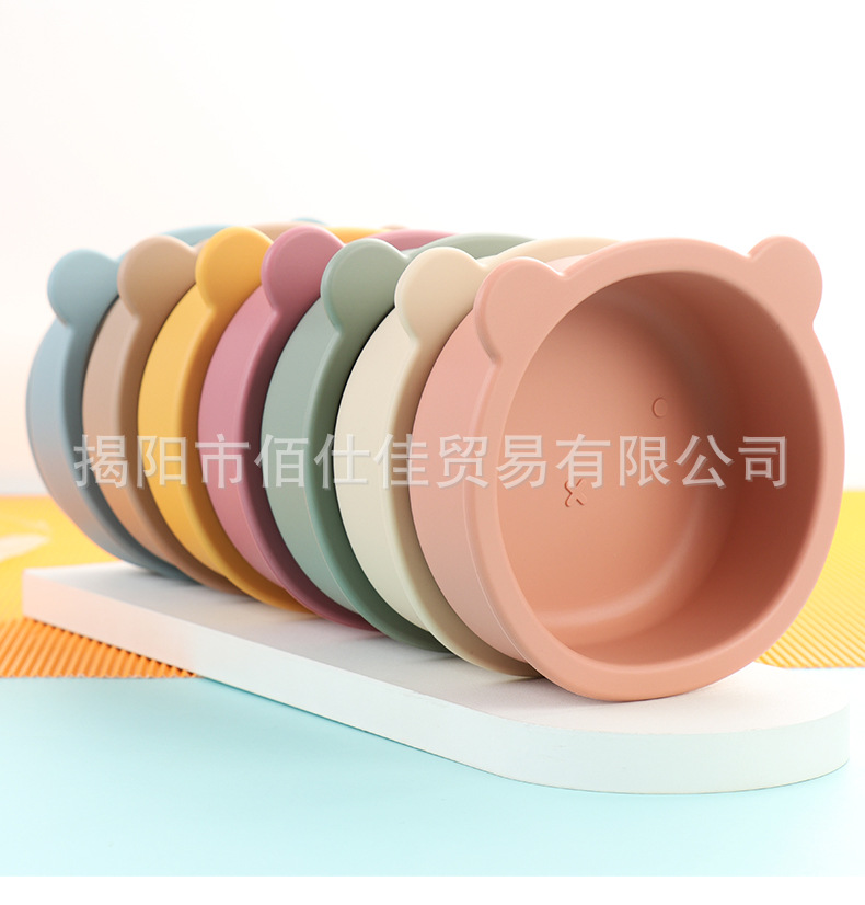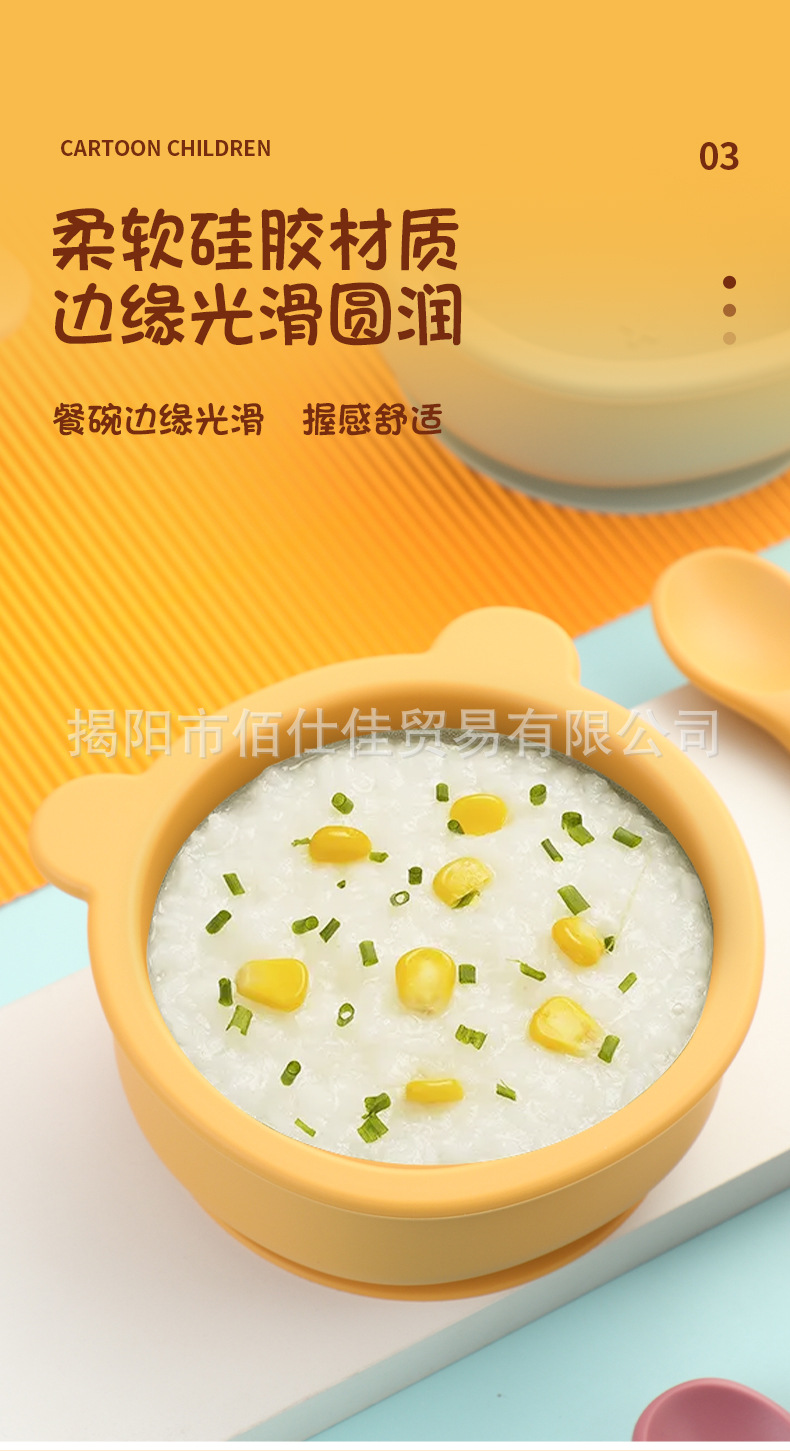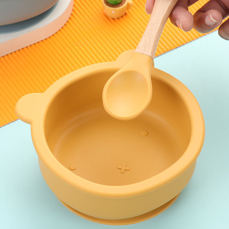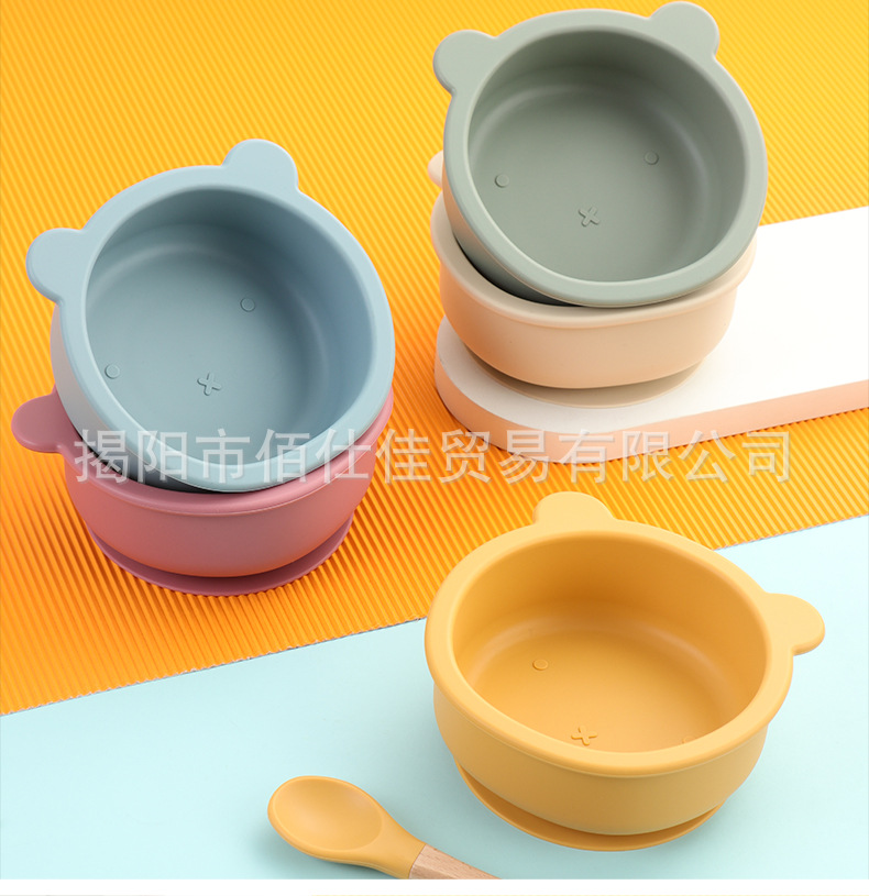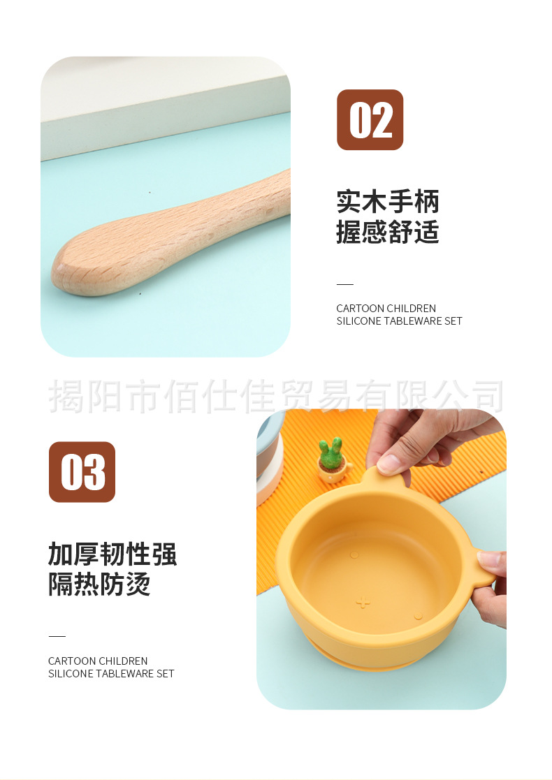 만화 곰돌이 실리콘 식기 세트 아기 이유식 포크 숟가락 식기 세트 식품 등급 엄마와 아기 용품 귀여운 수유 용품