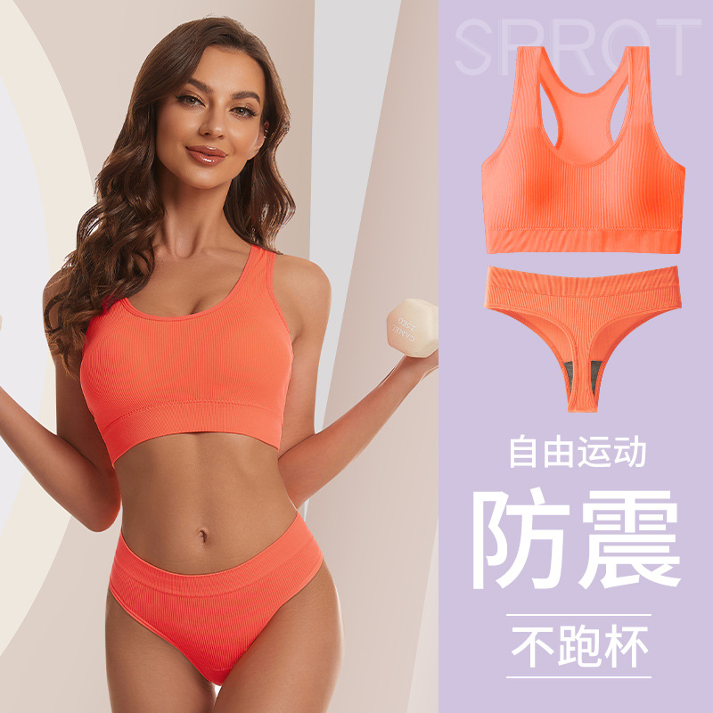 원활한 브래지어 세트 여자의 충격 방지 아니 강철 반지 섹시한 스포츠 수집 아름다움 조끼 통기성 요가 속옷 끈 팬티