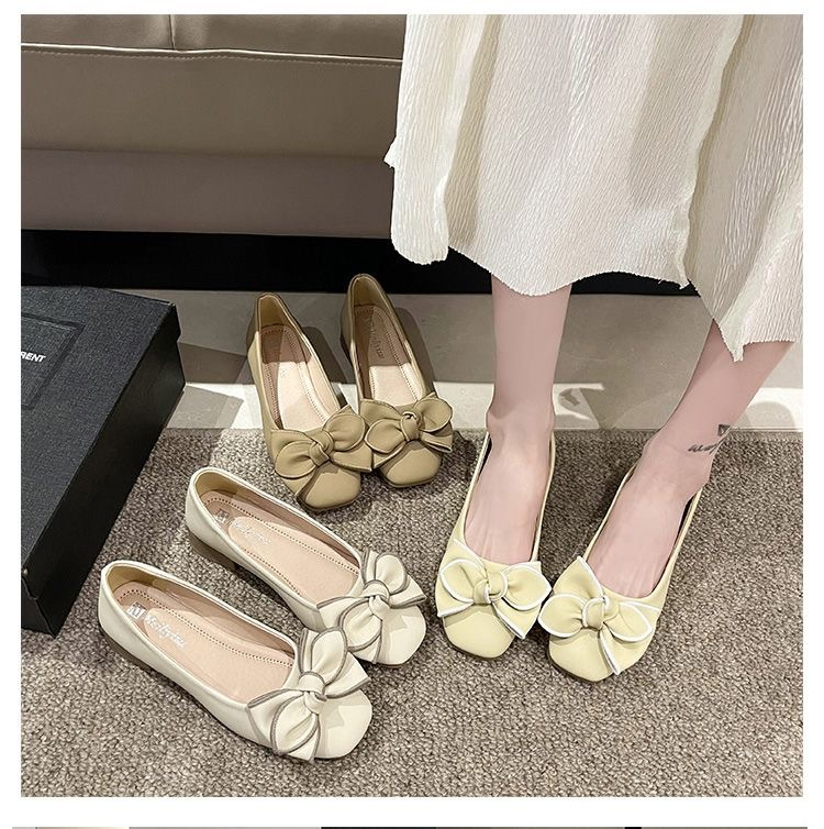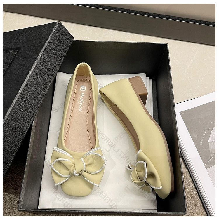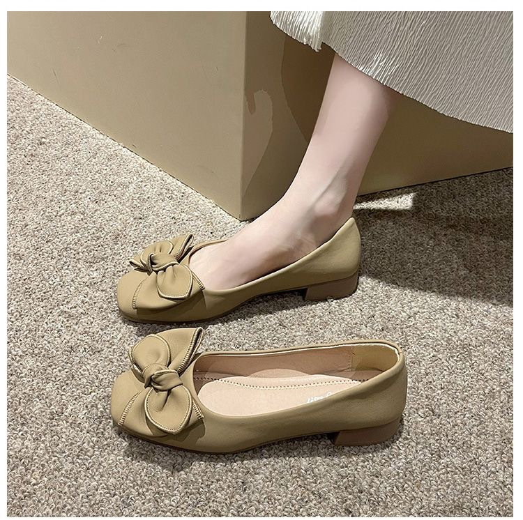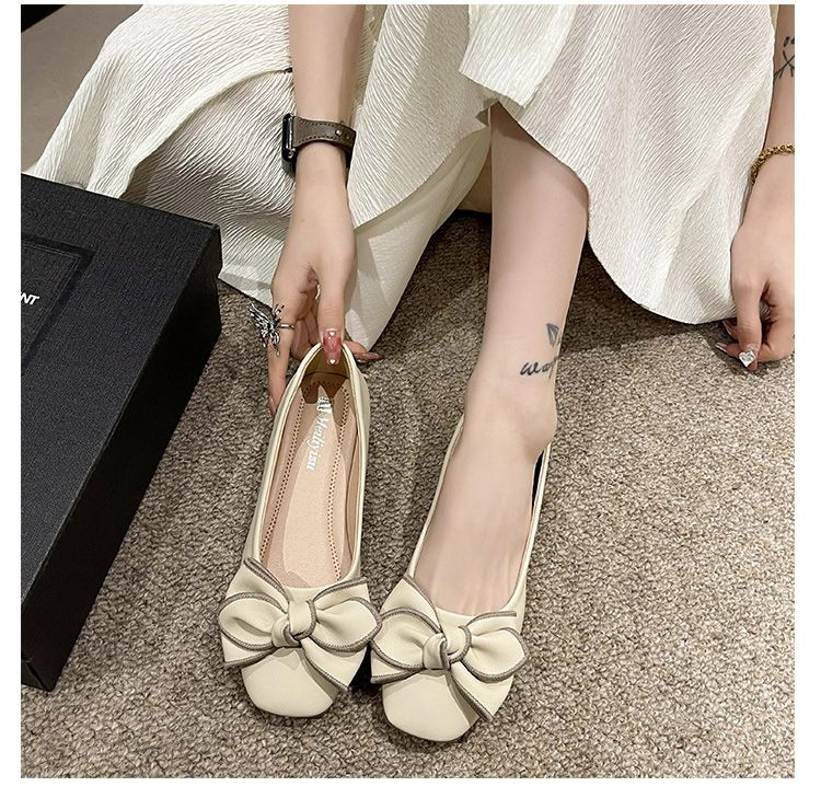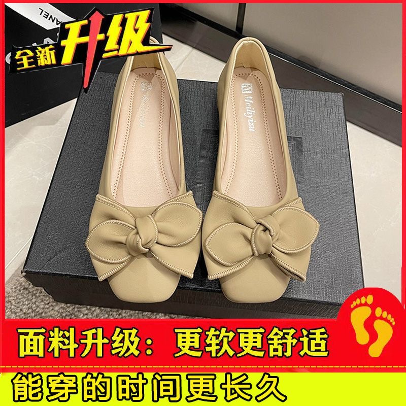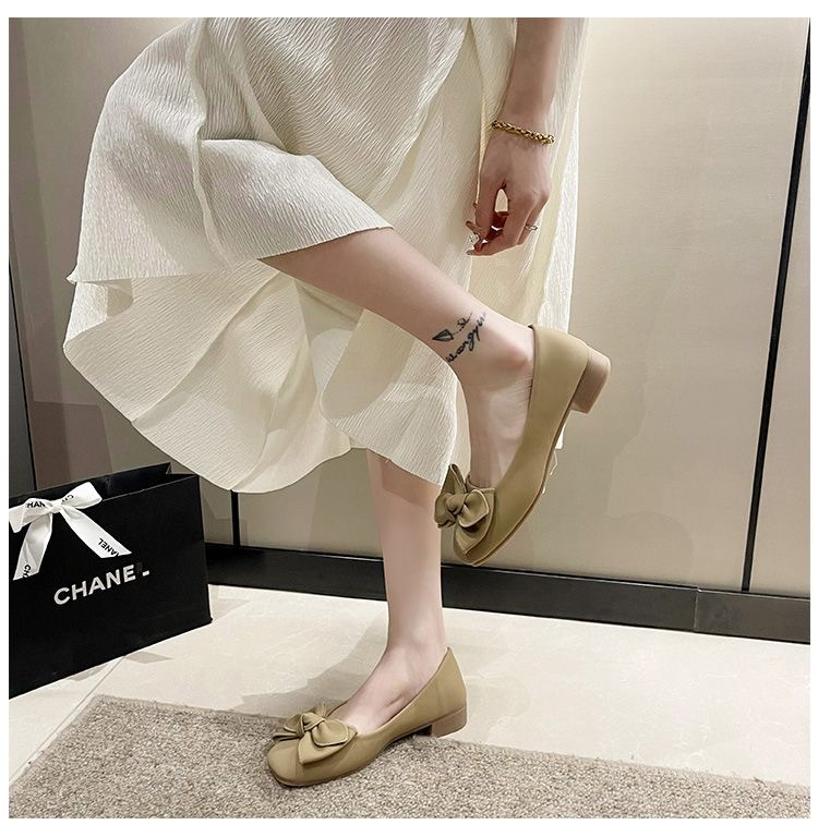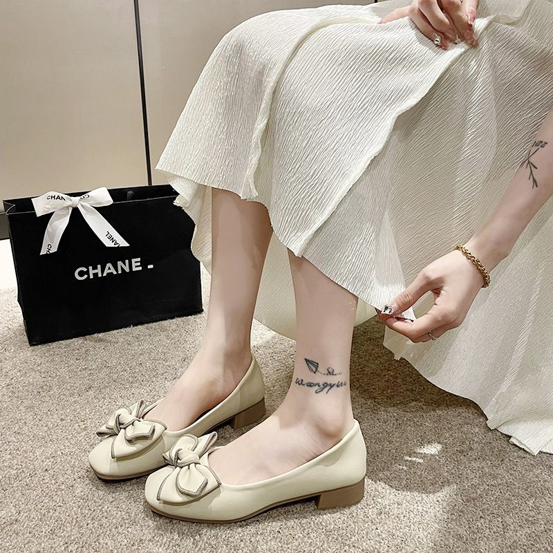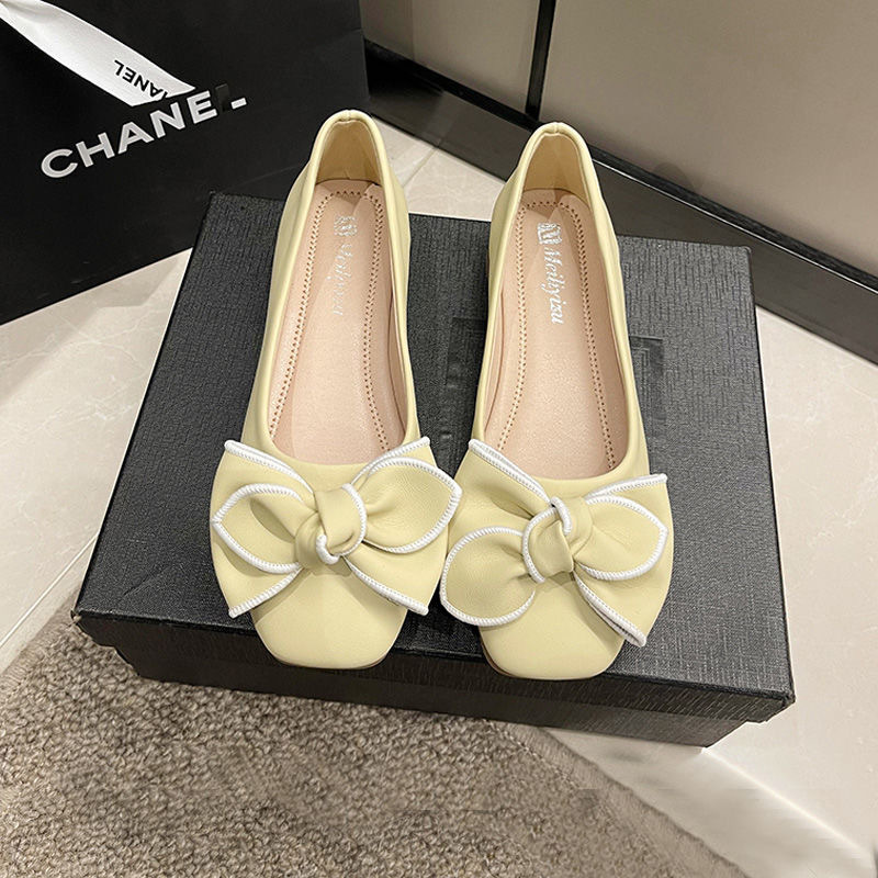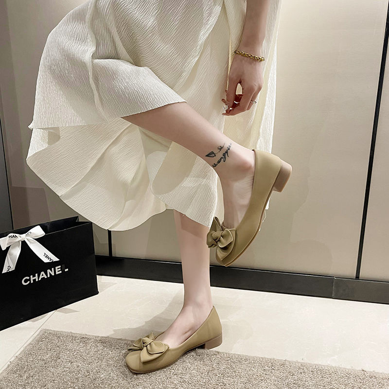 부드러운 스타일 보우 콩 신발 여성용 스커트 봄과 가을 새로운 부드러운 바닥 얕은 입 플랫 작업 신발
