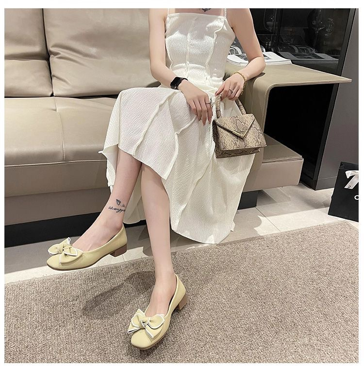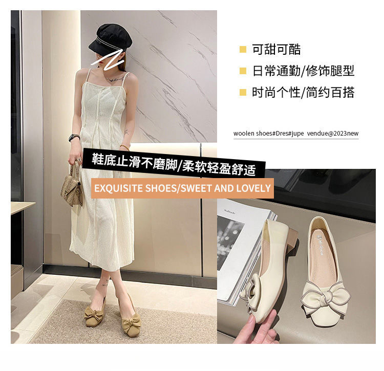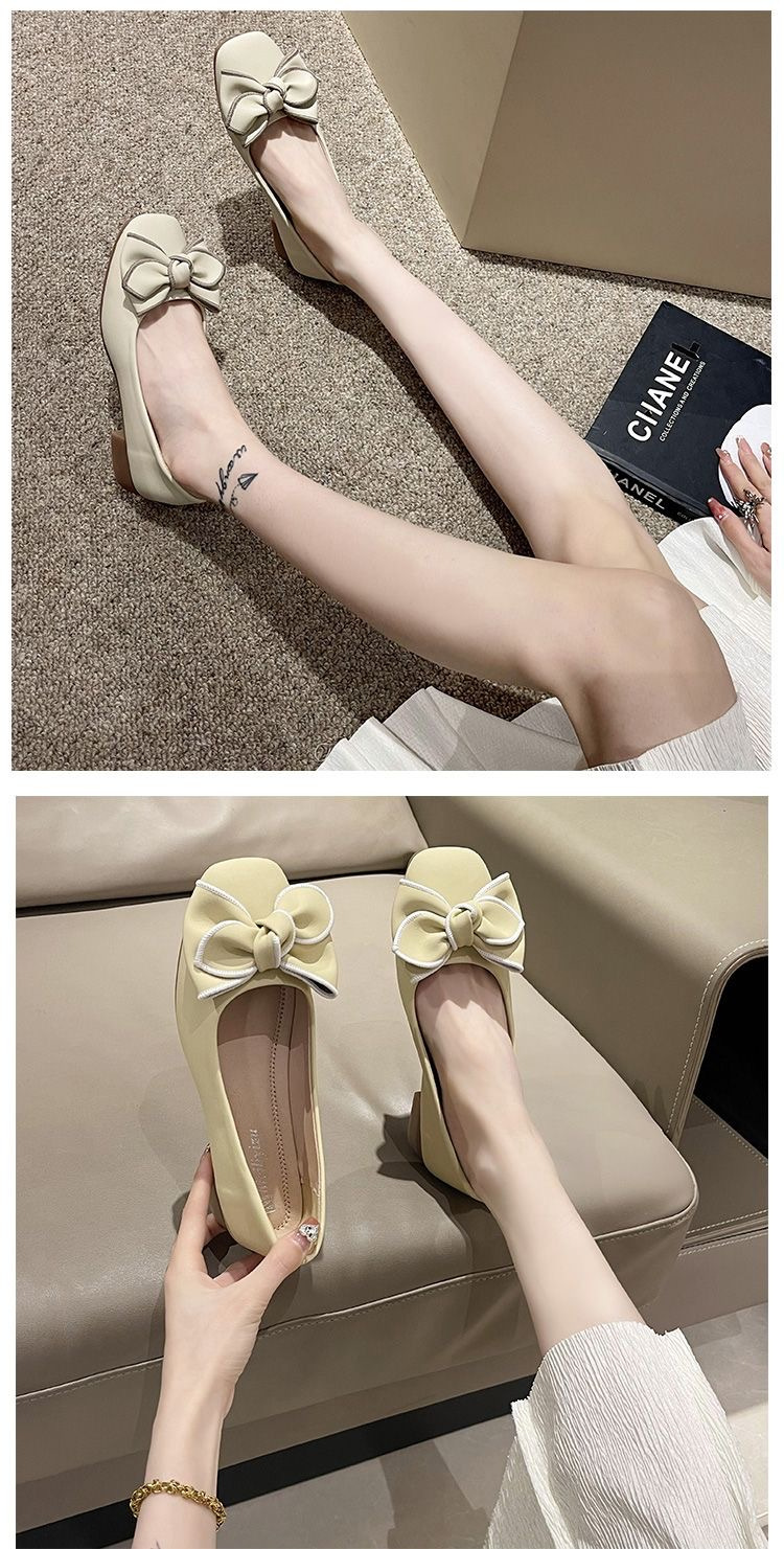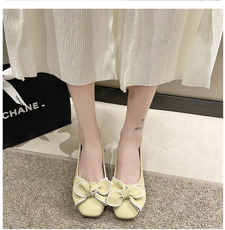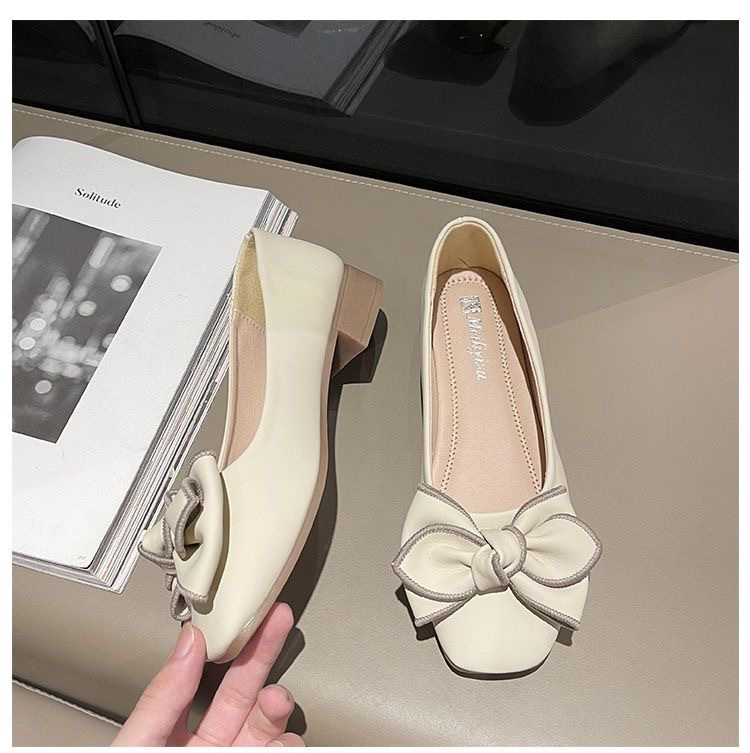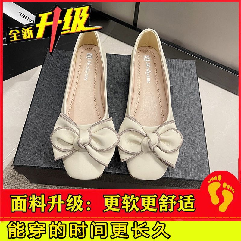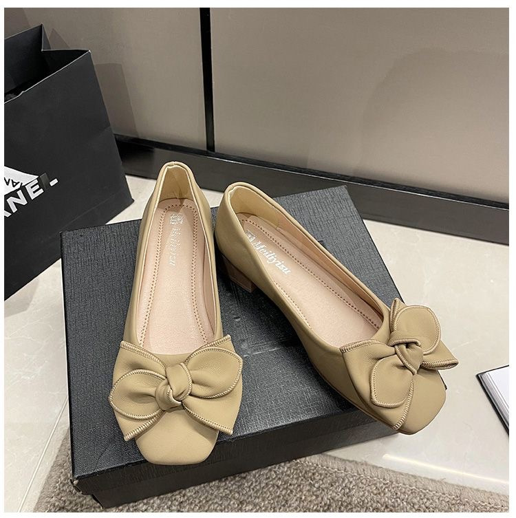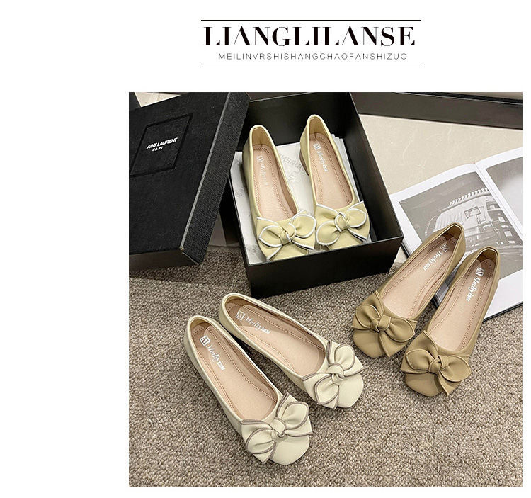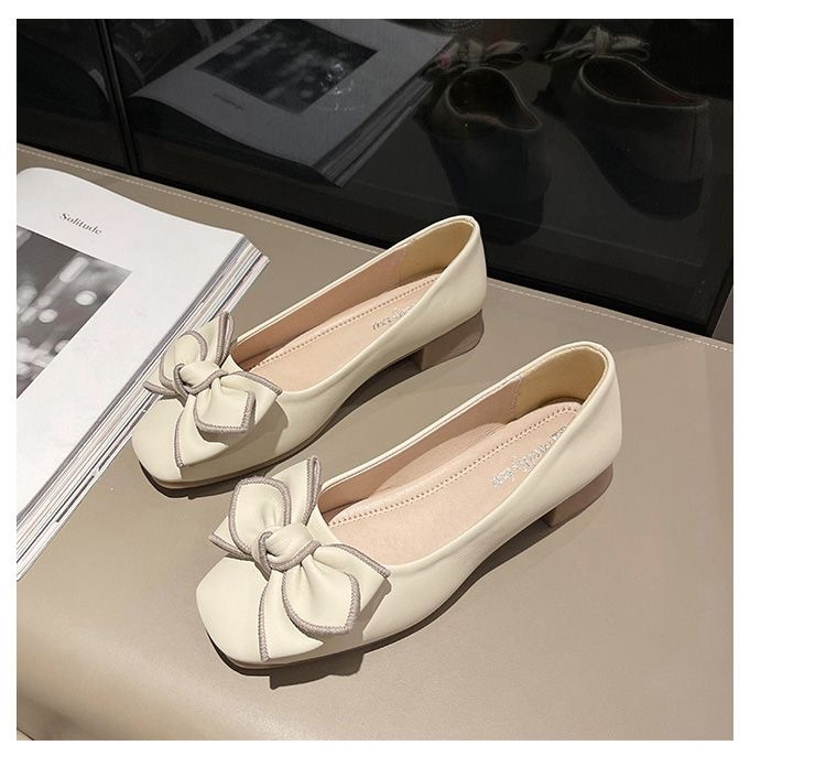 부드러운 스타일 보우 콩 신발 여성용 스커트 봄과 가을 새로운 부드러운 바닥 얕은 입 플랫 작업 신발