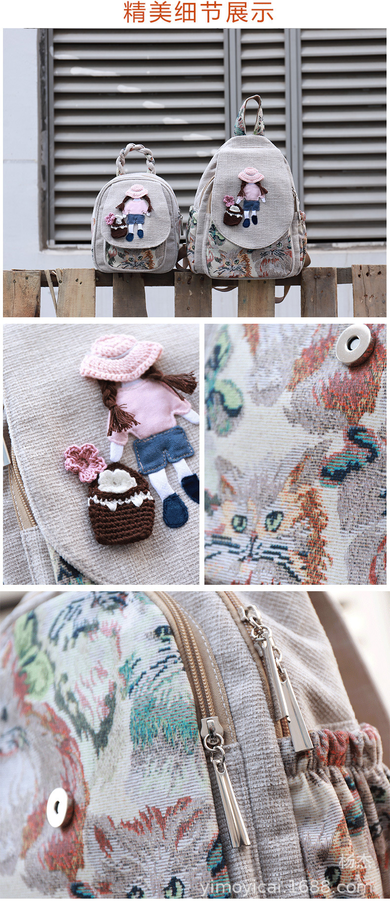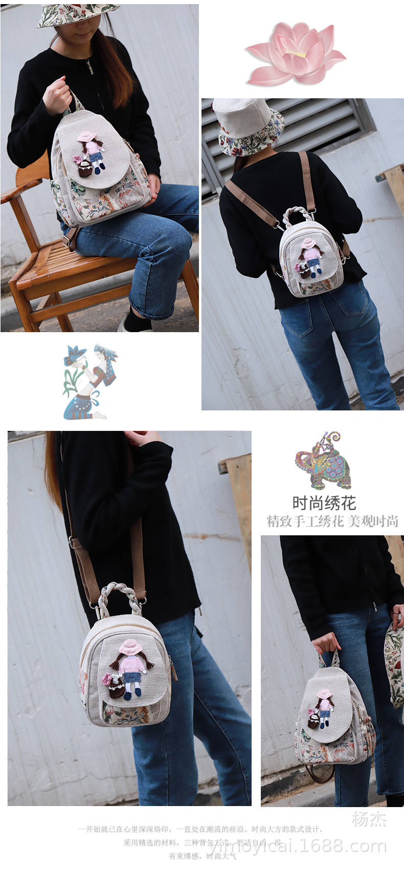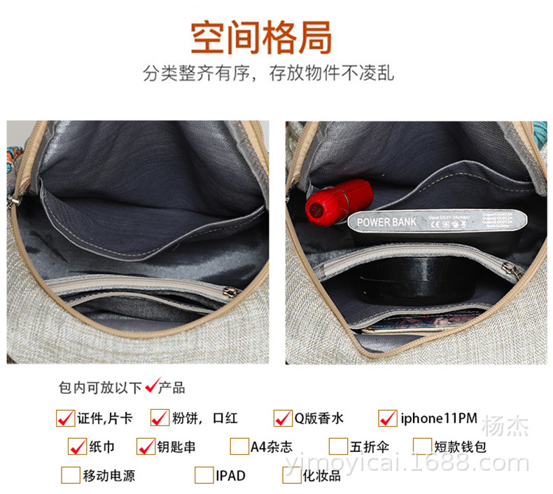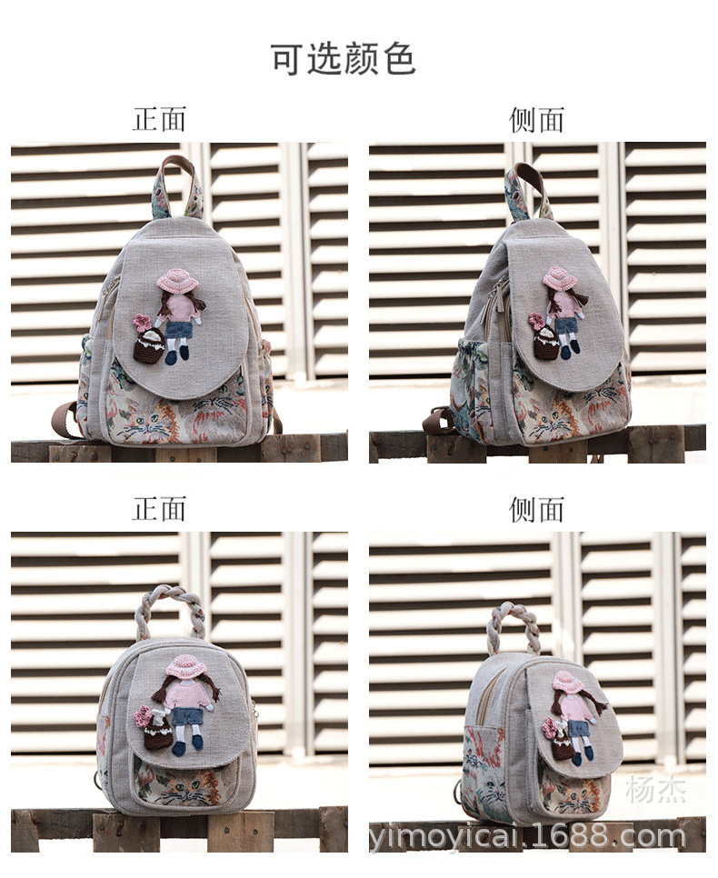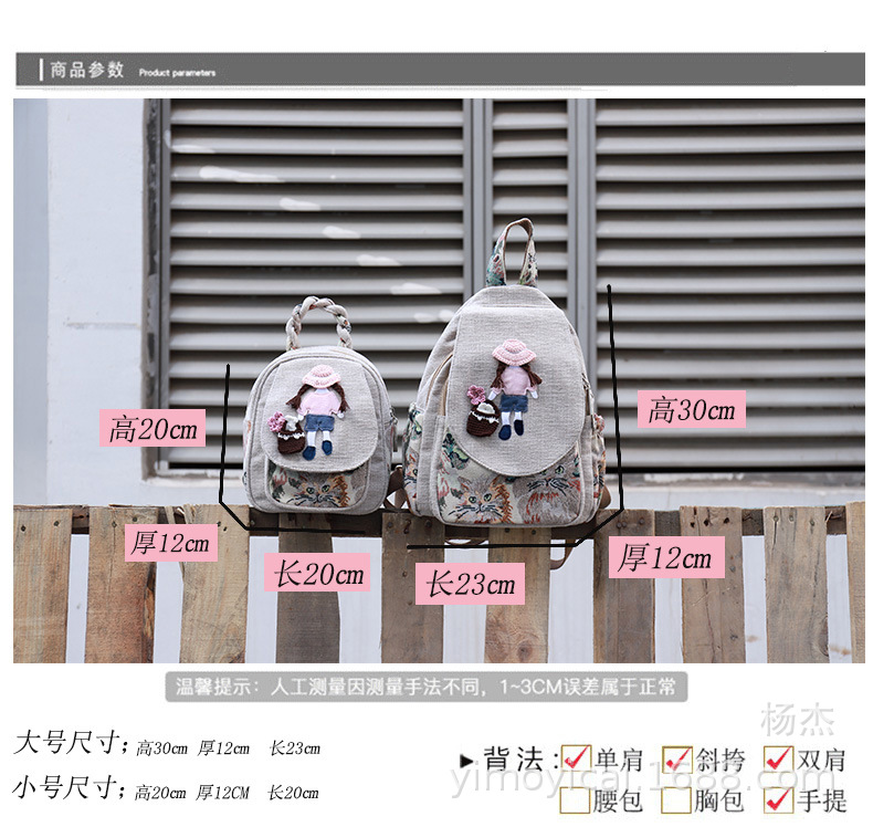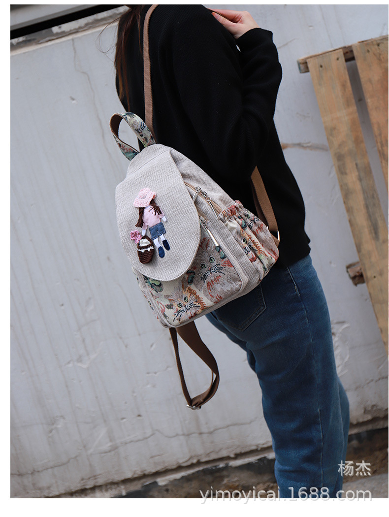 예술적 캔버스 더블 레이어 작은 배낭 캐주얼 작은 신선한 Hanfu 여성 배낭 편리한 매일 나가는 배낭