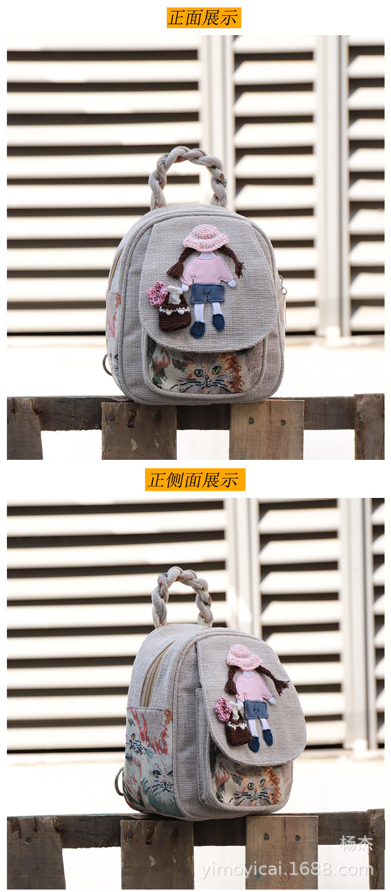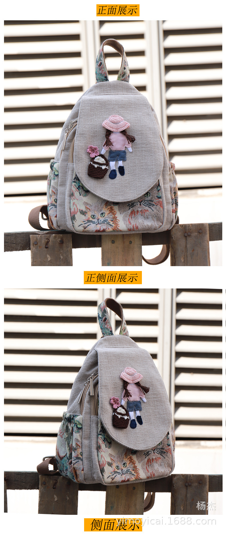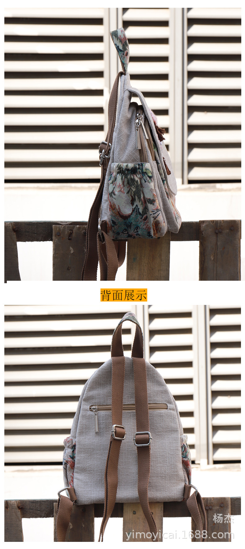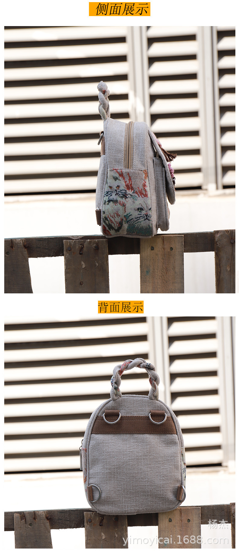 예술적 캔버스 더블 레이어 작은 배낭 캐주얼 작은 신선한 Hanfu 여성 배낭 편리한 매일 나가는 배낭