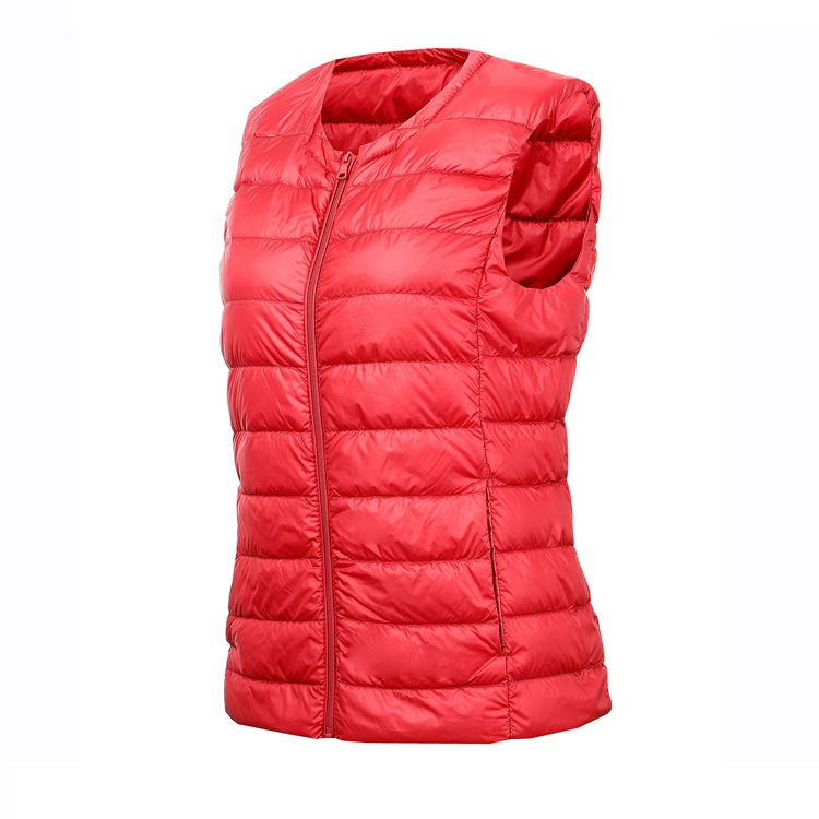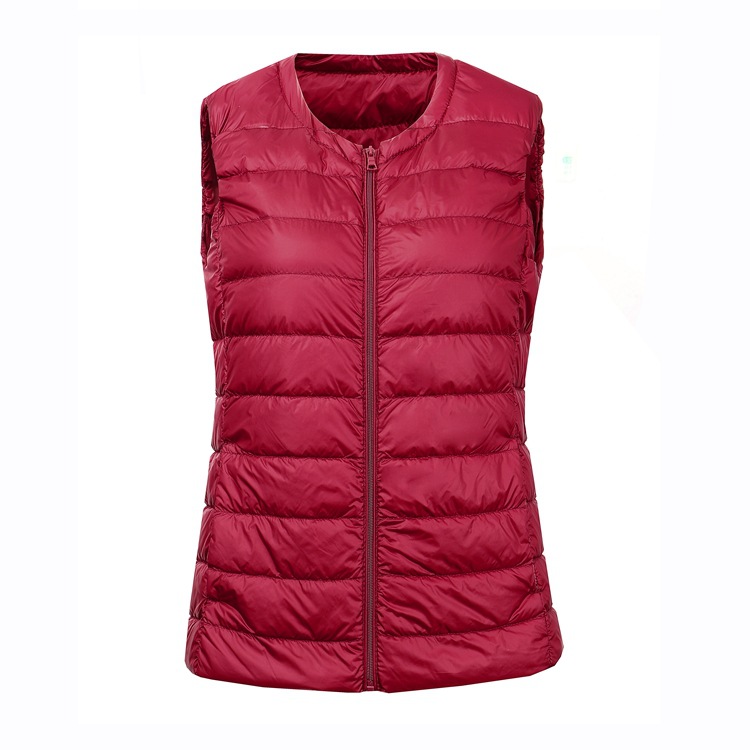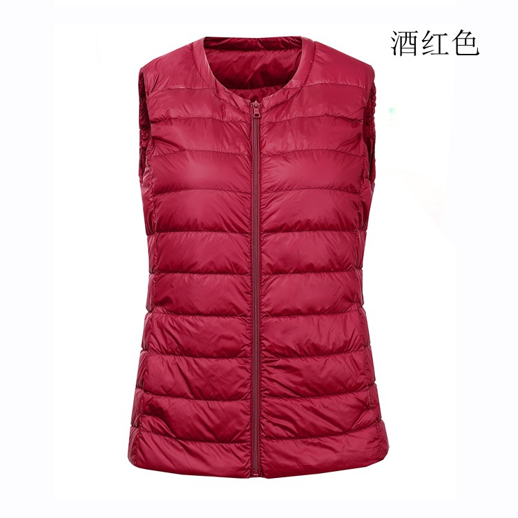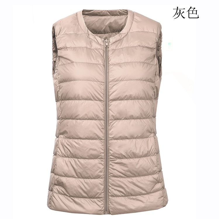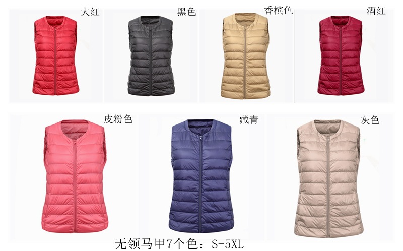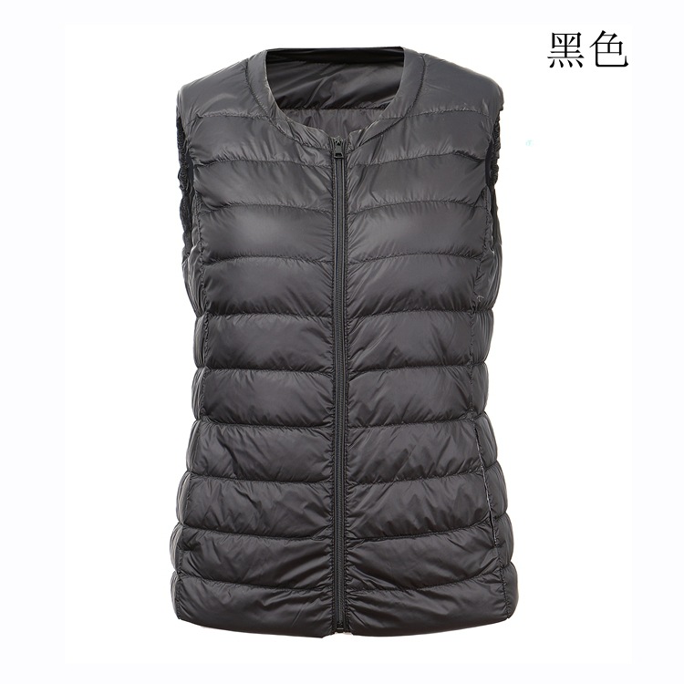 크루넥 다운 조끼 여자의 가을과 겨울 새로운 지퍼 플러스 비료 초대형 조끼 화이트 오리 다운 가벼운 플러스 사이즈 짧은 조끼