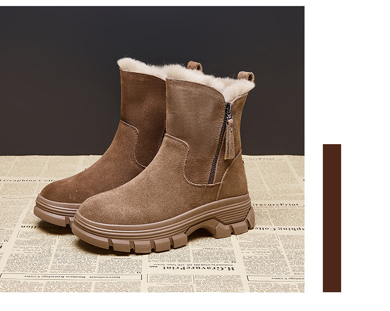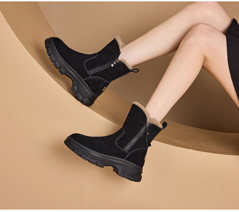 여성용 스노우 부츠 2026년 신상 겨울 두꺼운 면 보온 숏부츠 캐주얼 플러스 벨벳 아웃도어 면 부츠 천연 가죽 하이탑 여성화
