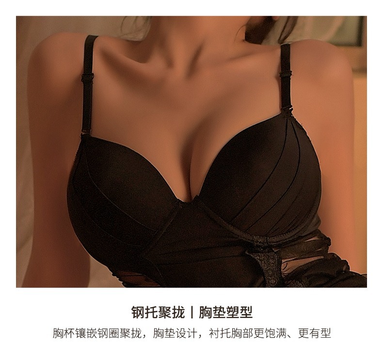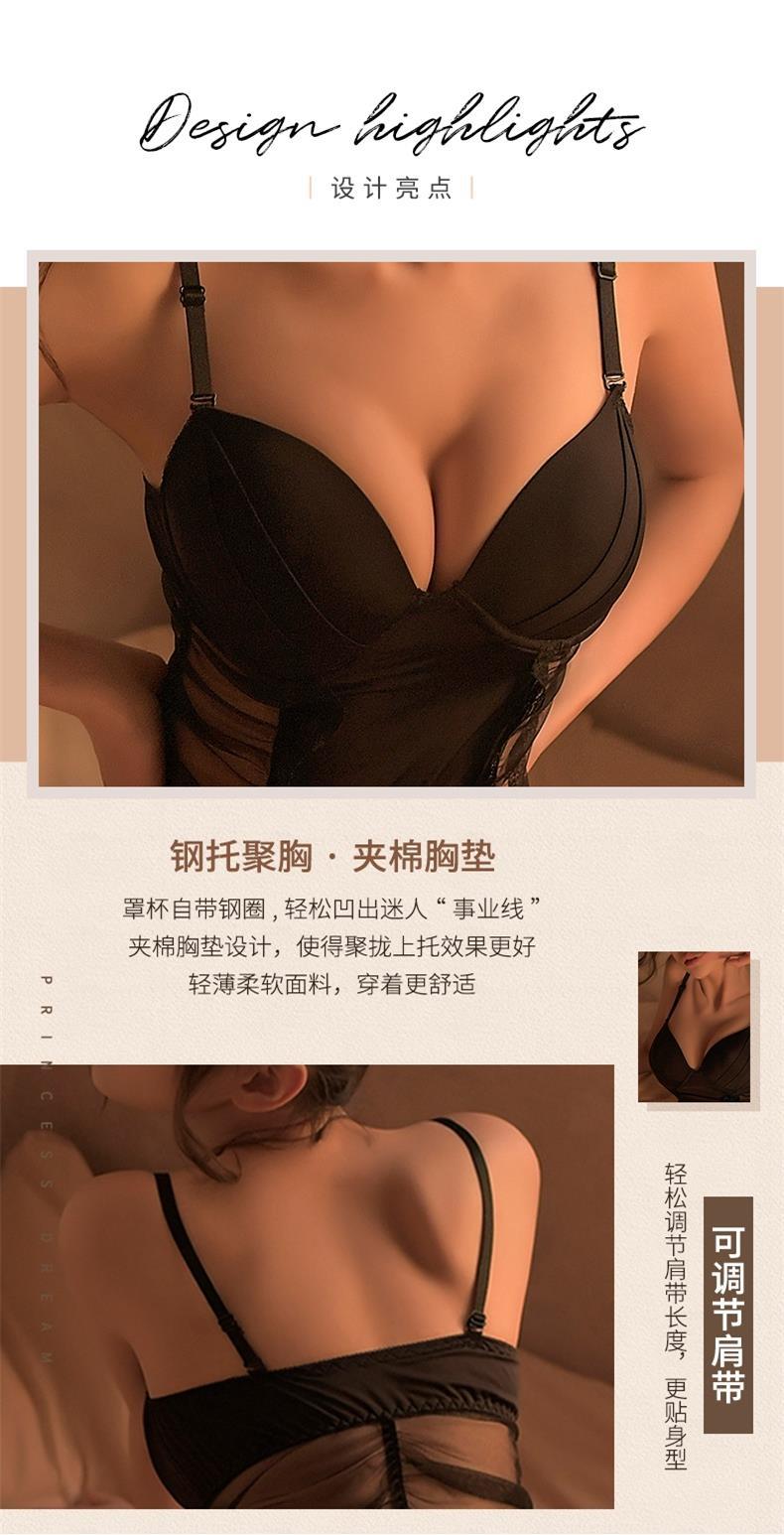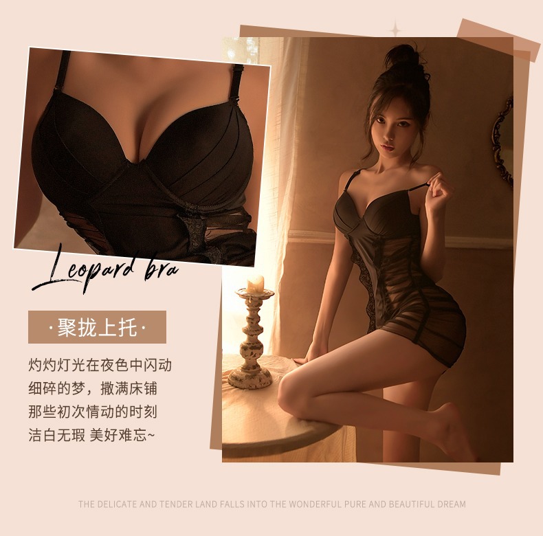 가슴 패드 + 오픈 기어 스타킹이있는 검은 모은 엉덩이 치마