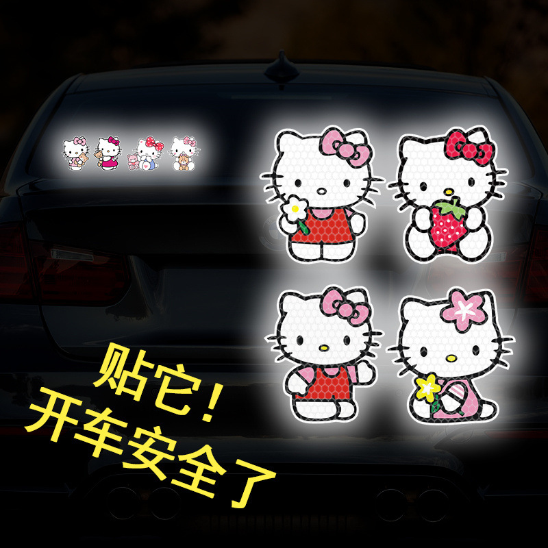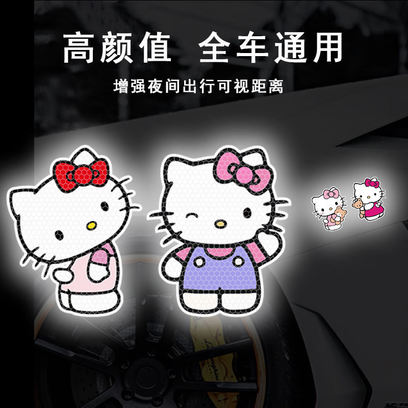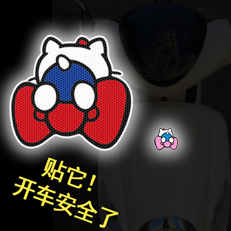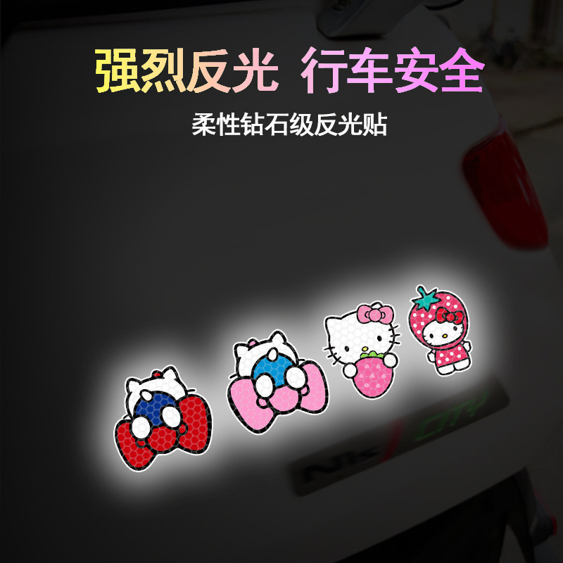 만화 반사 스티커 KT 고양이 귀여운 반사 자동차 스티커 전기 자동차 오토바이 몸 장식 자동차 헬멧 경고 스티커