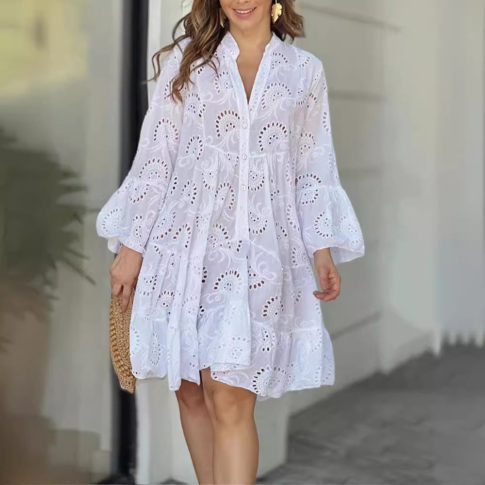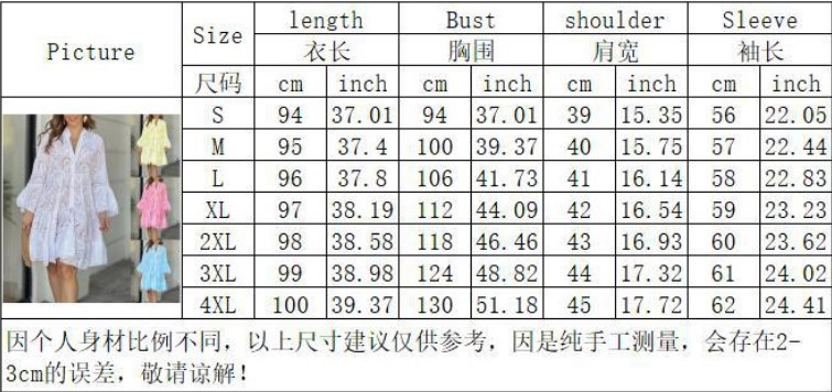 2026 유럽 및 미국 해외배송 여름 가을 아마존 솔리드 컬러 V넥 루즈핏 자수 레이스 플라워 순면 원피스