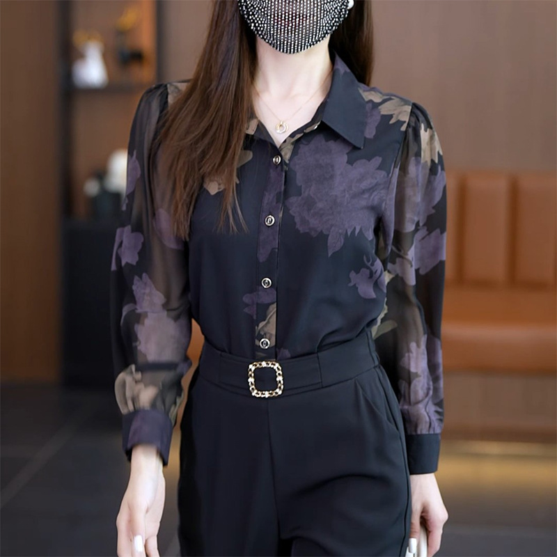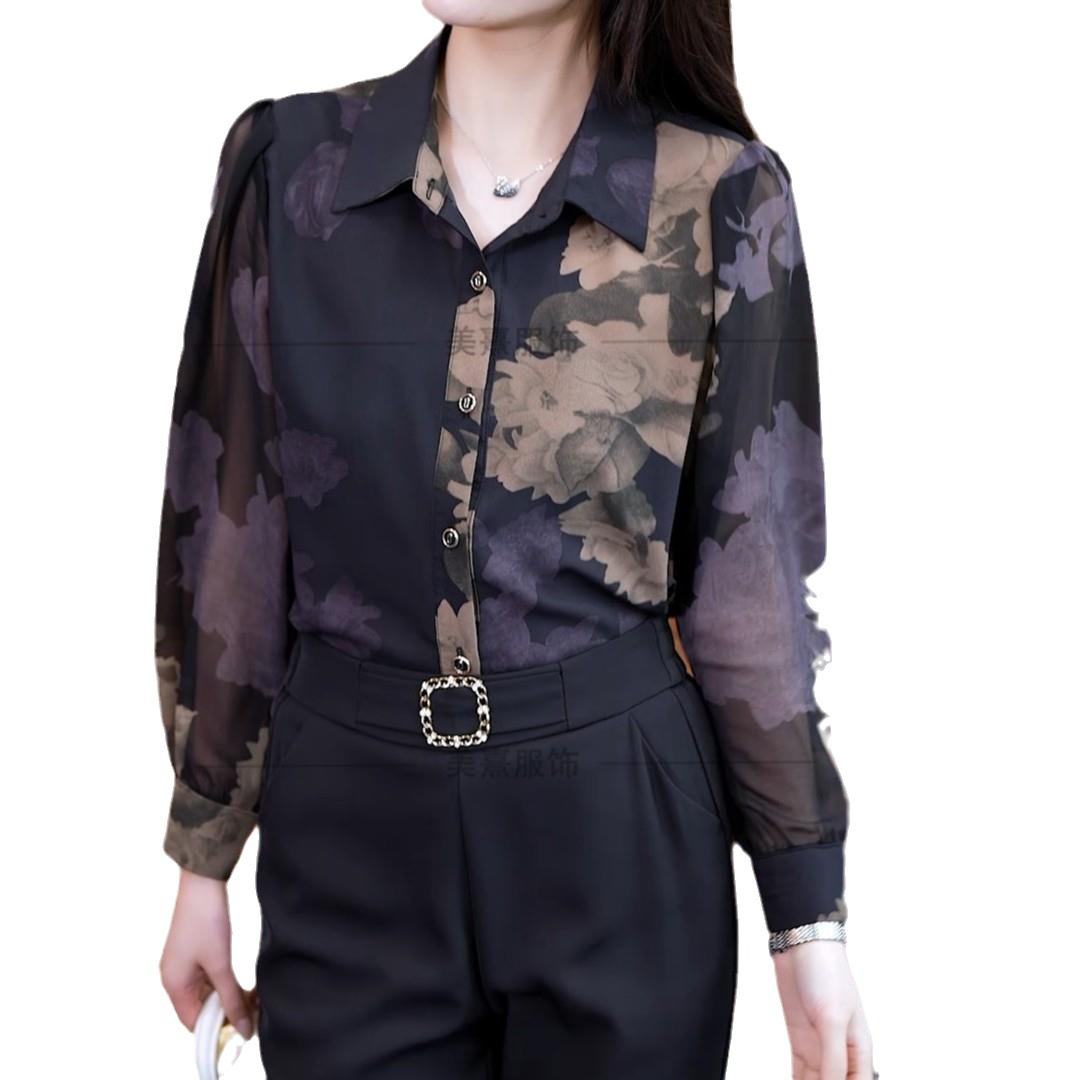 키 작은 여성을 위한 패셔너블한 쉬폰 셔츠, 프린트 블라우스, 2026 봄 여름 신상 긴팔 셔츠, 스타일리시한 상의