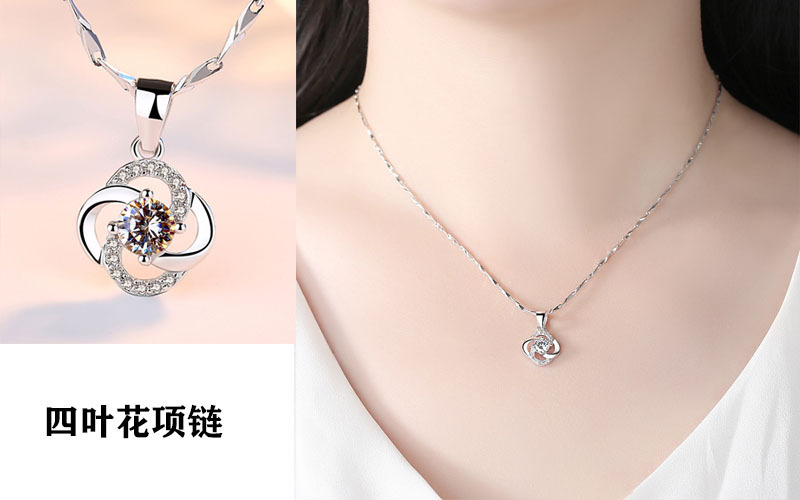 크로스 보더 지르콘 펜던트 라이브 도매 목걸이 여성 네 잎 클로버 사랑 쇄골 체인 고급 다목적 마이크로 상감 보석
