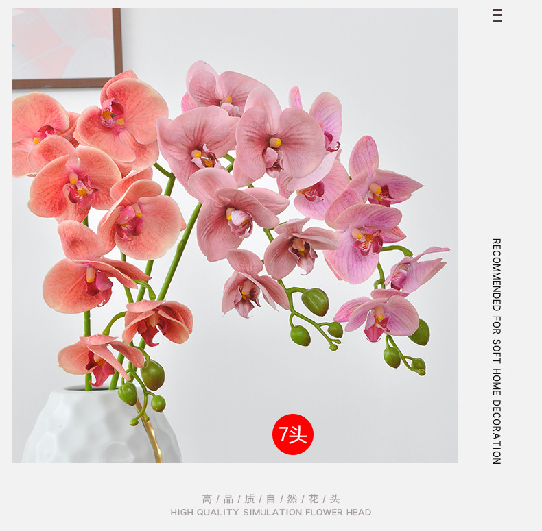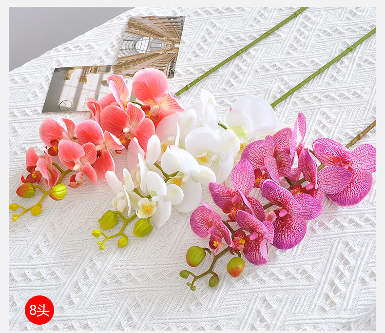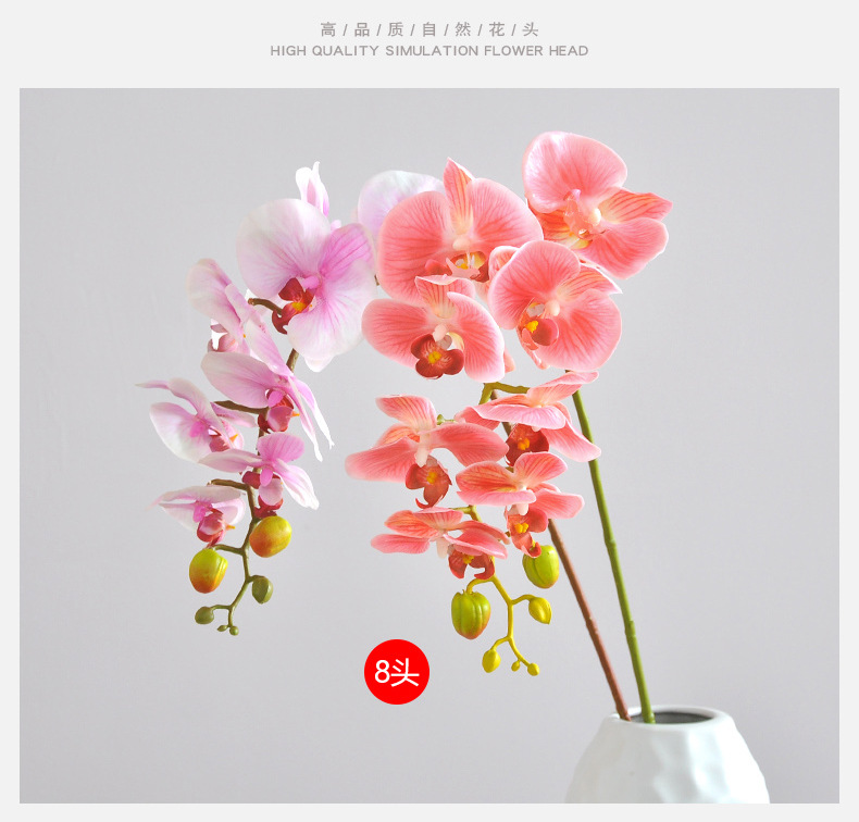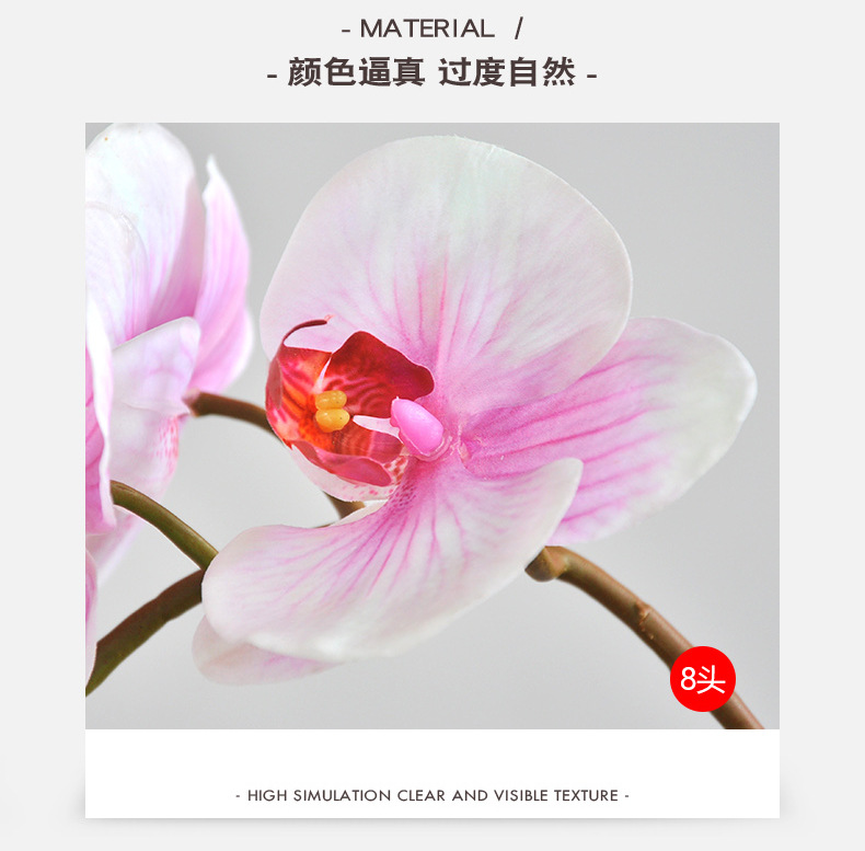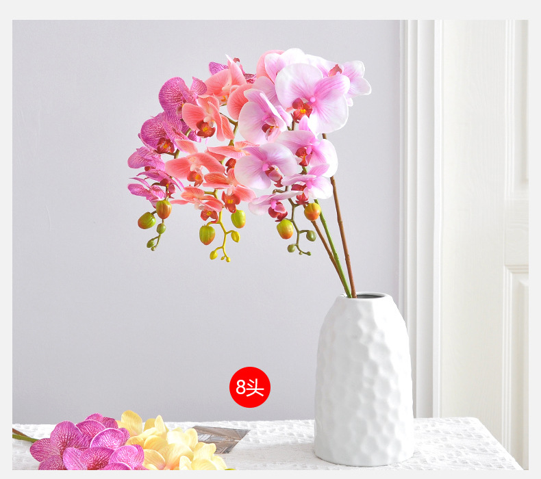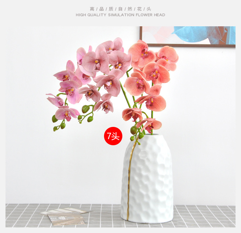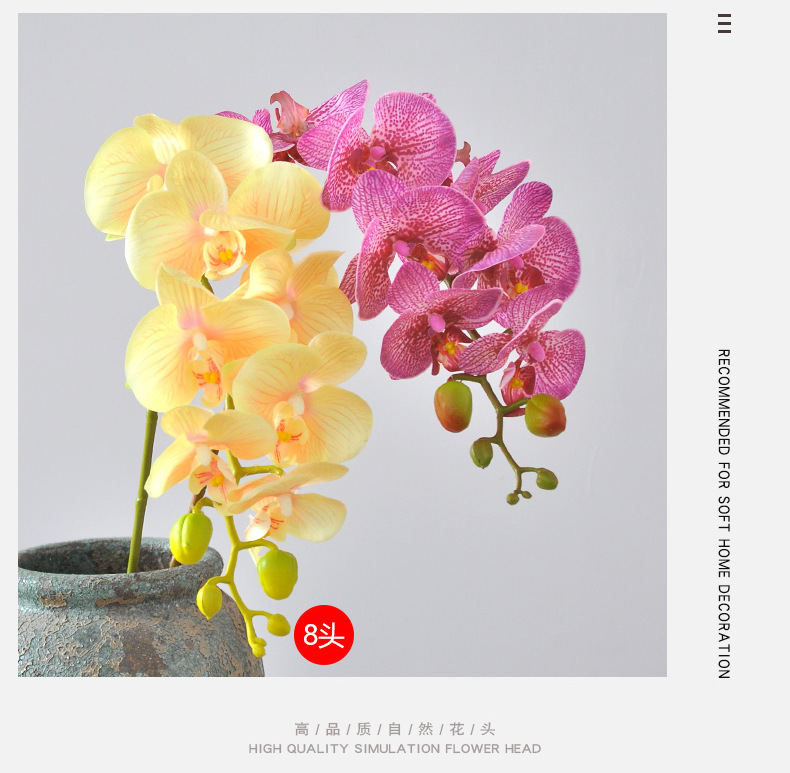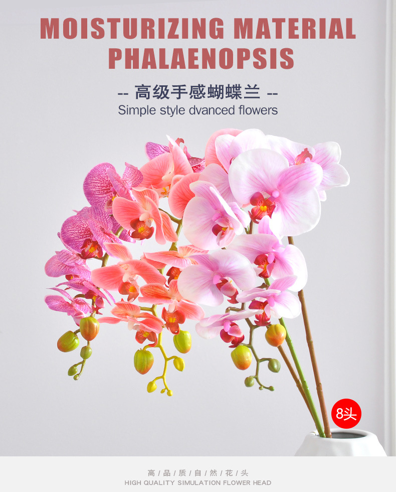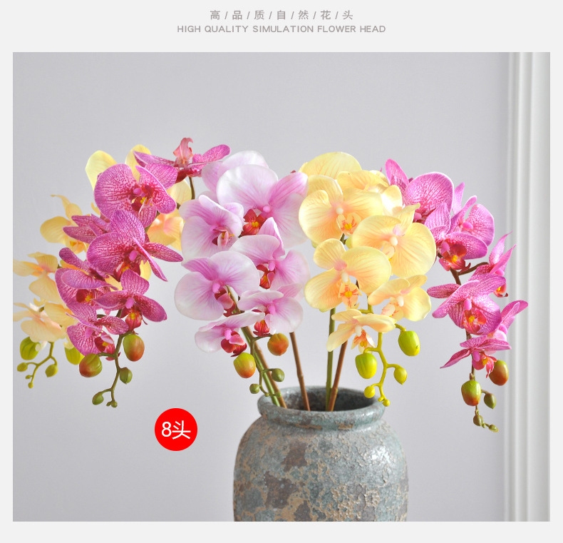 호접란 인공 꽃 8 헤드 느낌 보습 유럽 필름 난초 가정 거실 장식 7 헤드 호접란 가짜 꽃