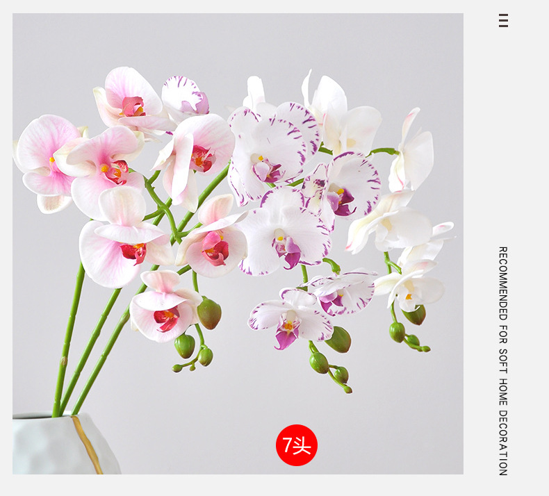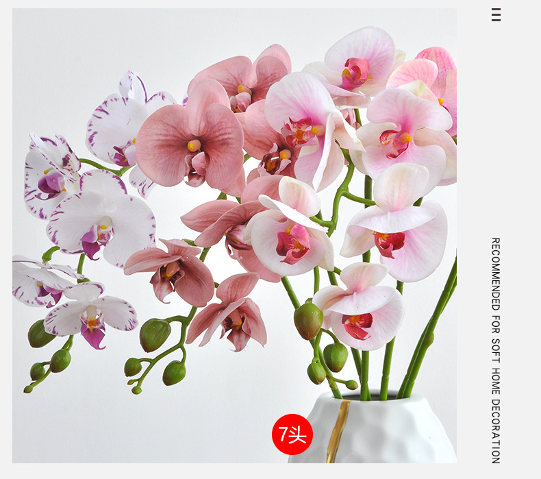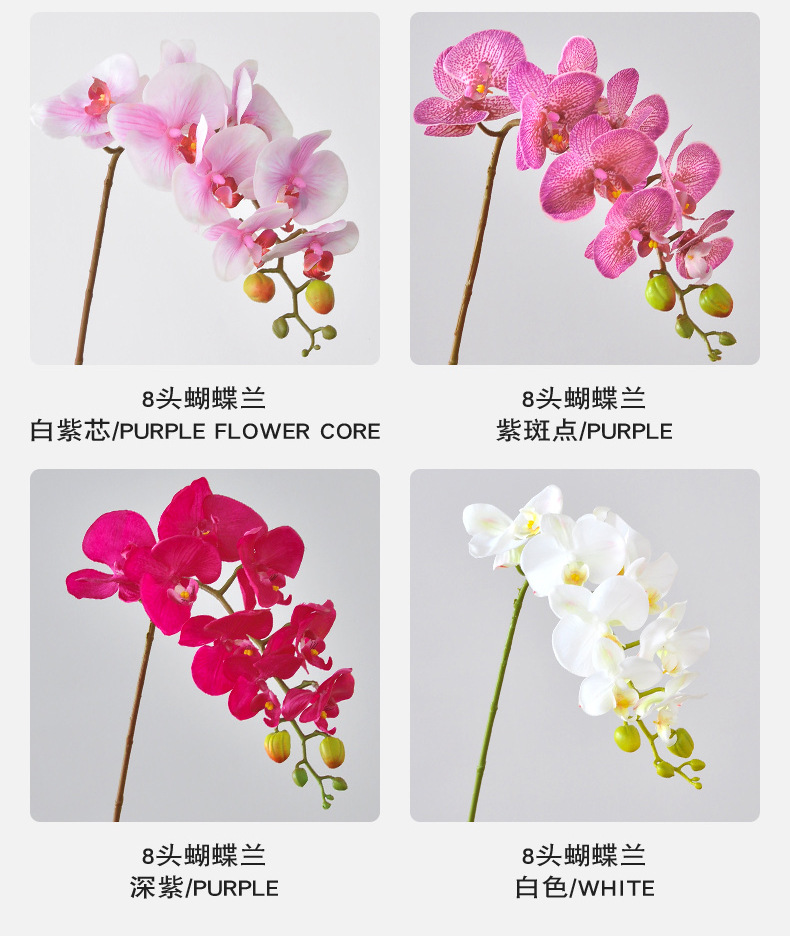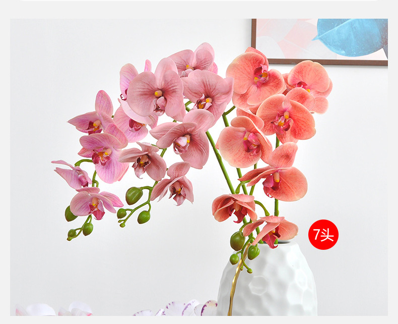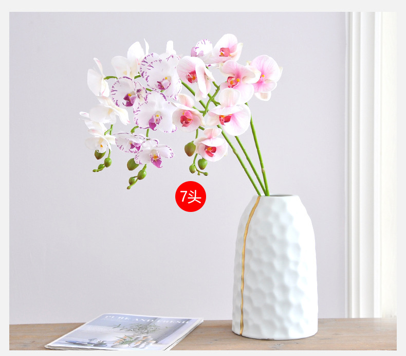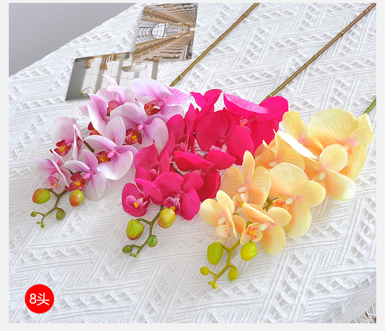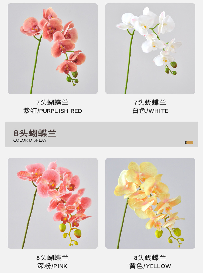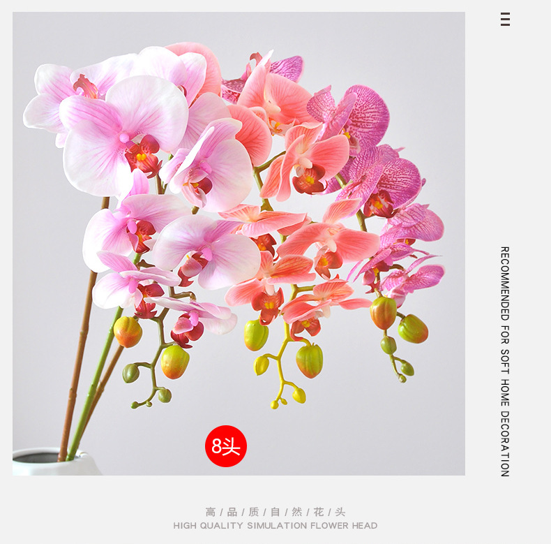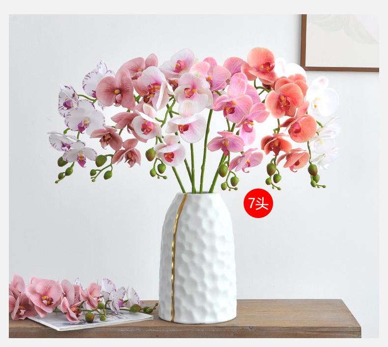 호접란 인공 꽃 8 헤드 느낌 보습 유럽 필름 난초 가정 거실 장식 7 헤드 호접란 가짜 꽃