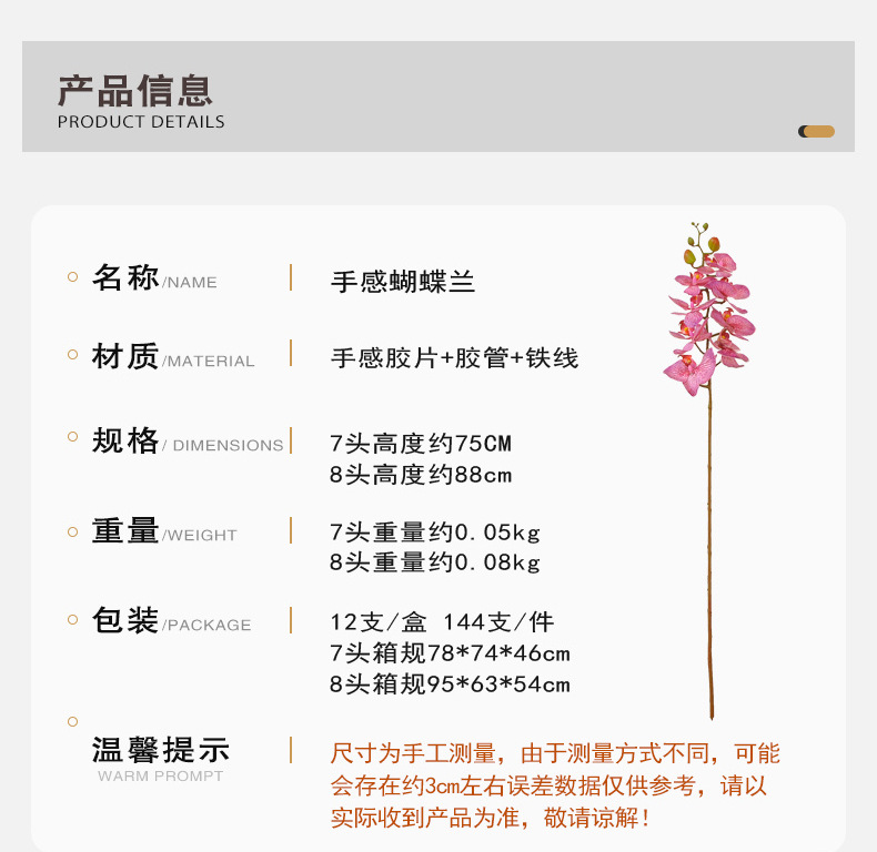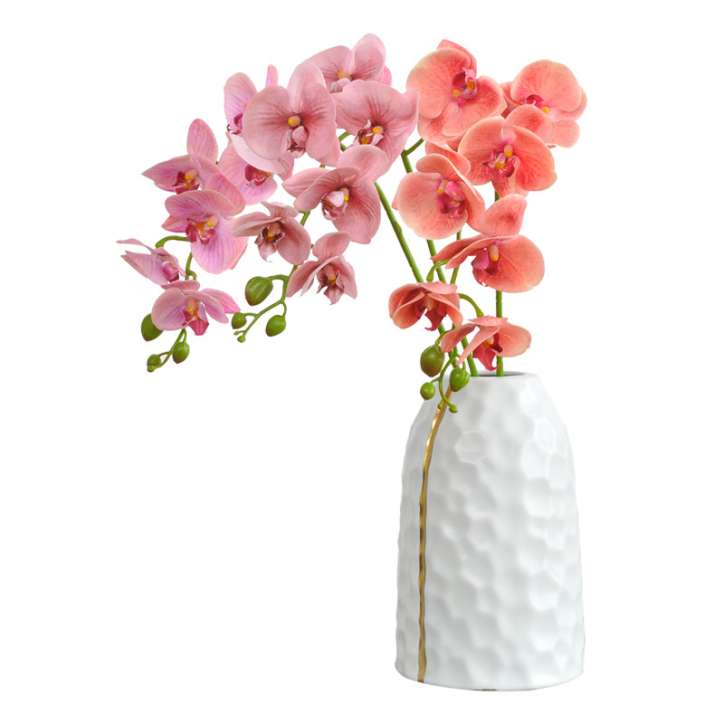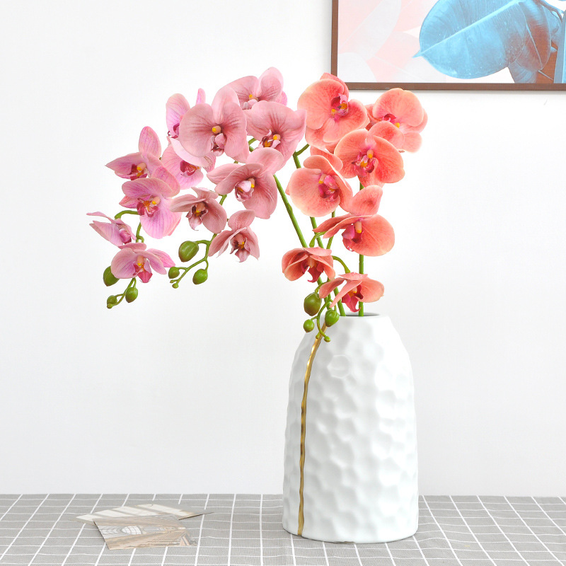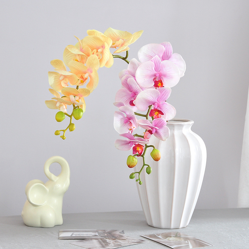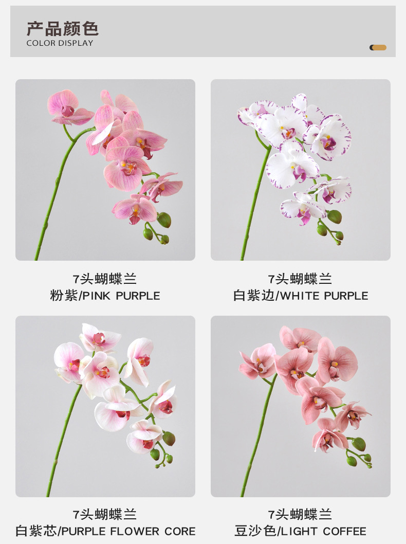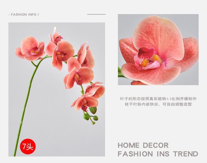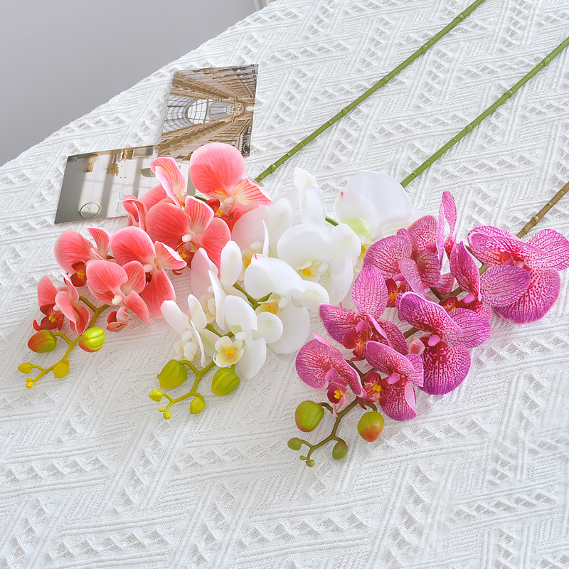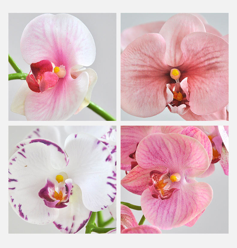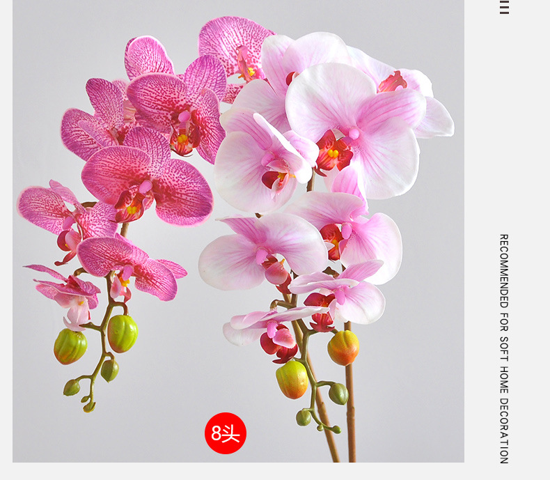 호접란 인공 꽃 8 헤드 느낌 보습 유럽 필름 난초 가정 거실 장식 7 헤드 호접란 가짜 꽃
