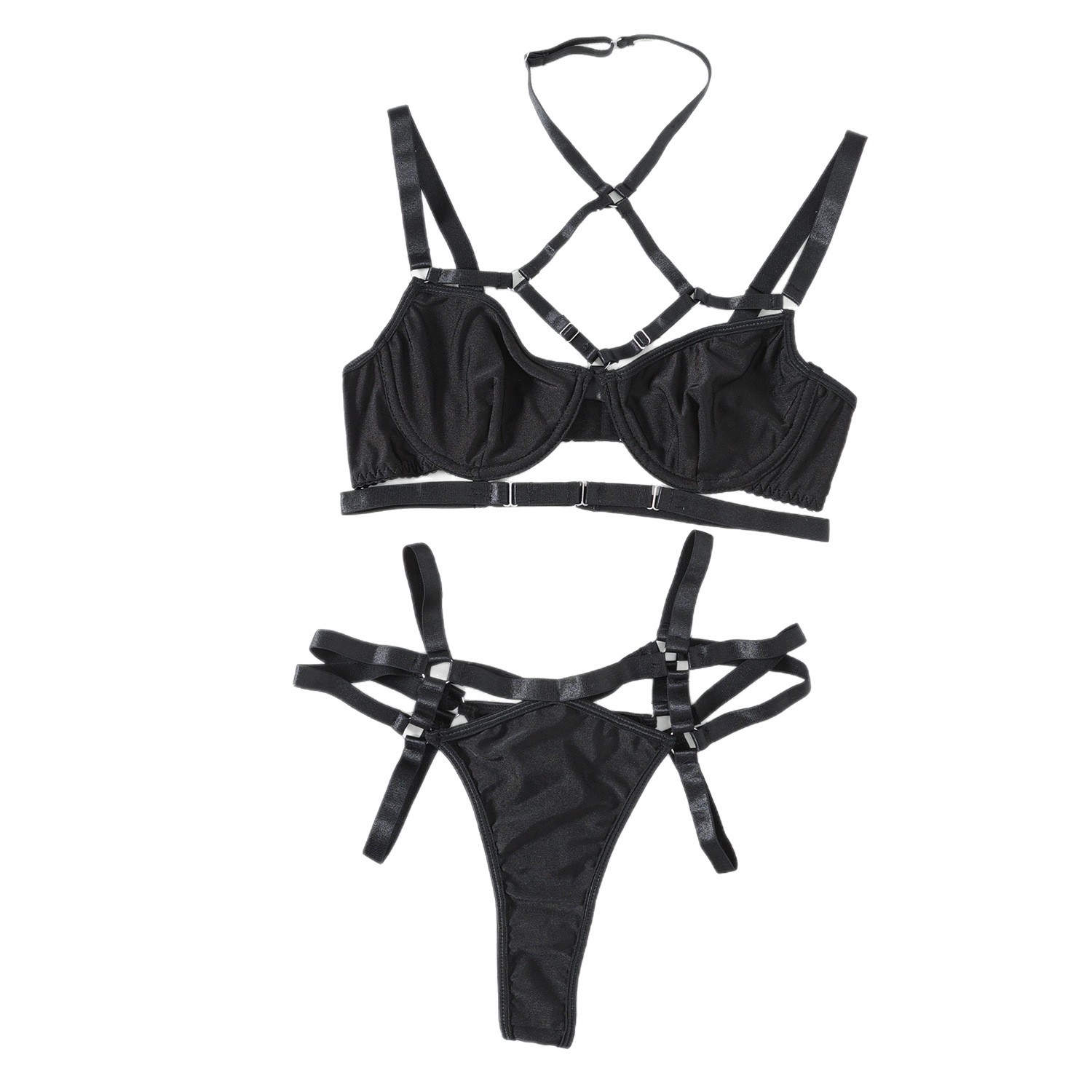 유럽과 미국의 섹시한 란제리 나이트 클럽 섹시한 뜨거운 여자 복잡한 스트랩 공예 섹시한 속옷 세트 브래지어 유럽과 미국 스타일