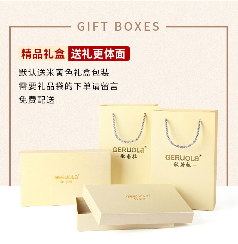 包装:普通包装:单个产品拷贝纸加透明OPP袋。礼品包装:可选择礼盒+手提袋(另加费用)