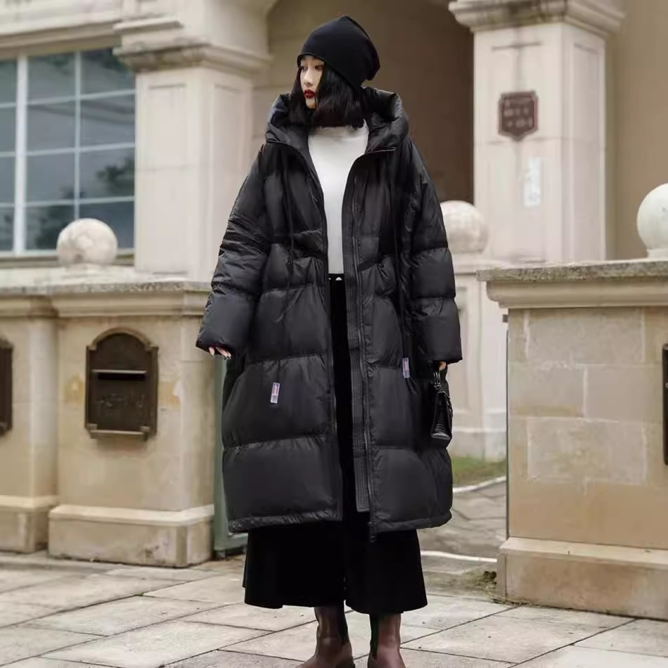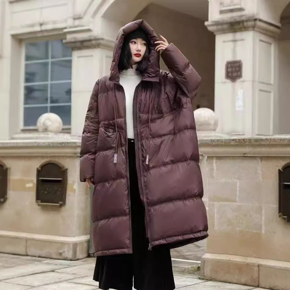 여성을위한 하이 엔드 다운 재킷 2023 새로운 빅 브랜드 패션 웨스턴 스타일 중간 길이 플러스 사이즈 통통녀 화이트 오리 다운 코트