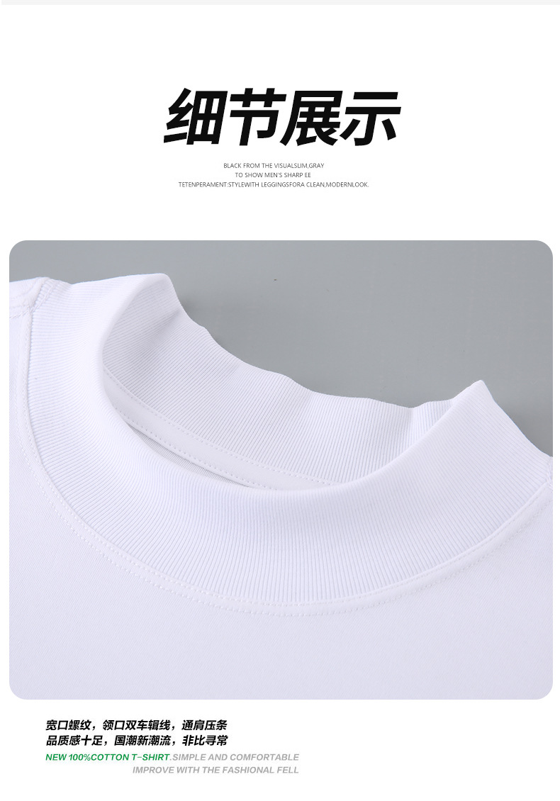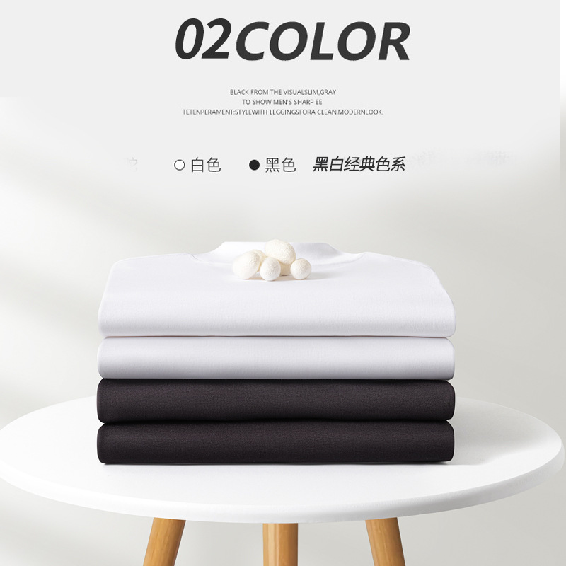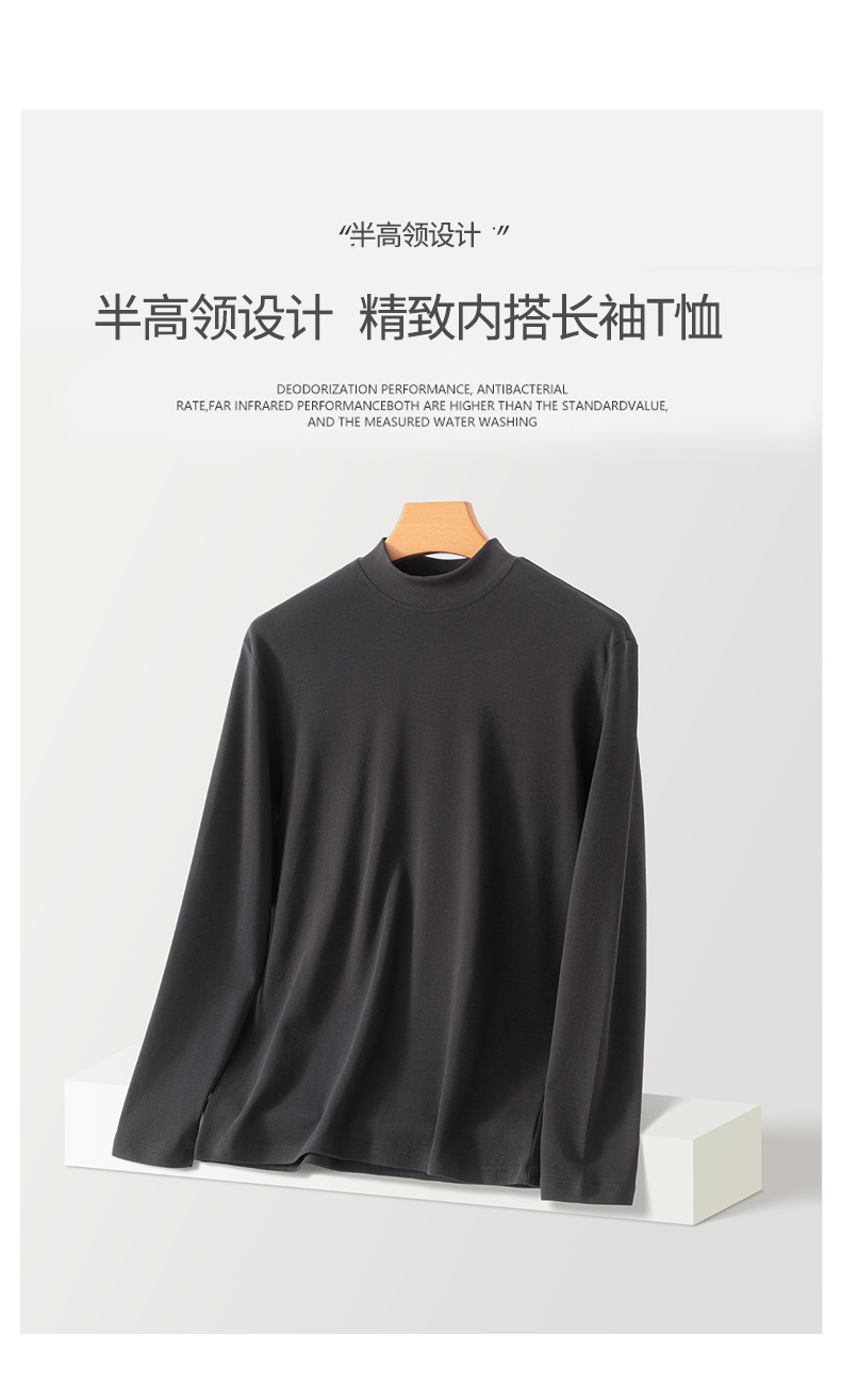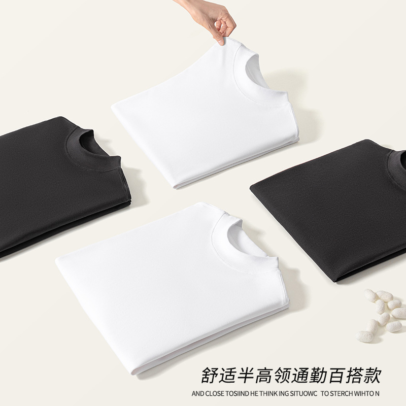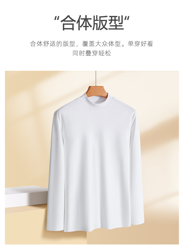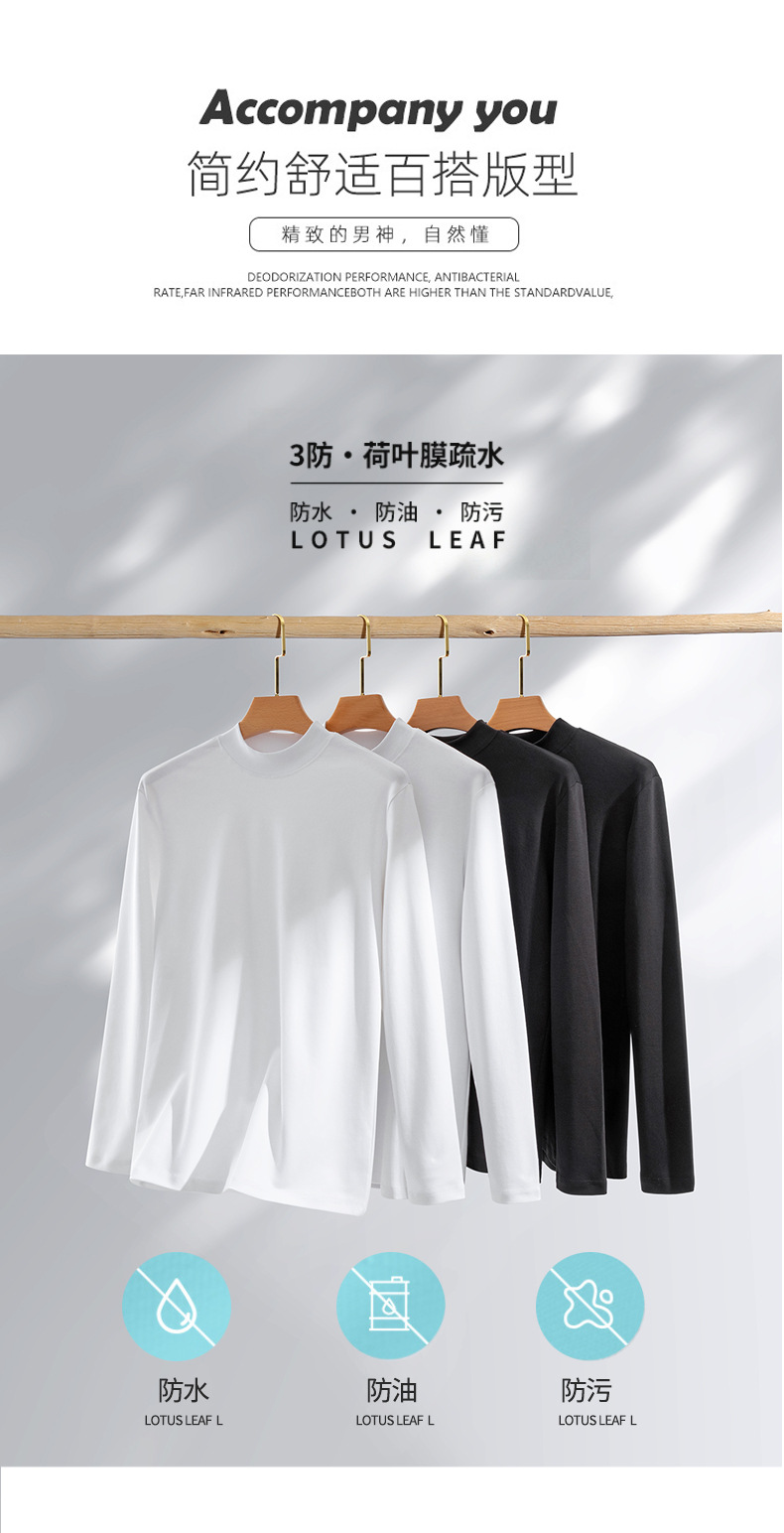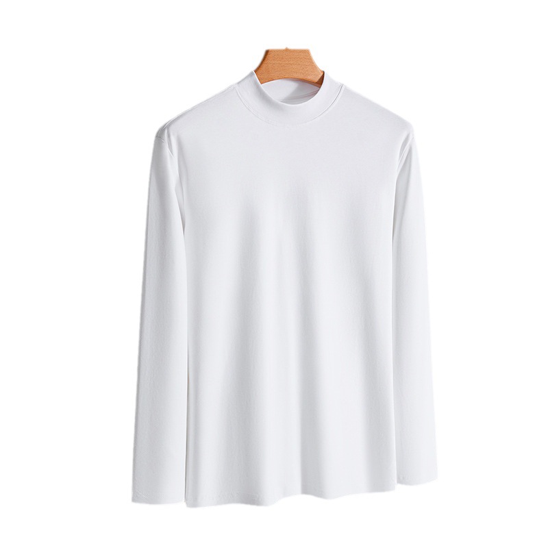 가을 신상 하프넥 삼중 방수 긴팔 티셔츠 남성용 루즈핏 캐주얼 화이트 베이스 셔츠 순면 이너웨어 티셔츠
