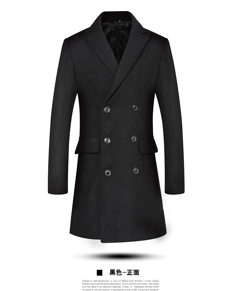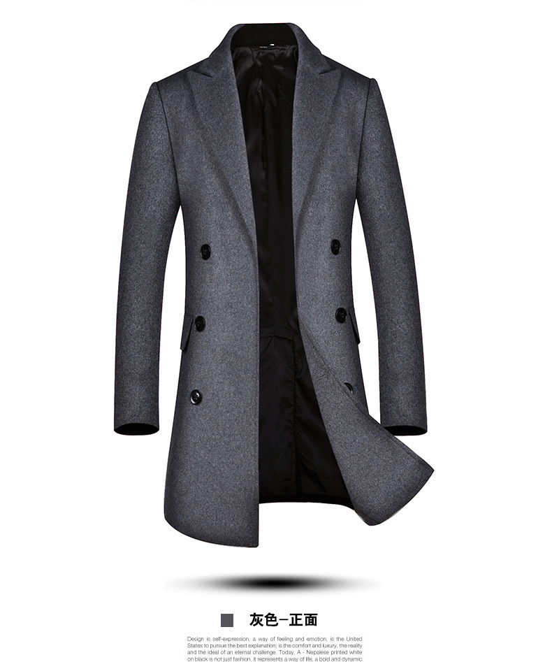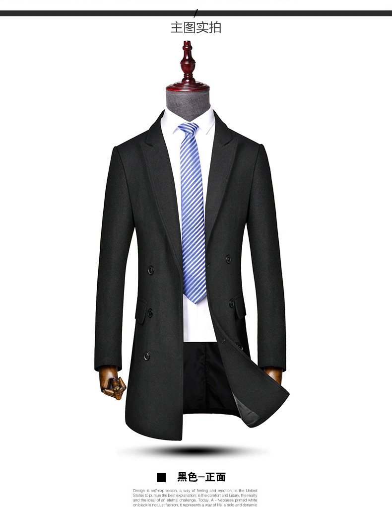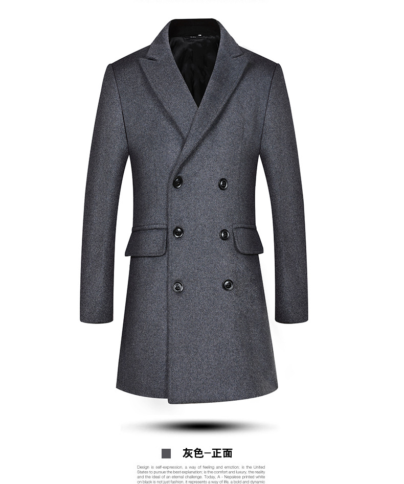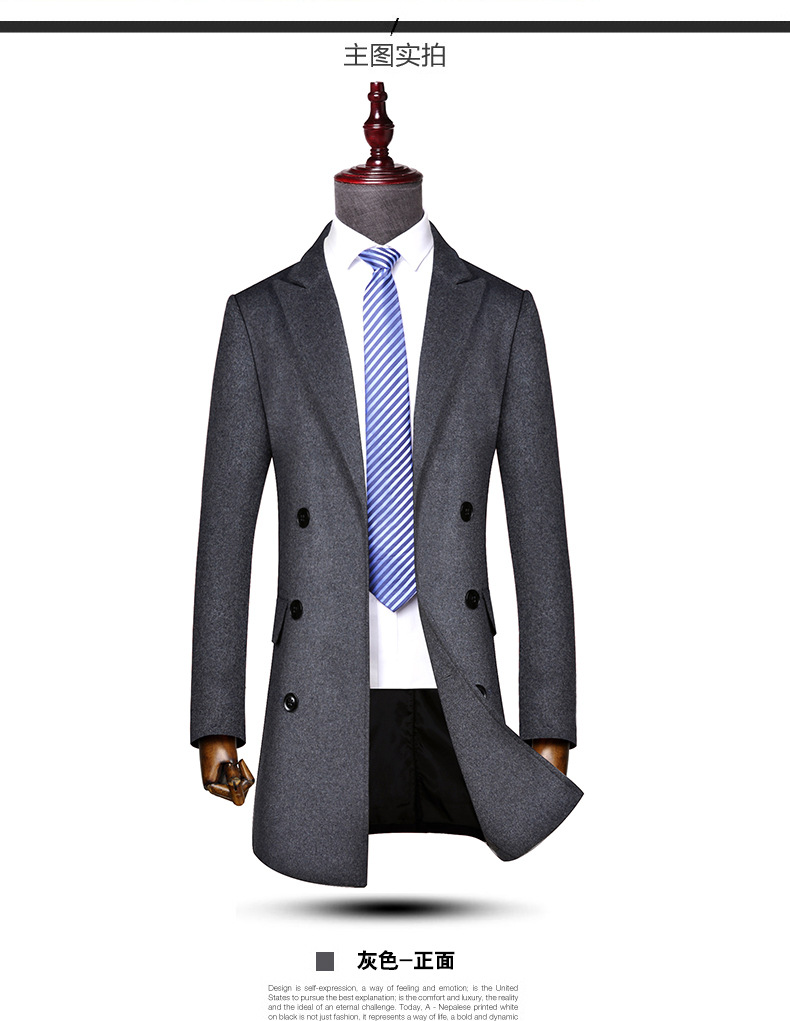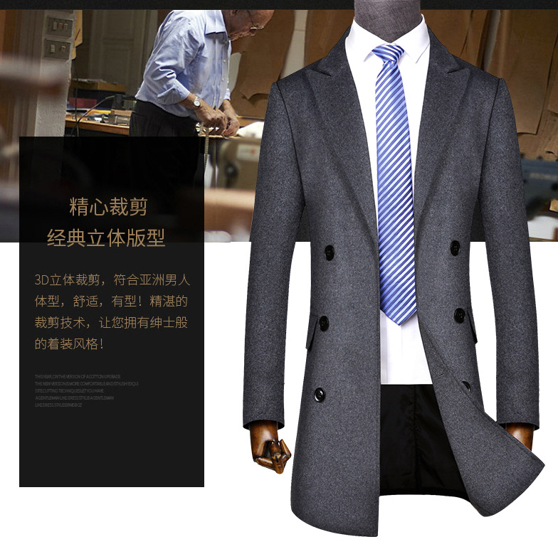 가을과 겨울 새로운 남성 모직 코트 트렌치코트 남성용 중간 길이 더블 브레스트 한국 스타일 슬림핏 모직 코트 코트
