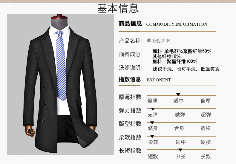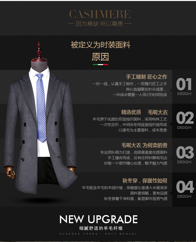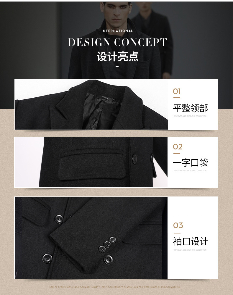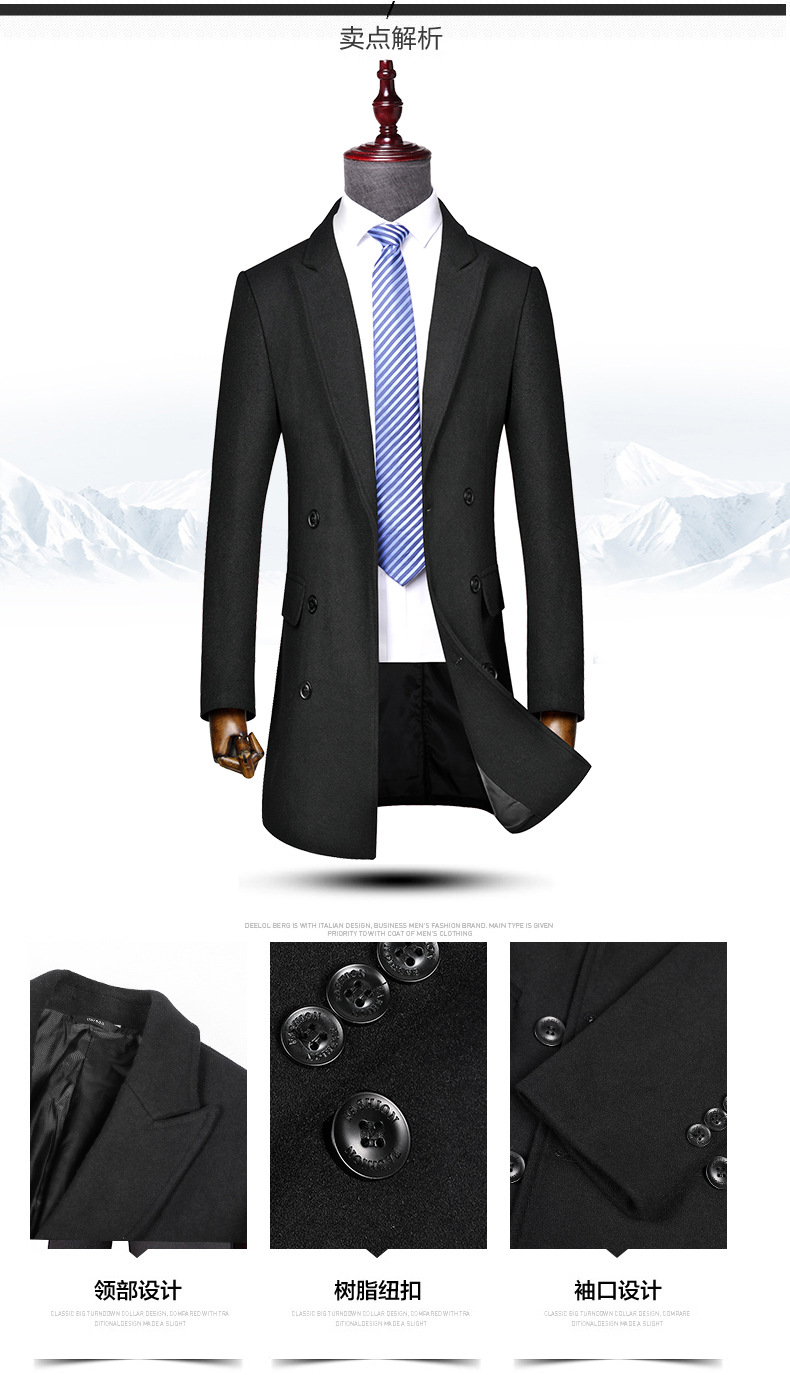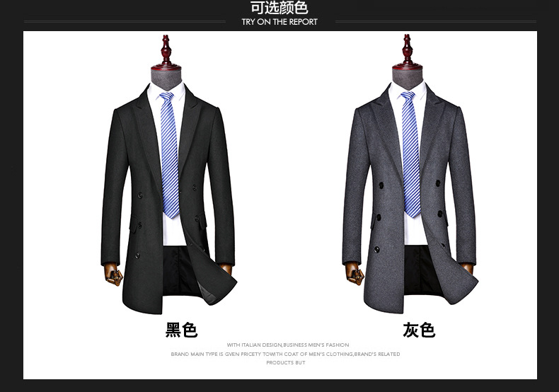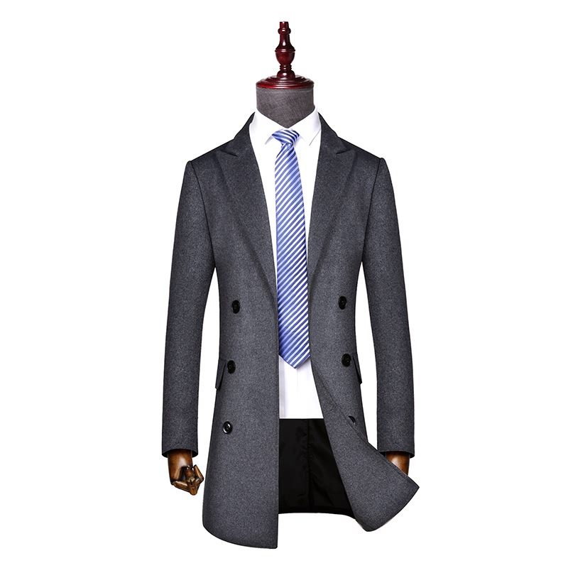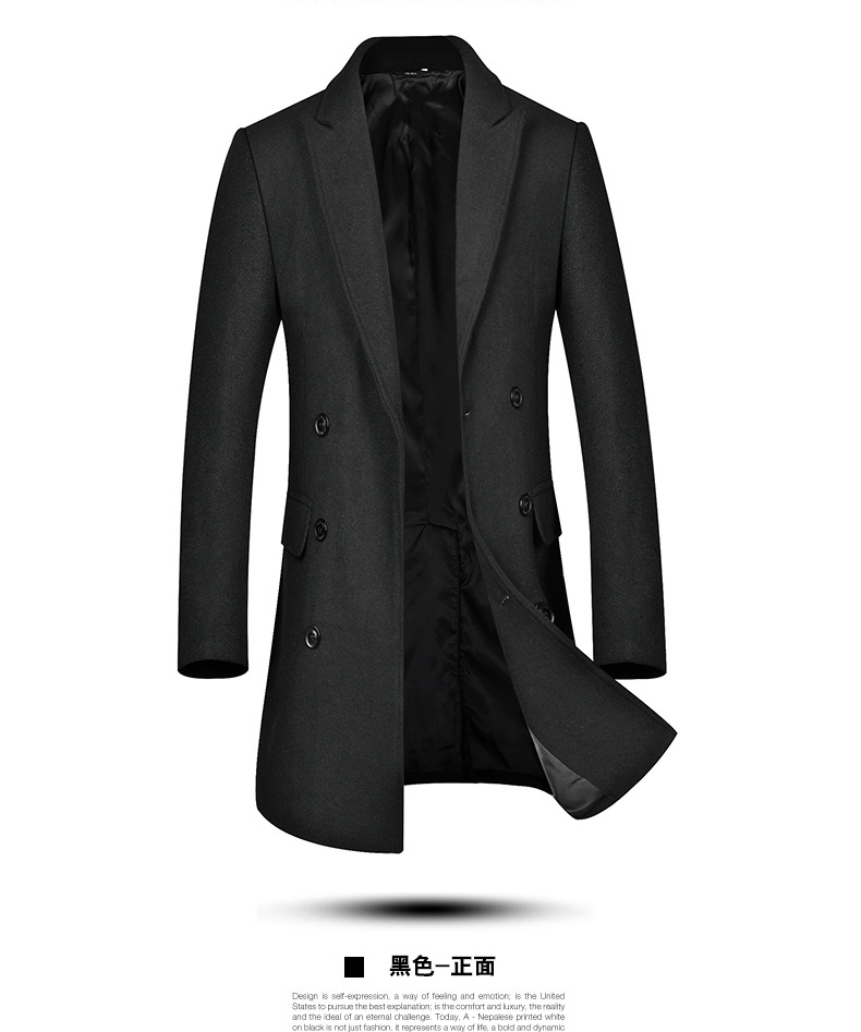 가을과 겨울 새로운 남성 모직 코트 트렌치코트 남성용 중간 길이 더블 브레스트 한국 스타일 슬림핏 모직 코트 코트