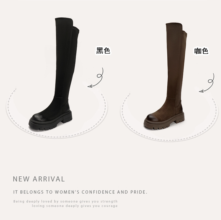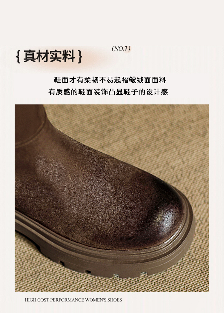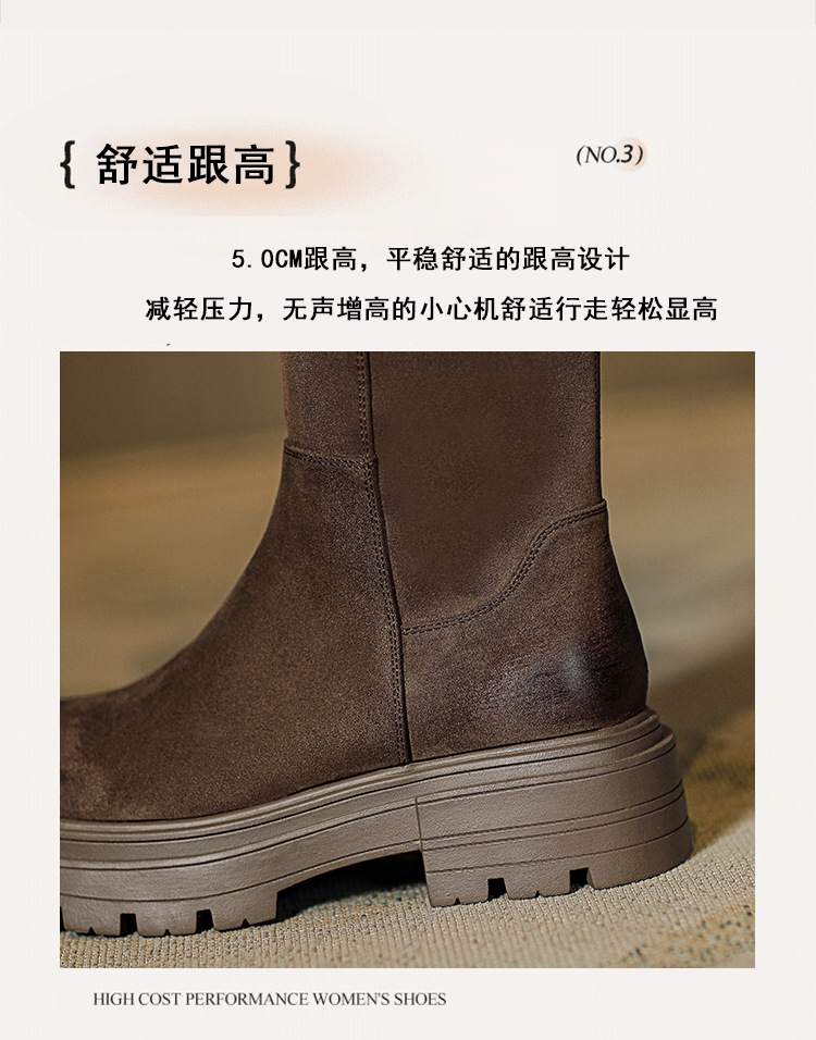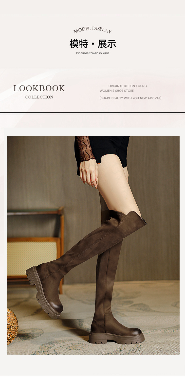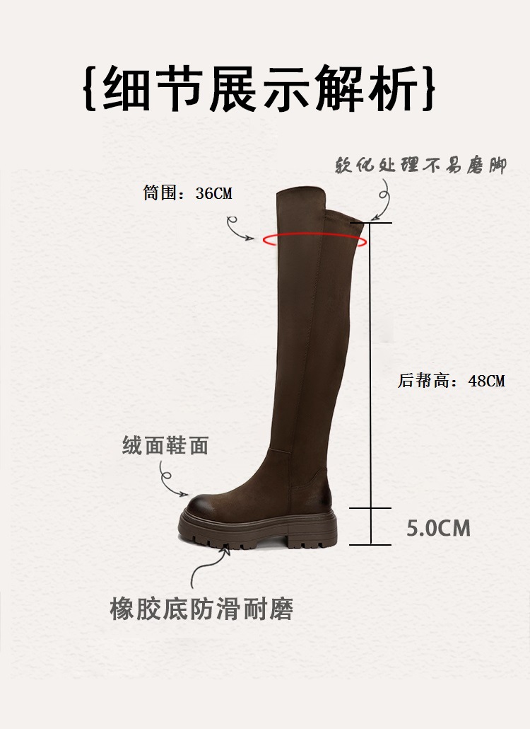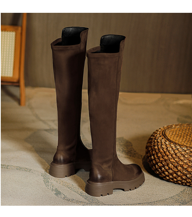 블랙 무릎 높이 부츠 여성용 2023 겨울 새 스웨이드 라운드 헤드 두꺼운 바닥 두꺼운 뒤꿈치 슈퍼 얇은 탄성 부츠 도매