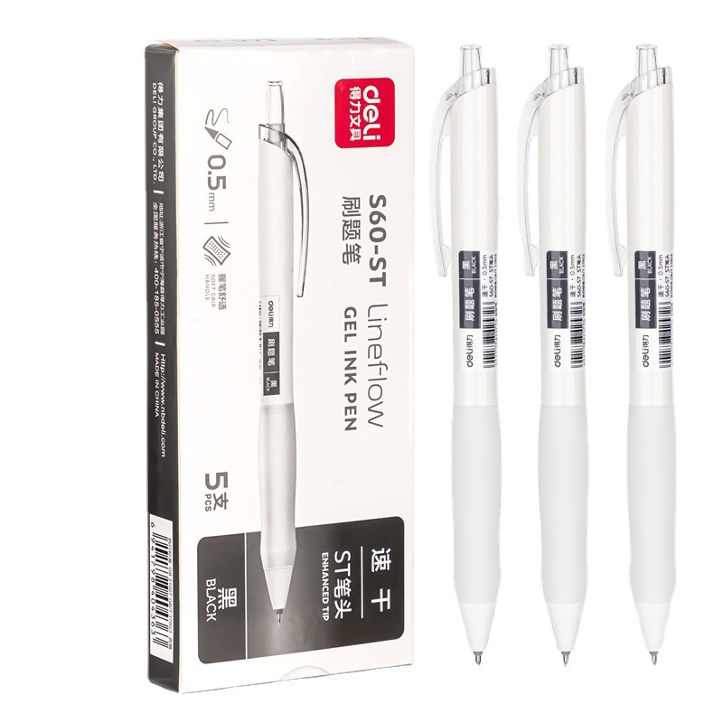 델리 S60-ST 푸쉬형 젤펜, 고급스럽고 심플한 디자인, 학생용 속건성 필기구, 사무용 검정색 펜, 문구류